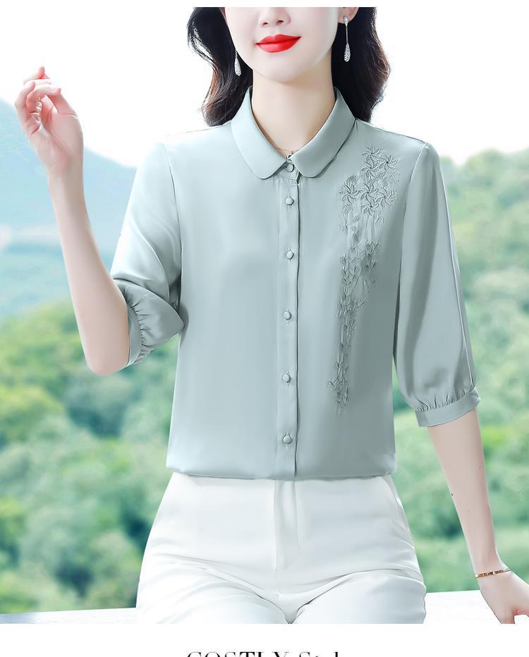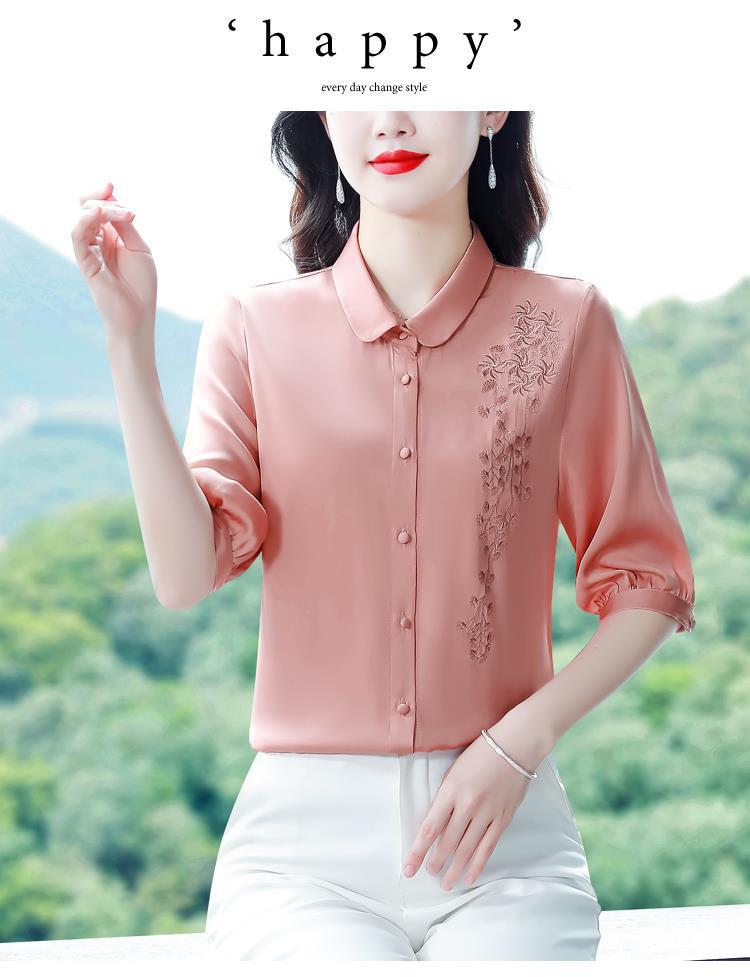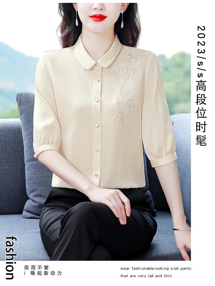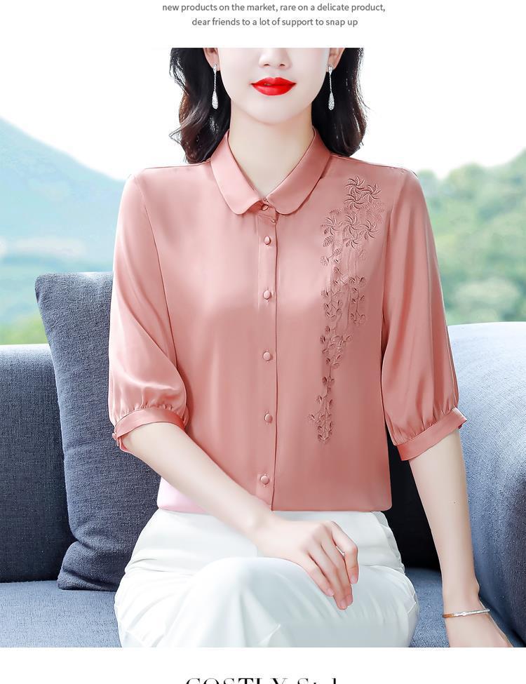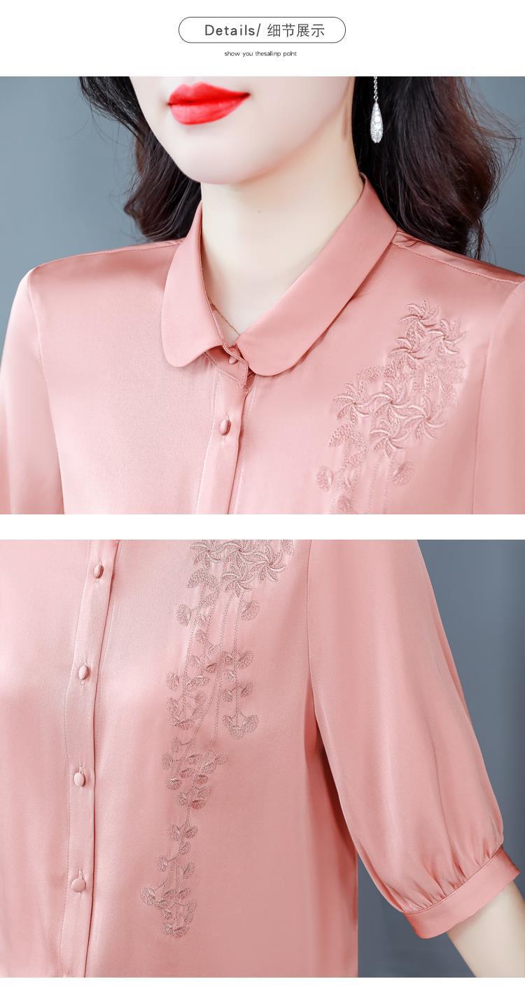 KQL644G2388贵夫人上衣女士2025夏装仿真丝衬衫妈妈洋气宽松显瘦桑蚕丝衬衣