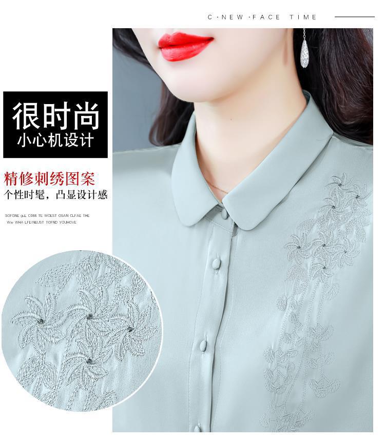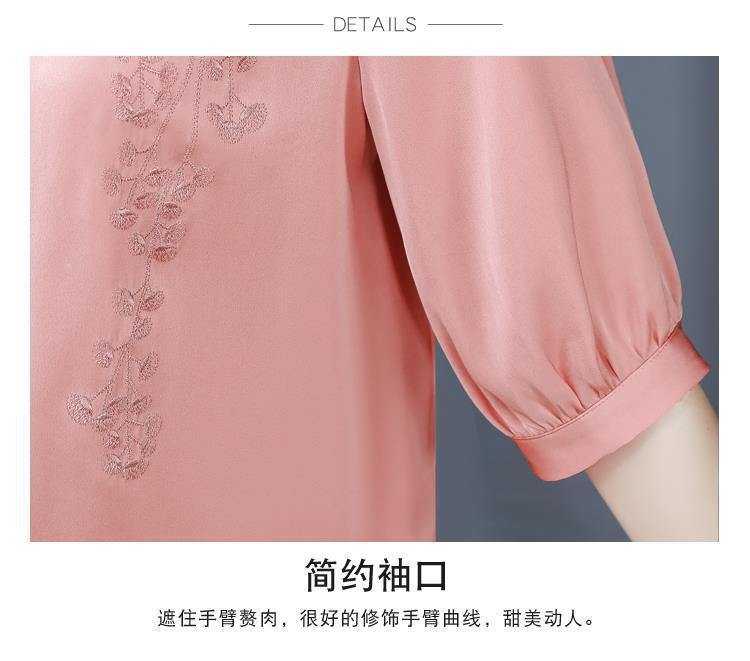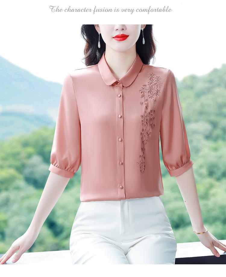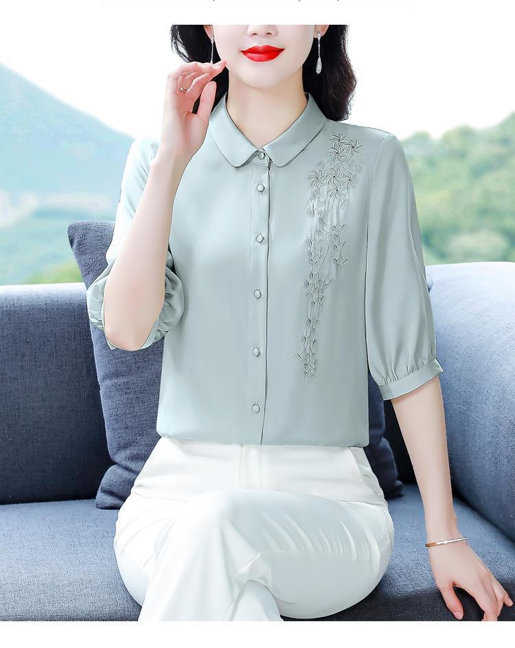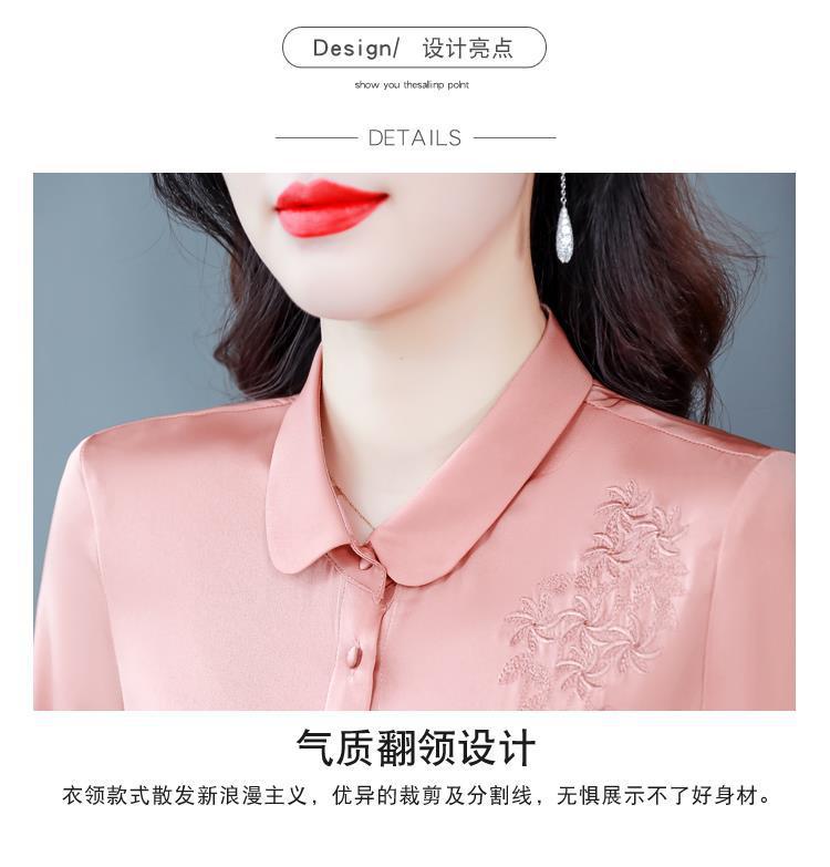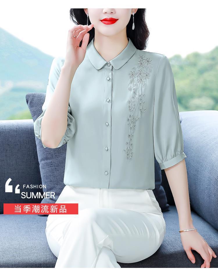 KQL644G2388贵夫人上衣女士2025夏装仿真丝衬衫妈妈洋气宽松显瘦桑蚕丝衬衣