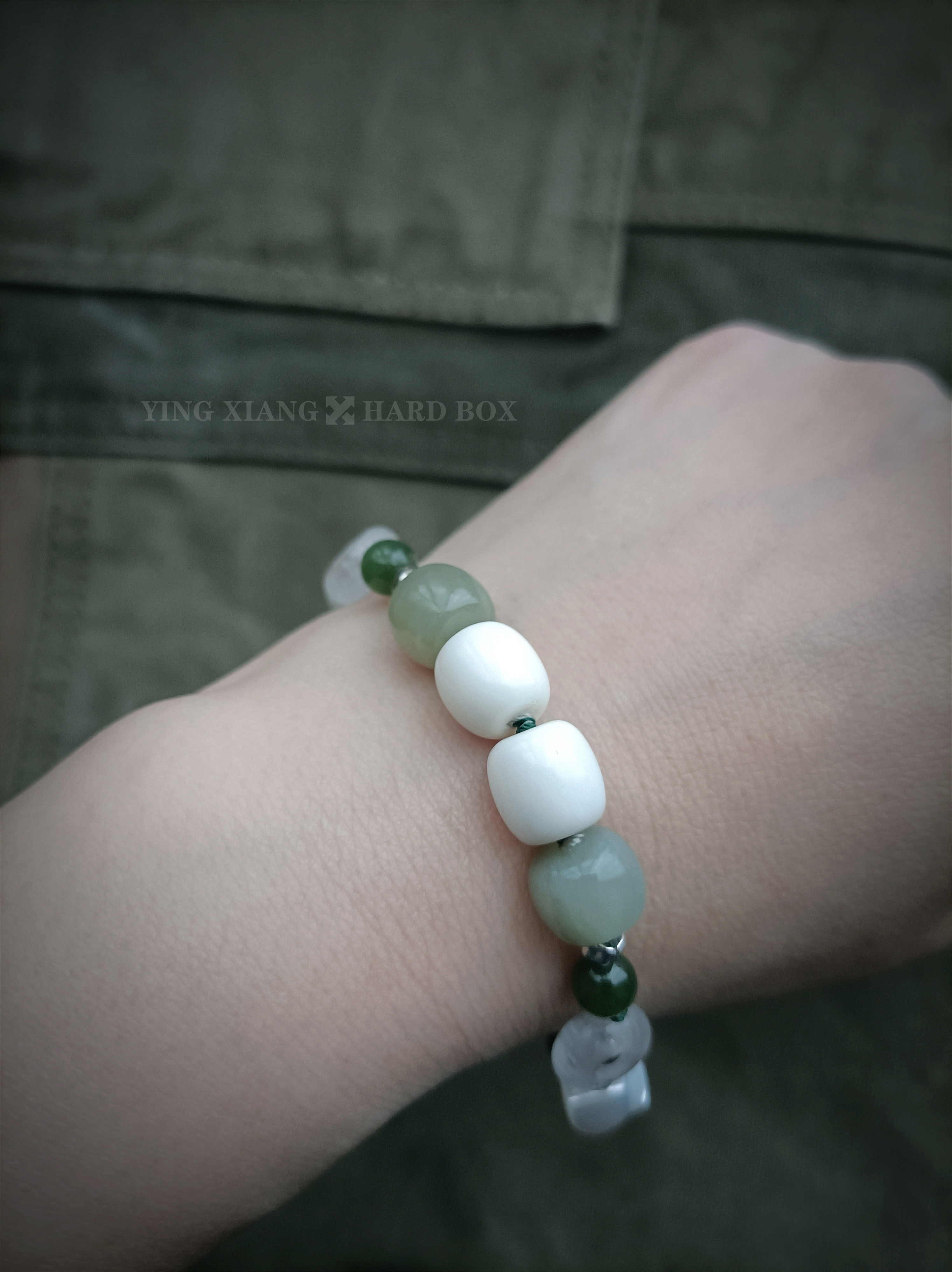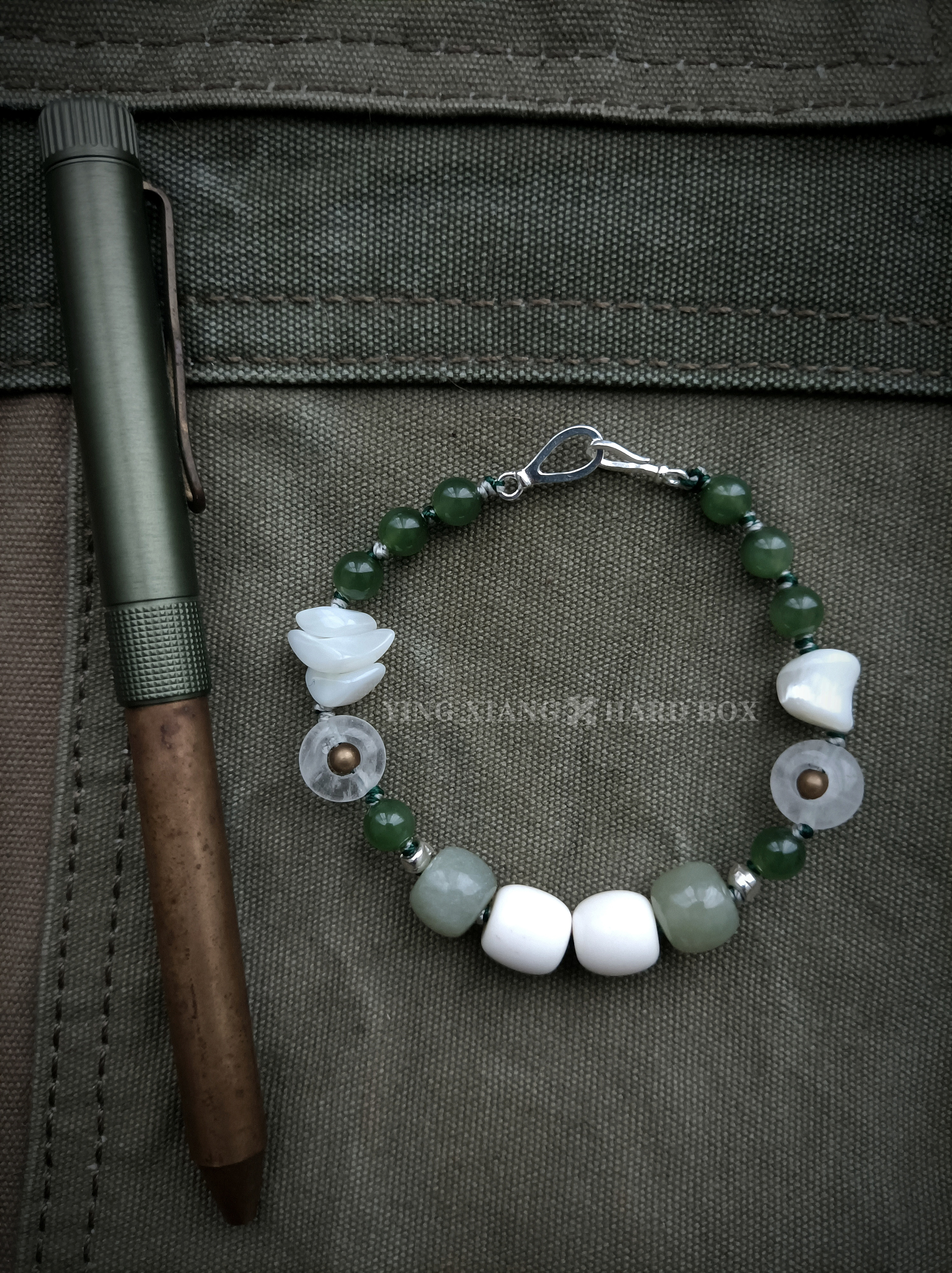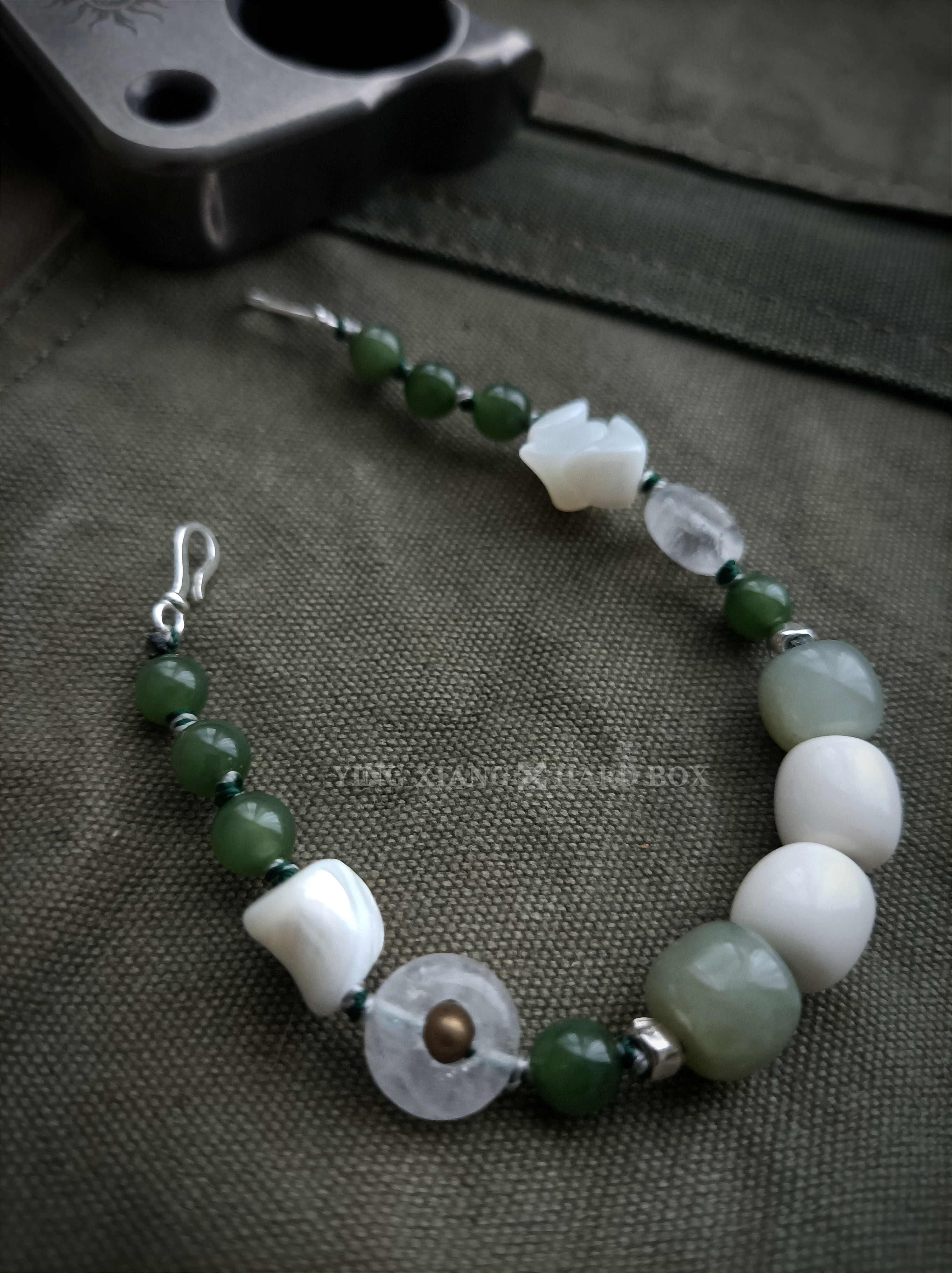 俄罗斯碧玉珠 鹿角珠 马蹄螺天然深海贝壳随型 西亚老水晶 老铜珠 925银连接扣