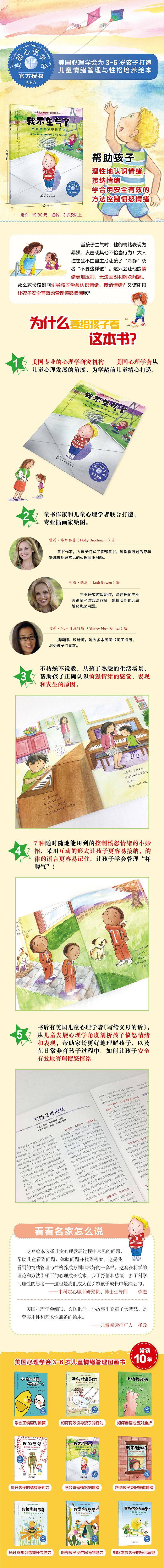 1.专业性——美国心理学会儿童心理学家精心策划,专业插画家绘图,心理学背景和翻译水平兼备的妈妈们担任翻译。书后附有“写给父母和老师的话”,从儿童发展心理学的角度剖析孩子的种种表现,帮助家长理解孩子,指导孩子克服种种情绪障碍,陪伴孩子健康快乐成长。