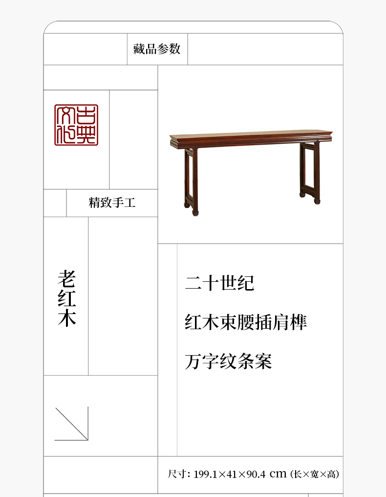 二十世纪 红木束腰插肩榫万字纹条案