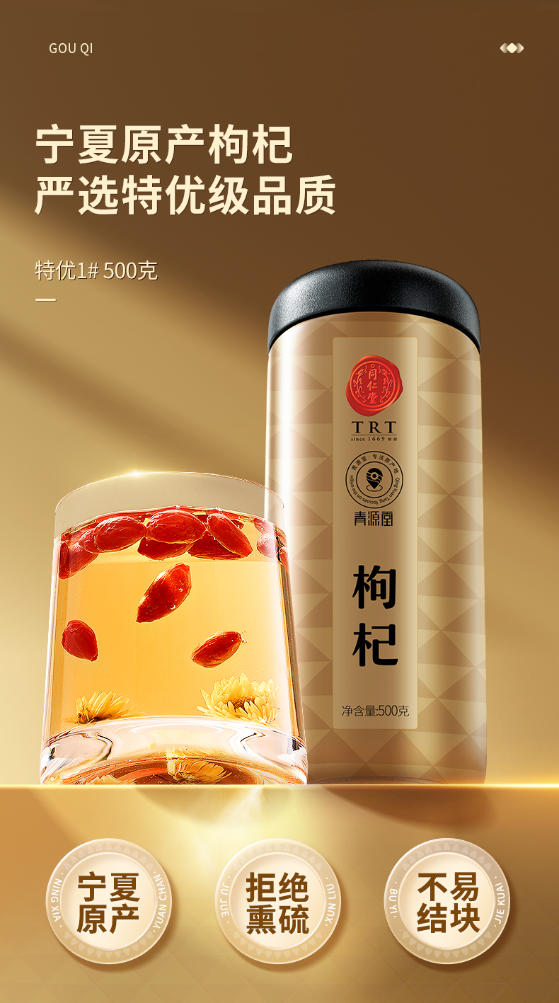 【正宗同仁堂品牌】北京同仁堂 青源堂 红枸杞 贡果 500克 宁夏原产地 饱满大果 优中择优 SY