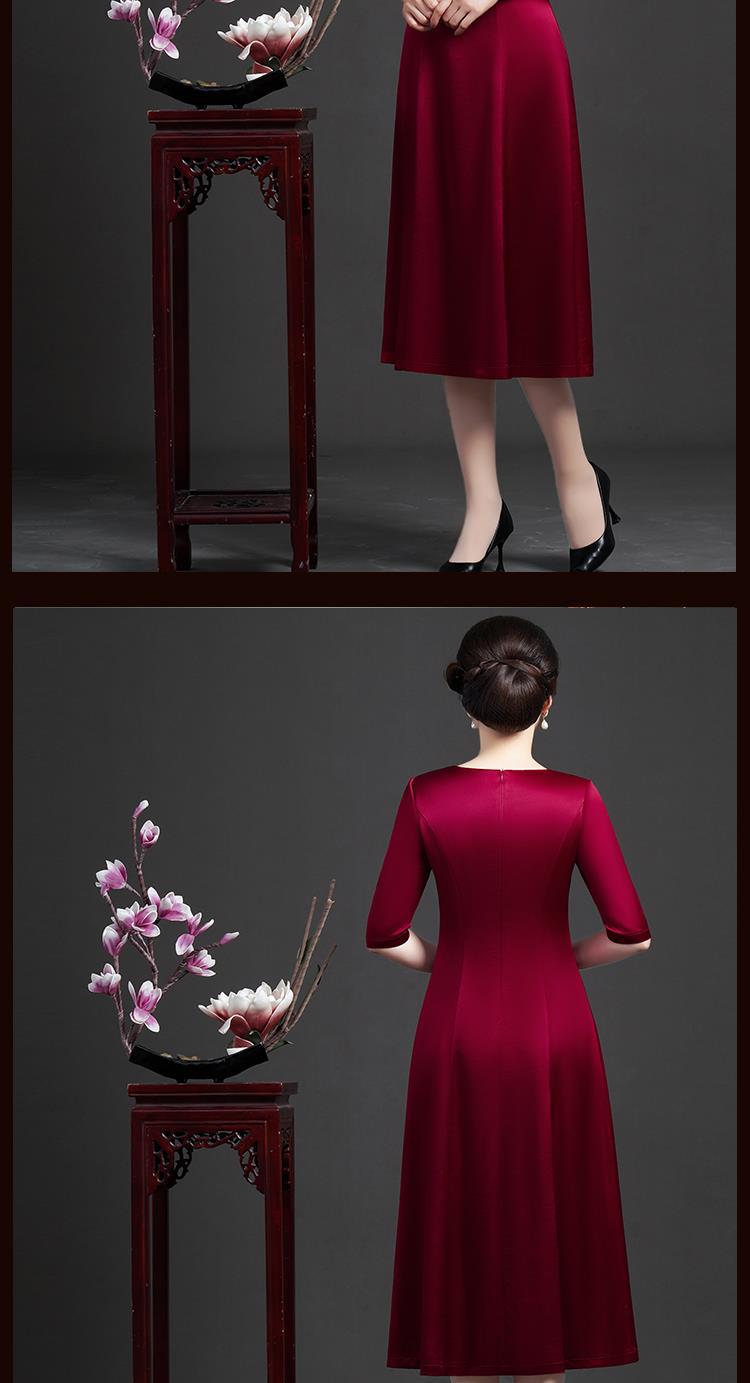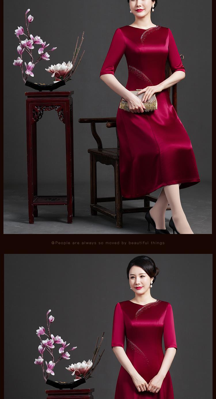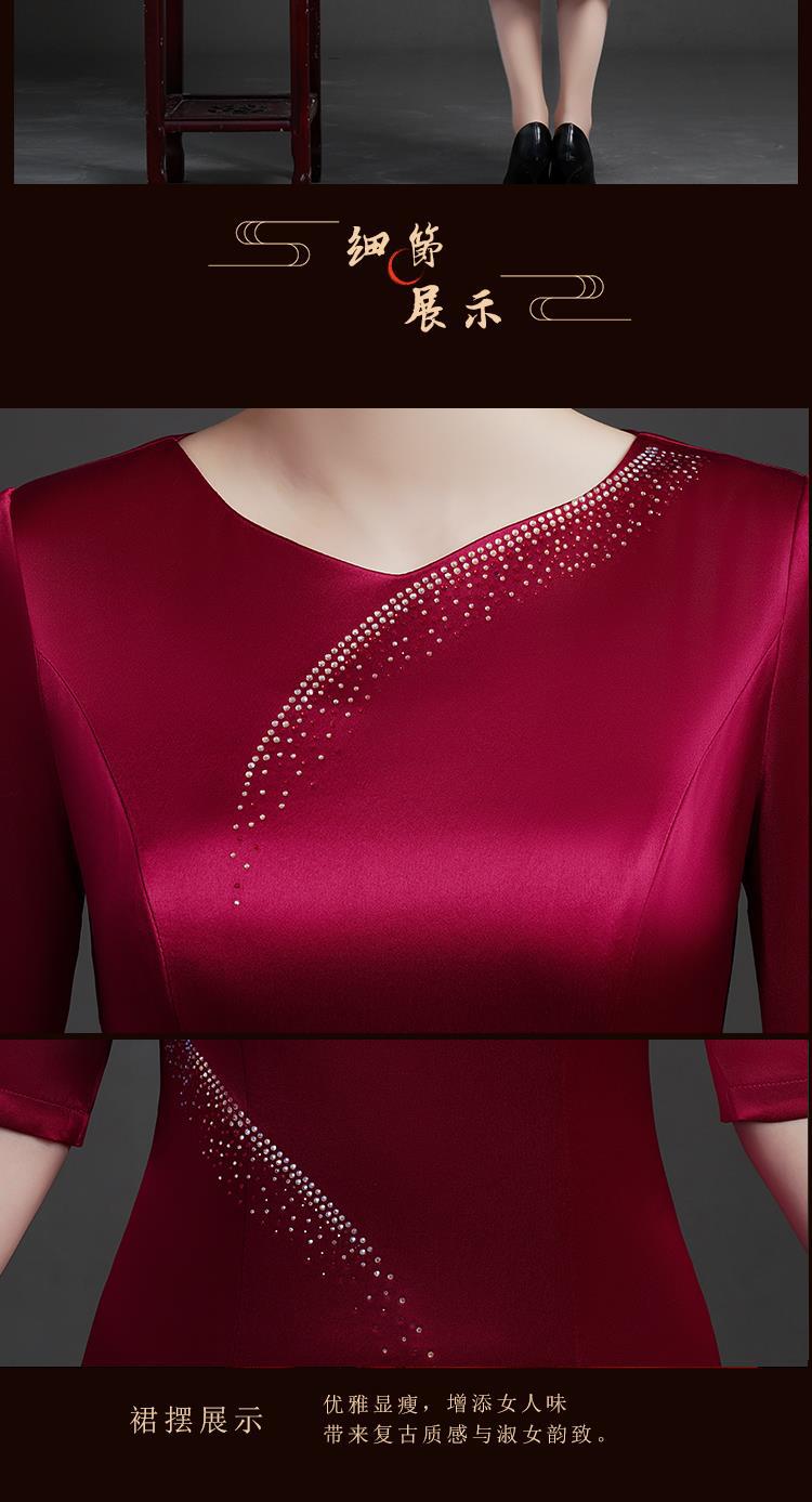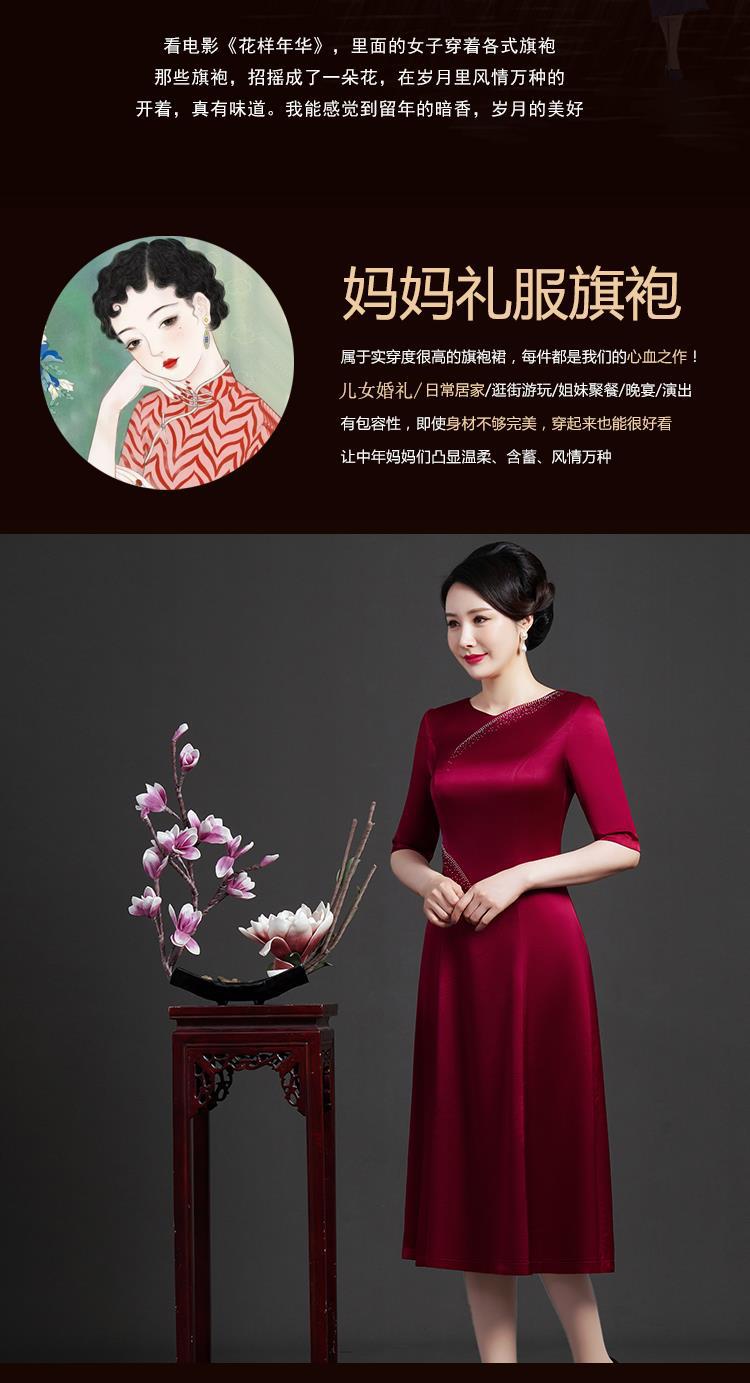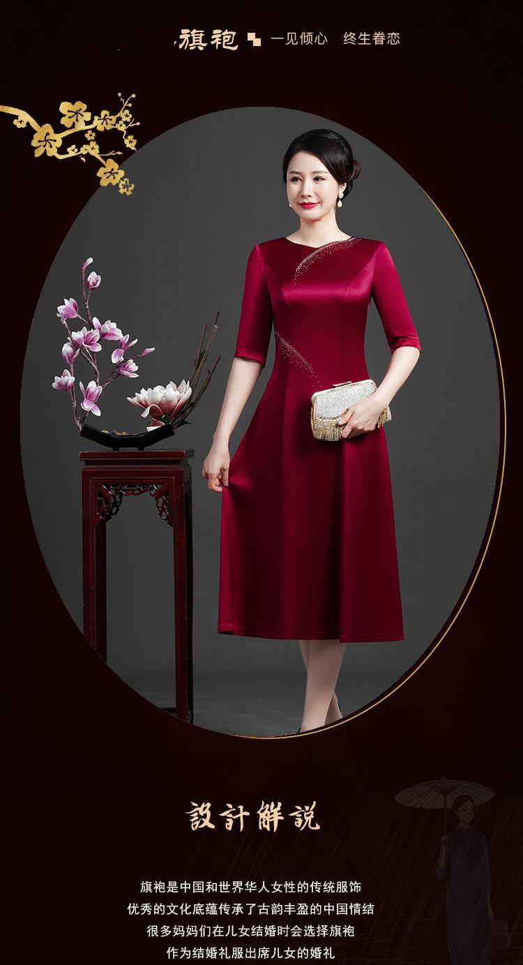酒红色妈妈装旗袍裙婚宴婚礼大码改良镶钻旗袍礼服TY-22125