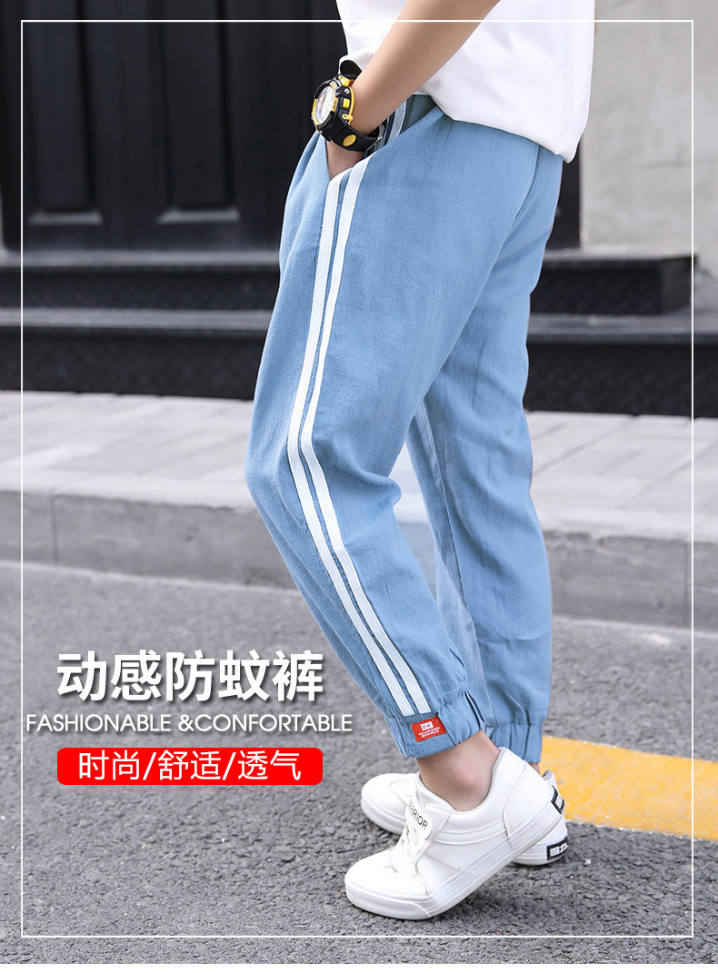 BX-男童织带防蚊裤棉麻中大童夏季长裤休闲薄款防蚊裤TZW