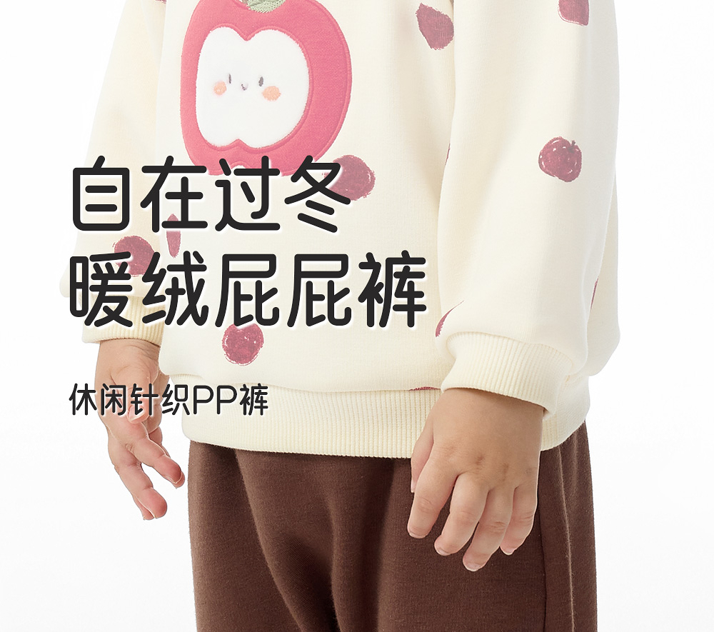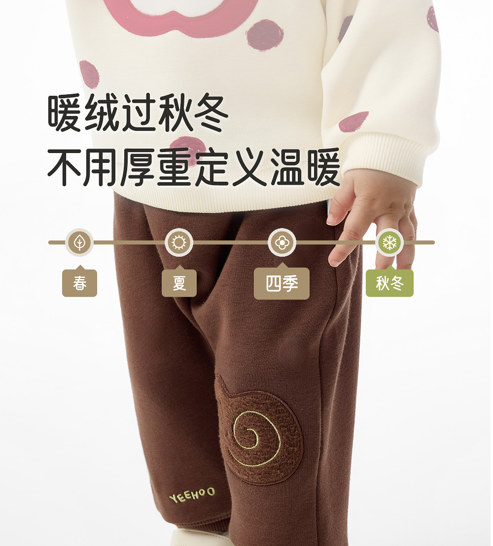 英氏儿童裤子秋冬保暖男宝屁屁裤小童外出防寒束脚裤加绒秋冬裤子