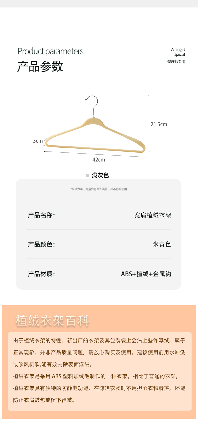 留存道植绒宽肩衣架环保干湿两用防滑轻奢挂大衣毛衣西服