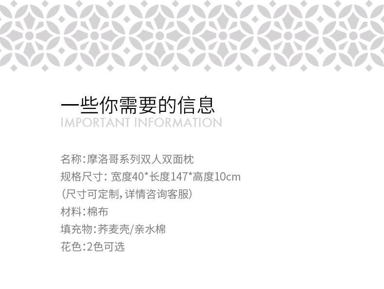 摩洛哥系列双人长枕头荞麦壳夫妻枕
