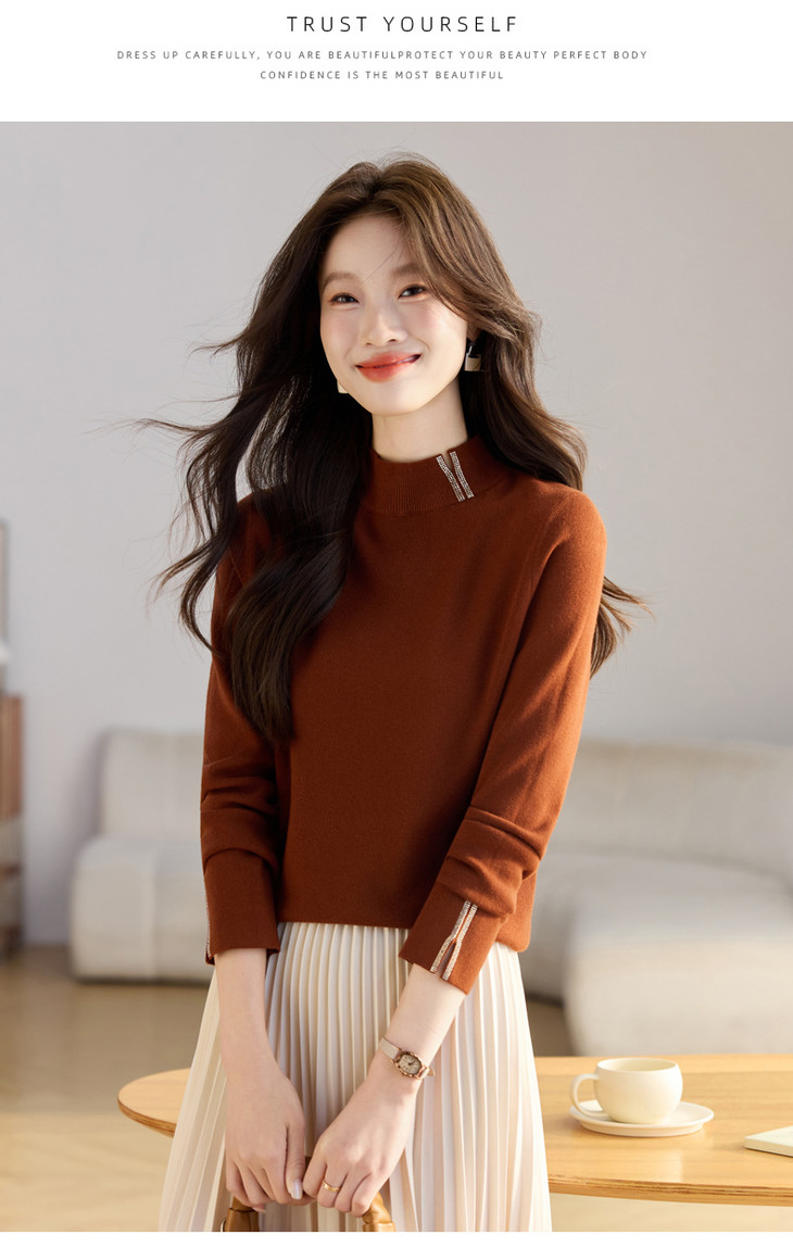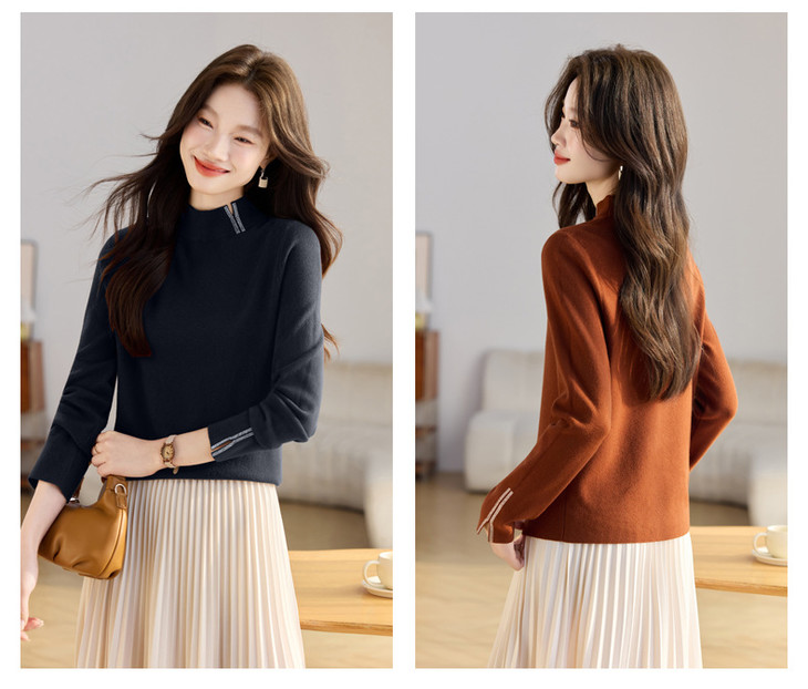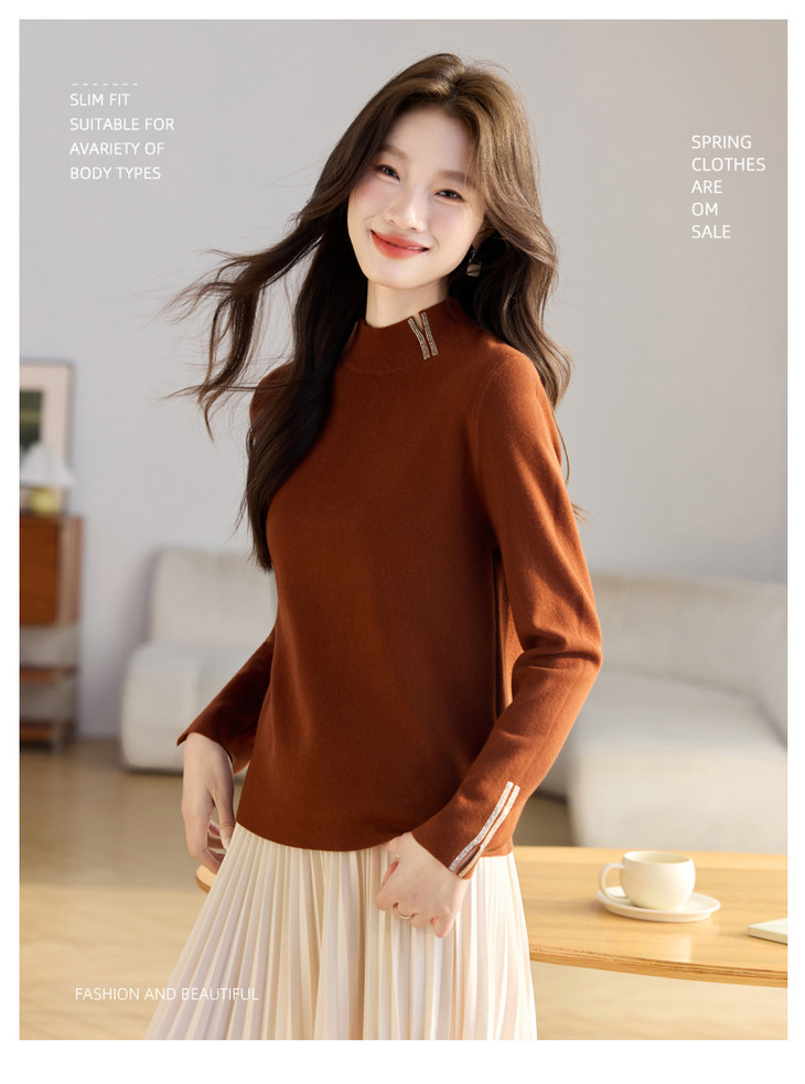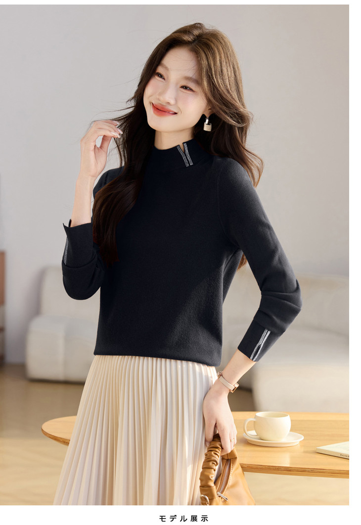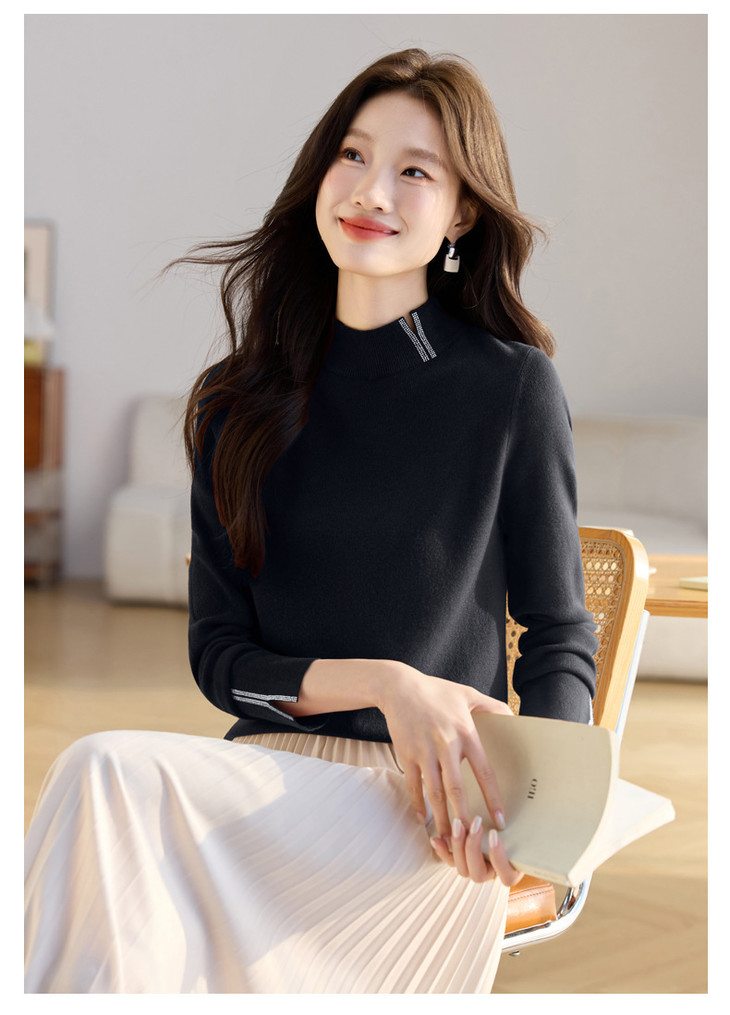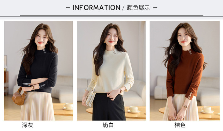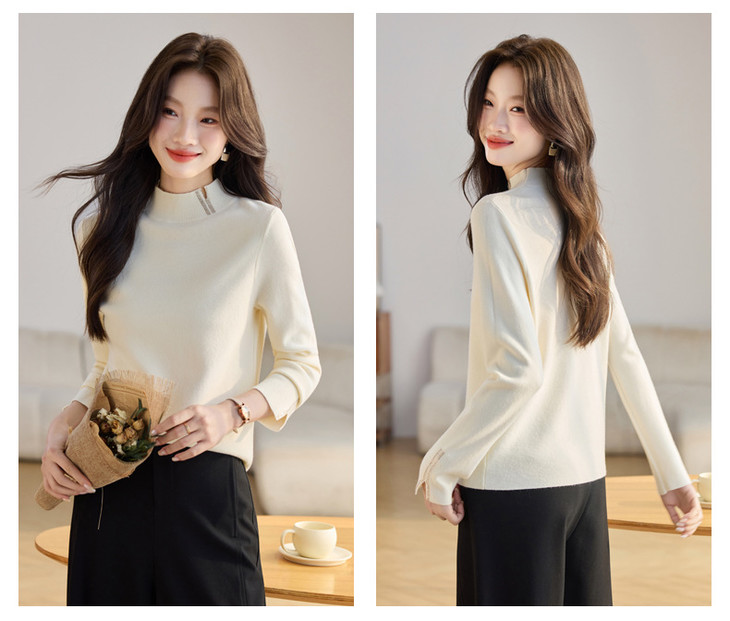 法式半高领针织衫,高级感毛衣内搭修身打底衫慵懒风上衣CC-QL-8370