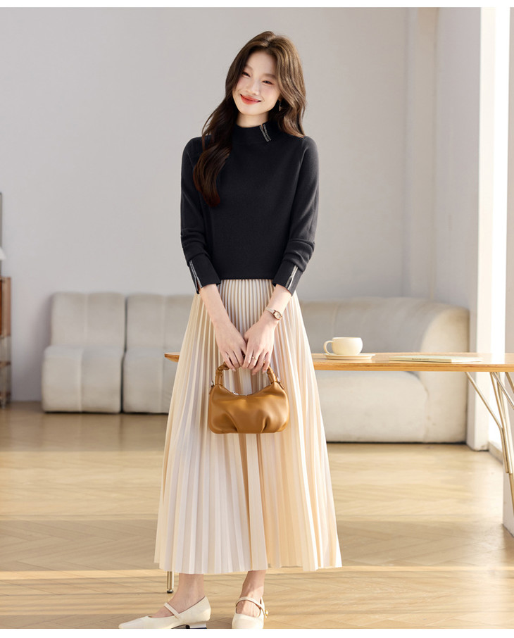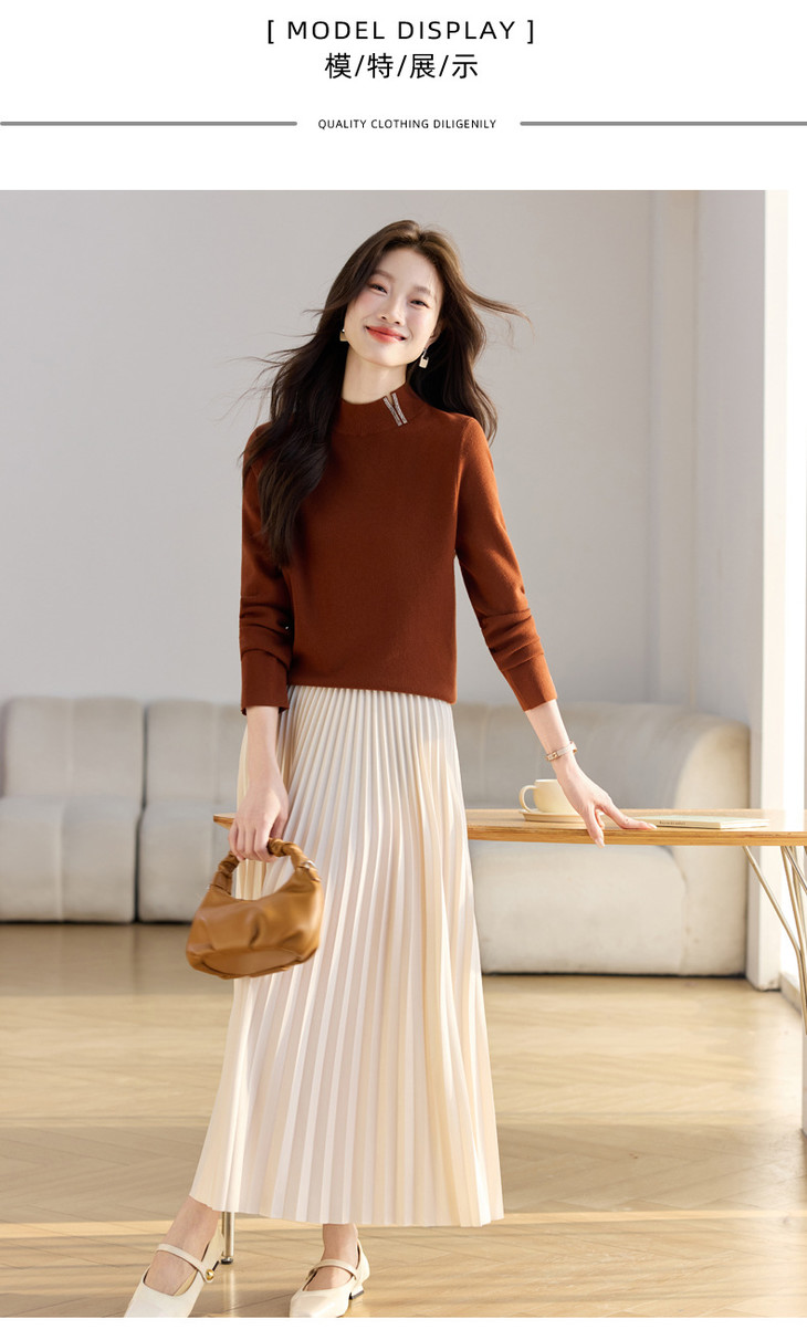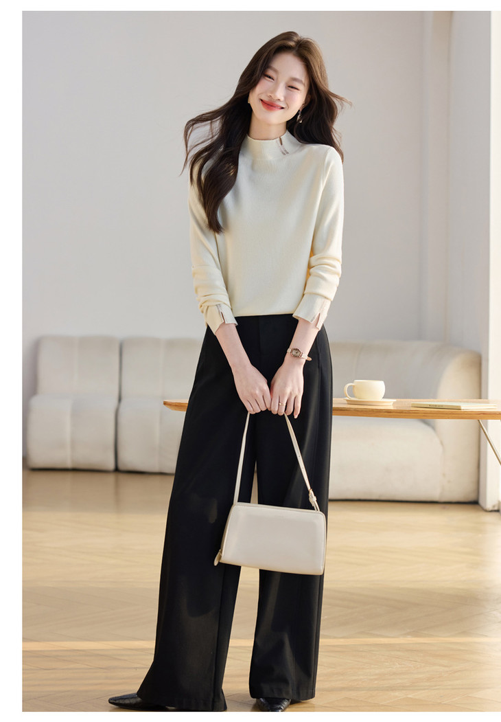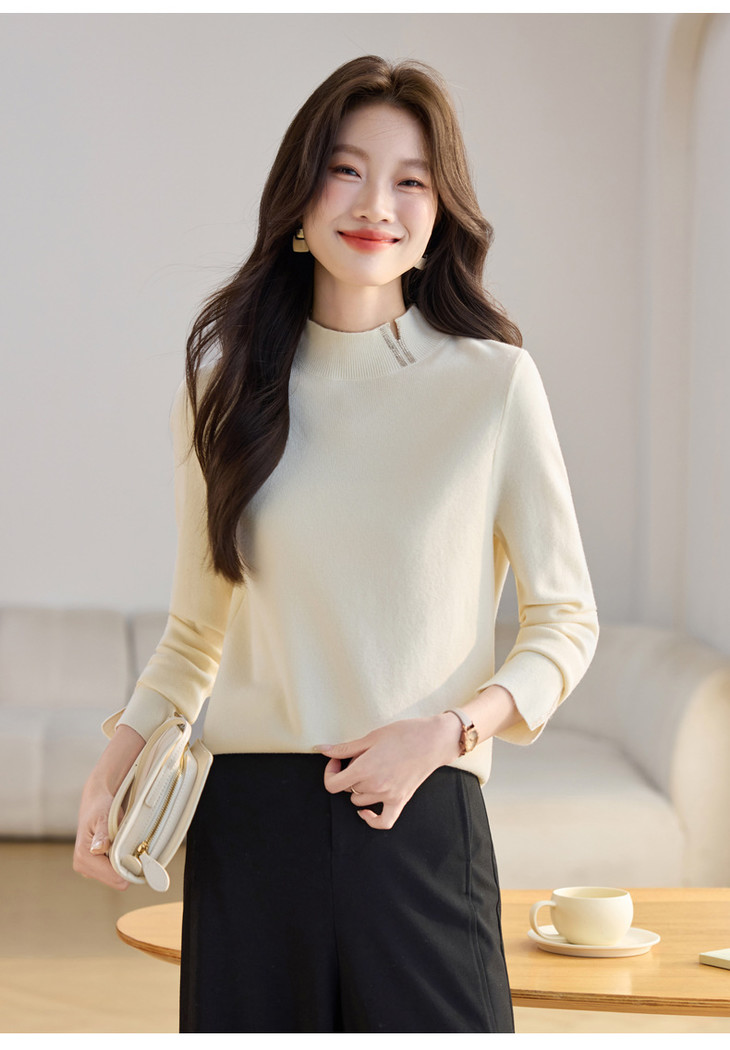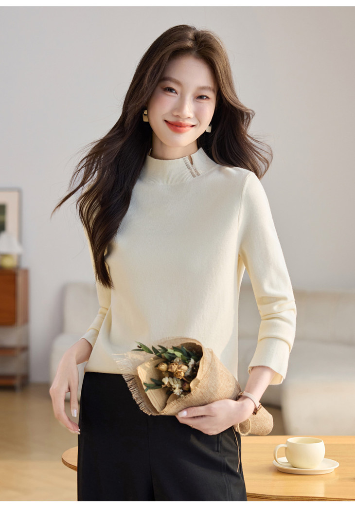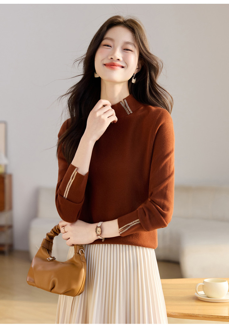 法式半高领针织衫,高级感毛衣内搭修身打底衫慵懒风上衣CC-QL-8370