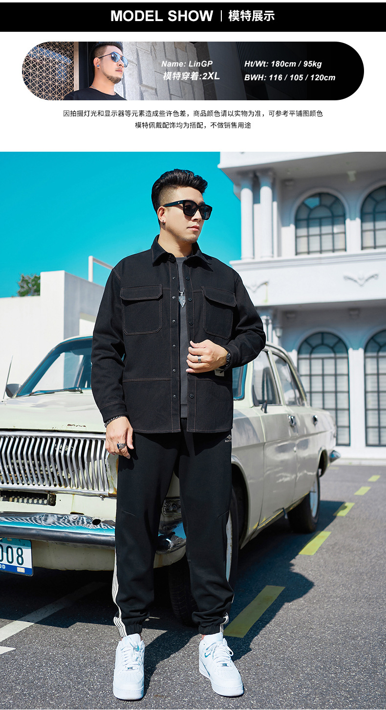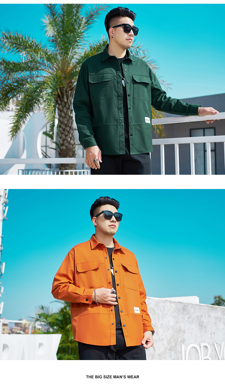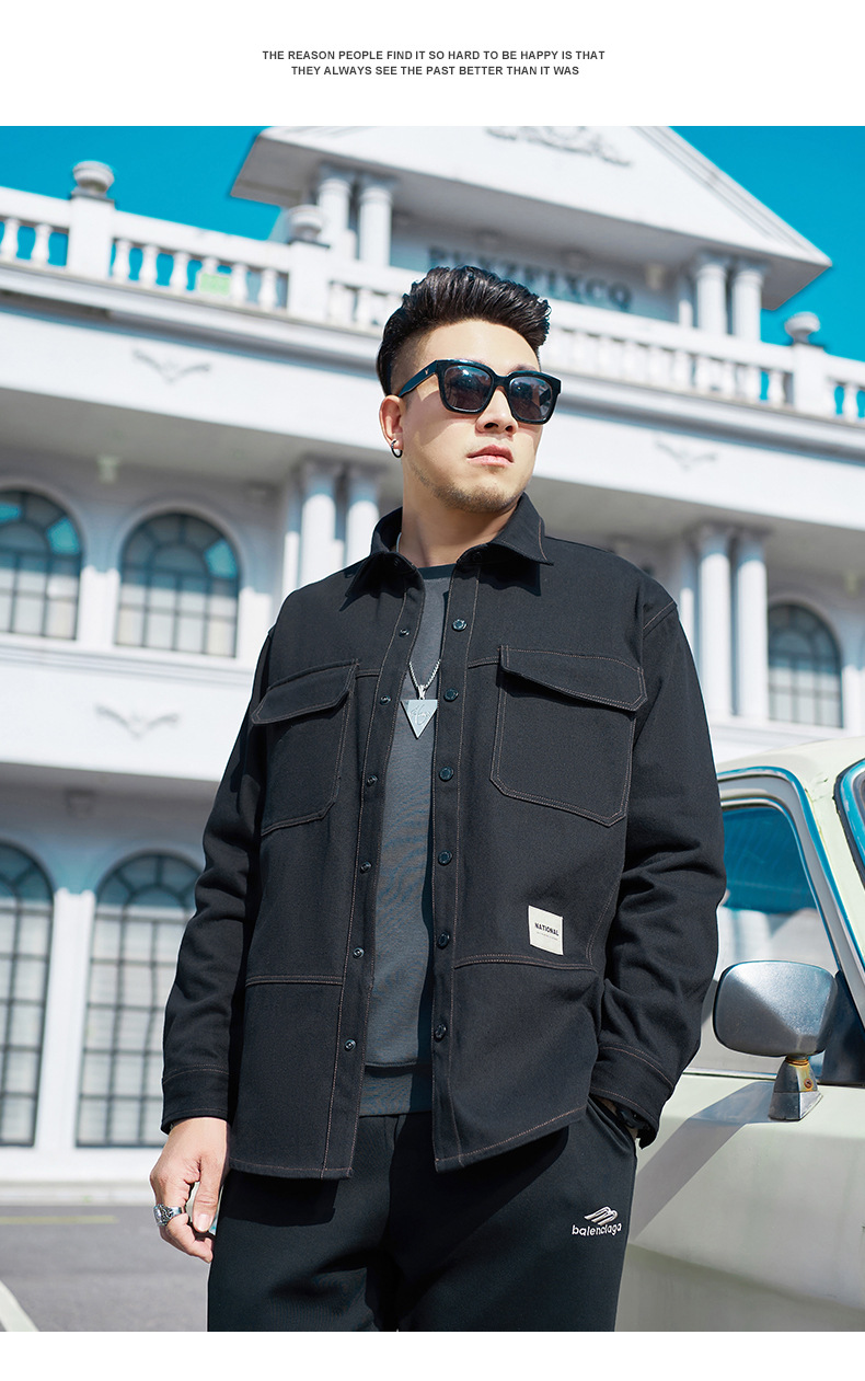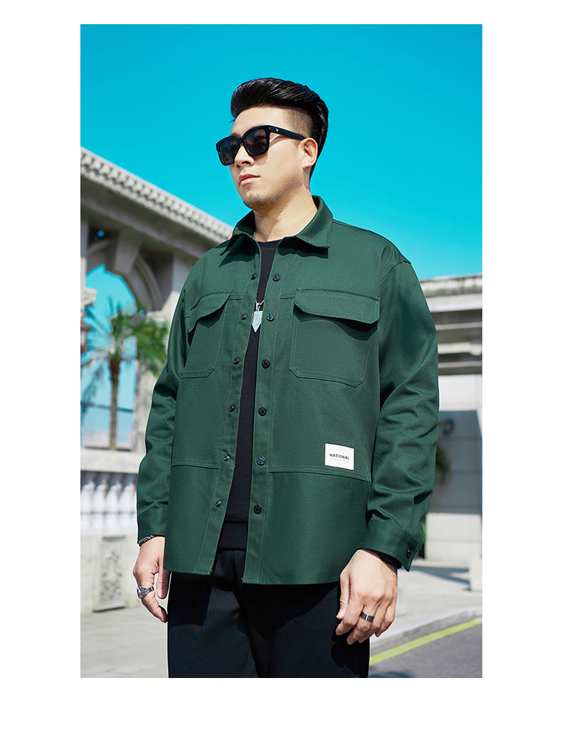 【新款DMH】大依优型潮牌大码男装胖子春装新款翻领纽扣工装飞行夹克宽松外套男
