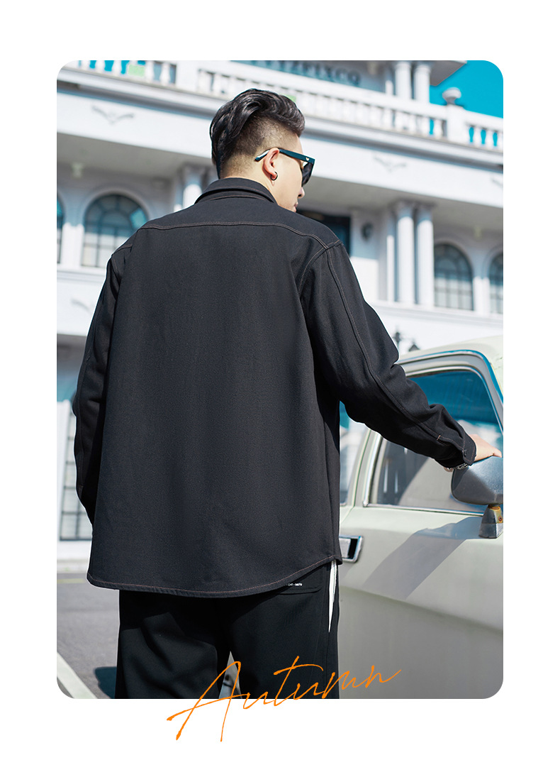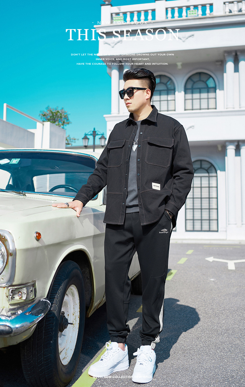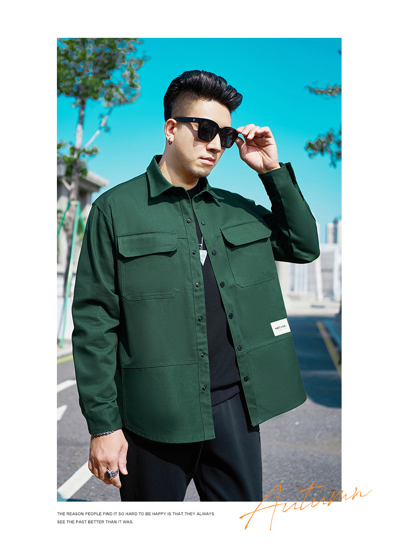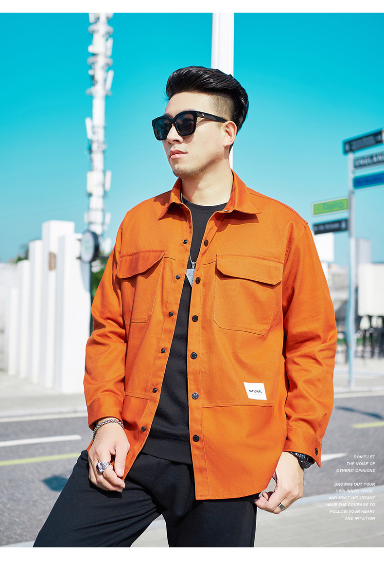 【新款DMH】大依优型潮牌大码男装胖子春装新款翻领纽扣工装飞行夹克宽松外套男