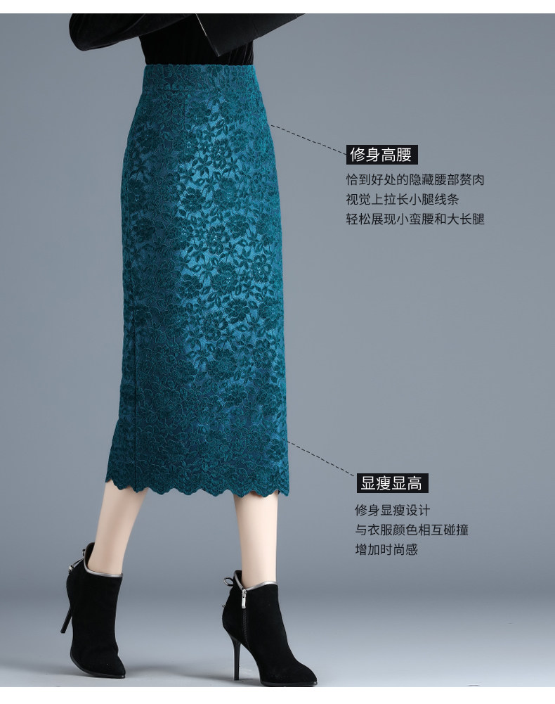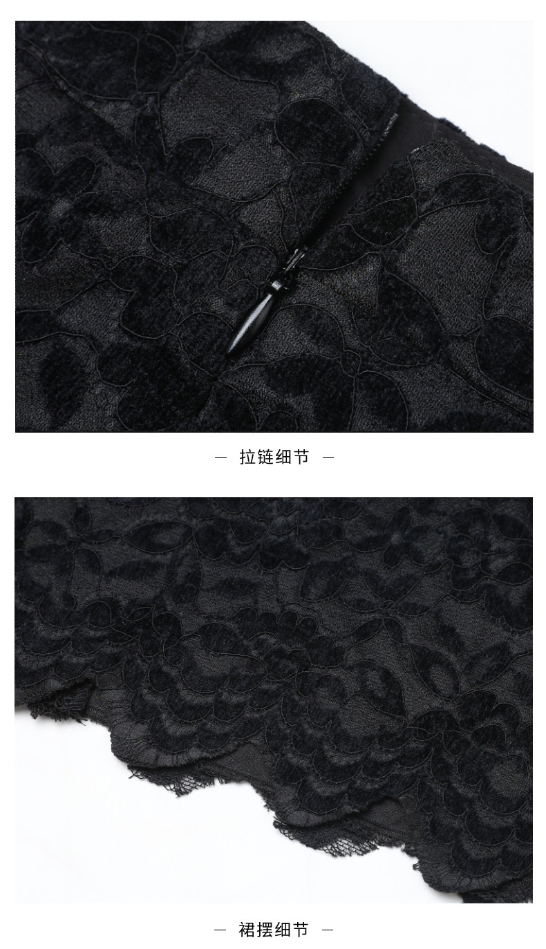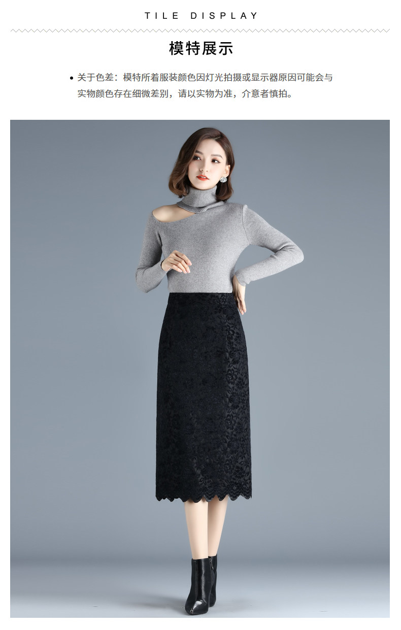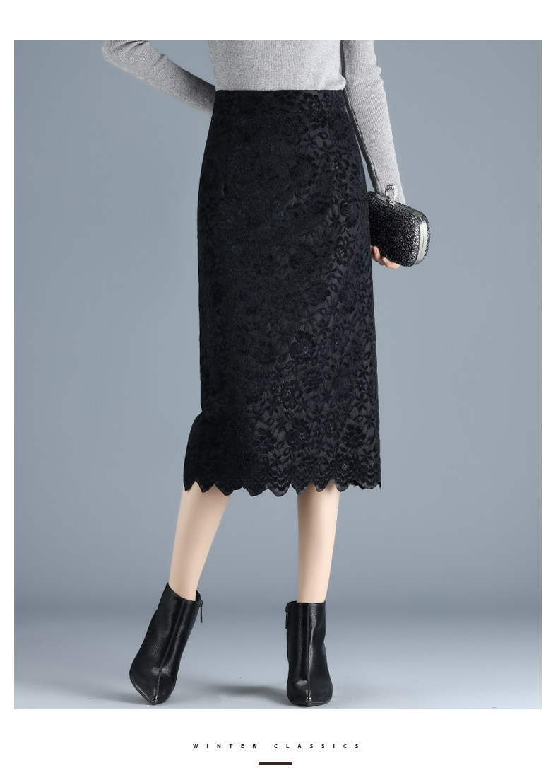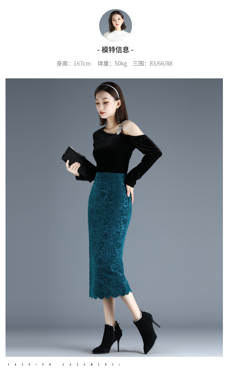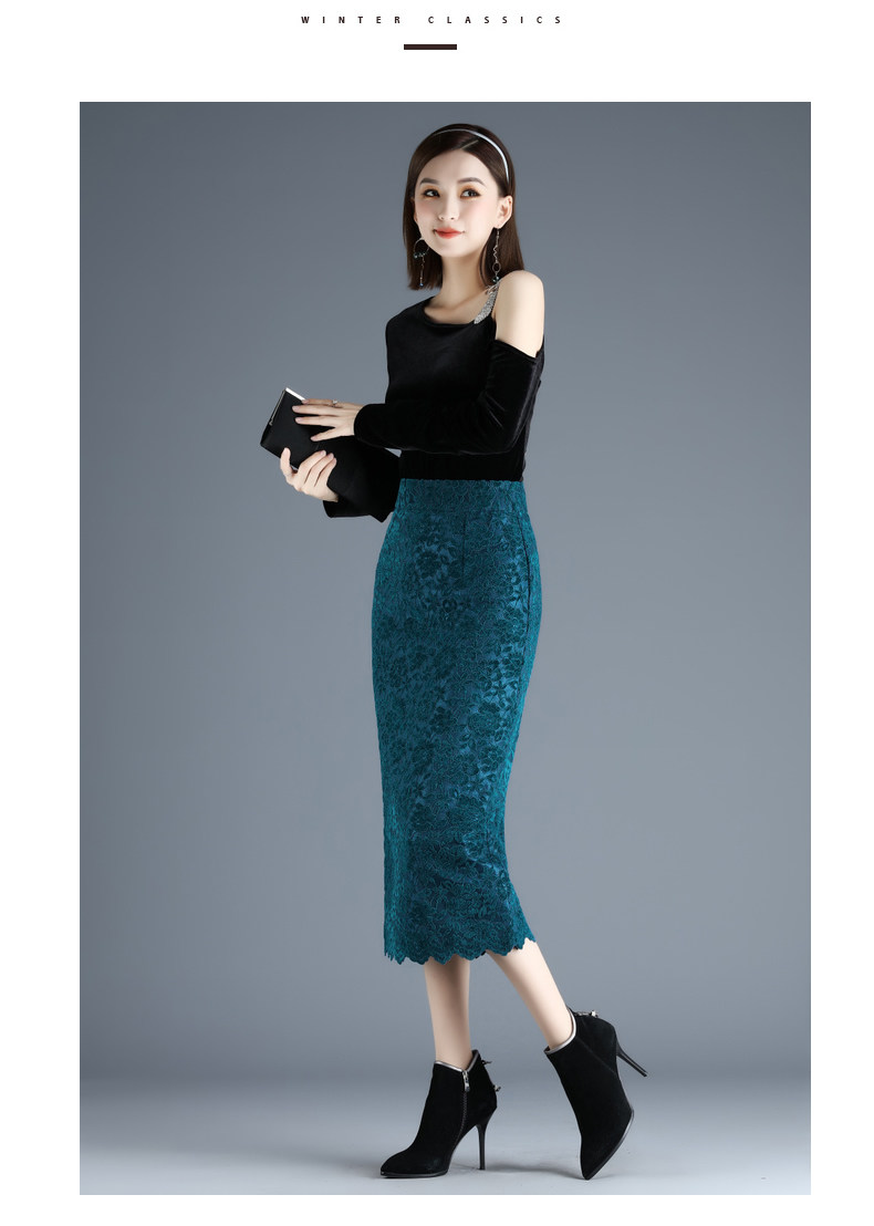 TY-8632秋冬植绒蕾丝裙半身裙女2020新款高腰修身包臀裙中长款开叉一步裙