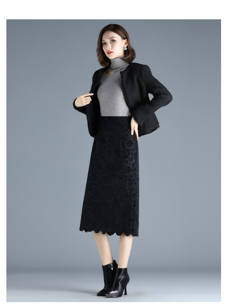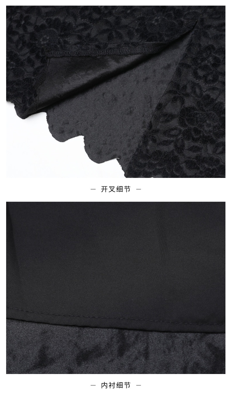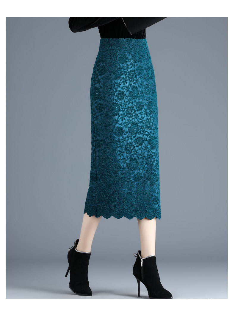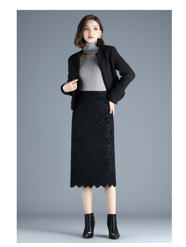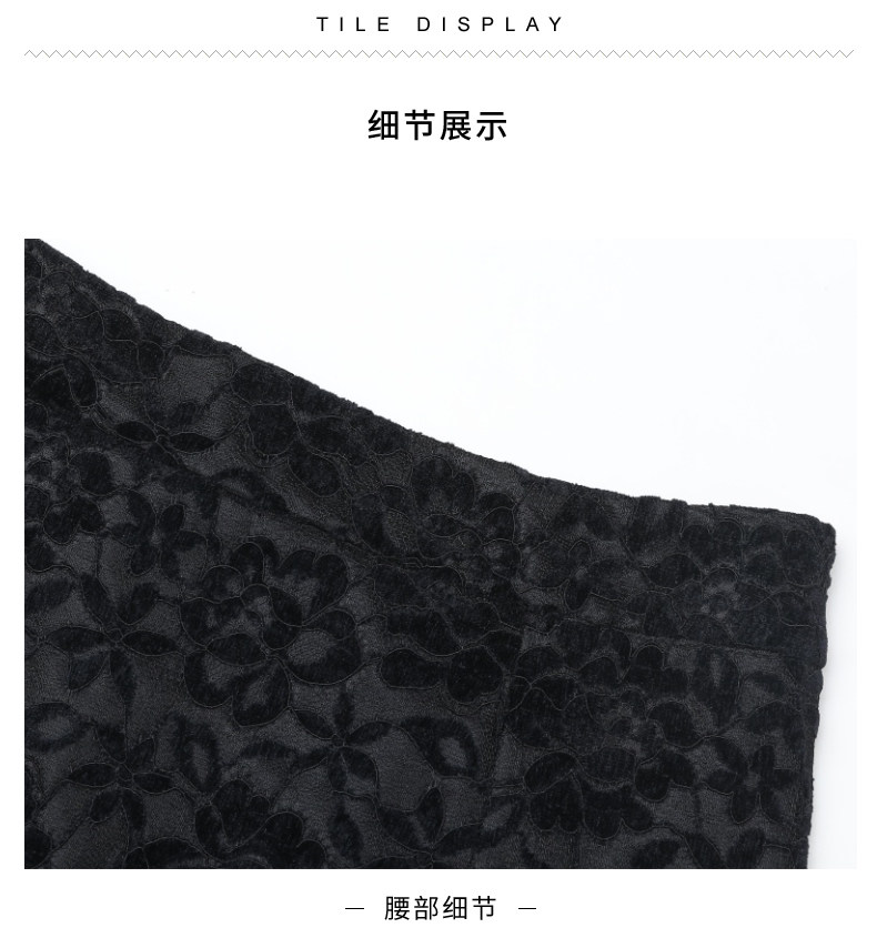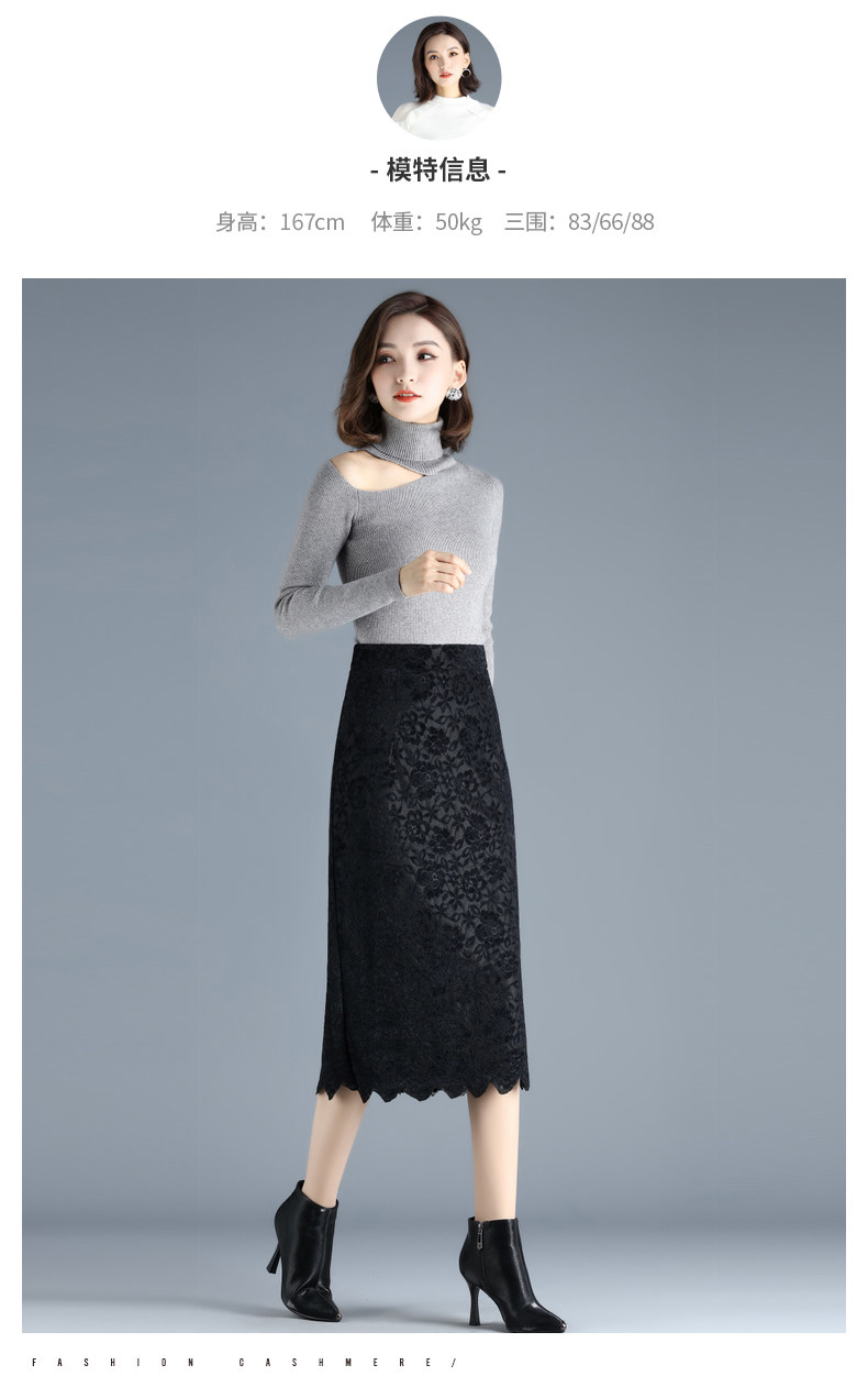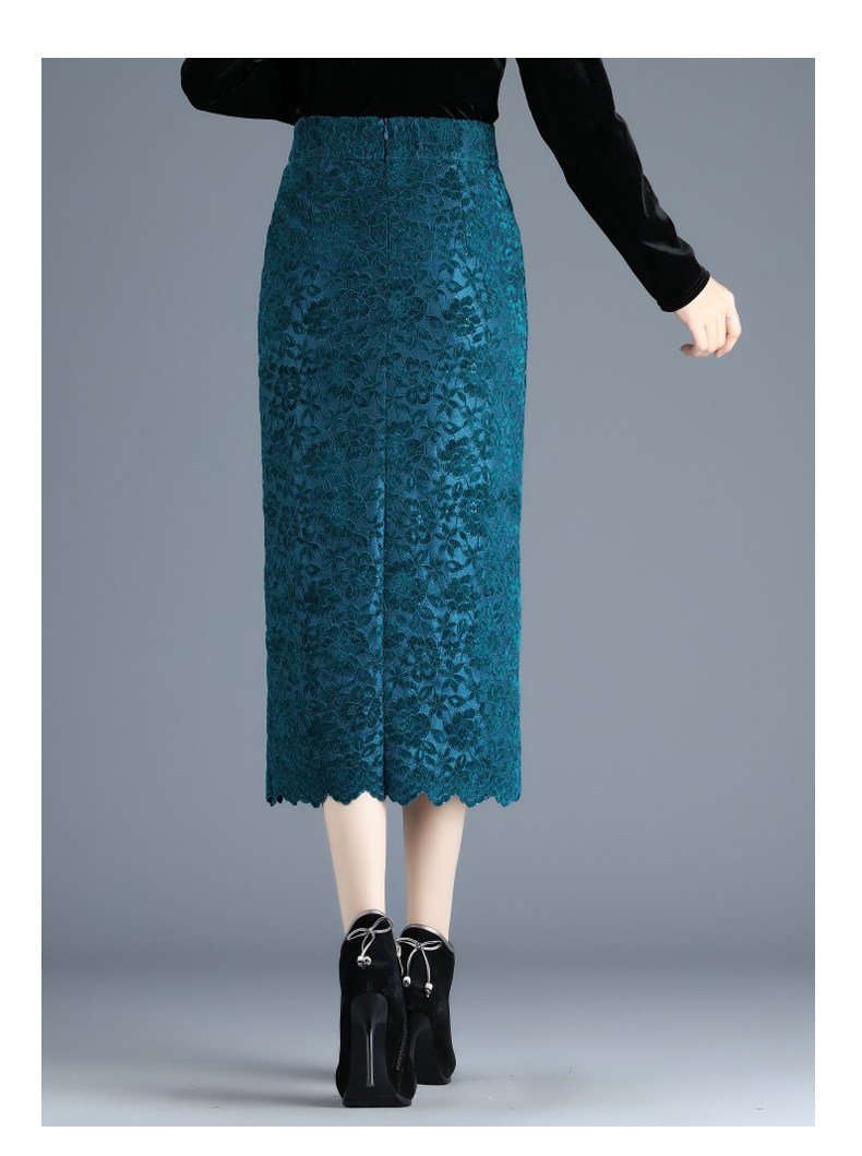 TY-8632秋冬植绒蕾丝裙半身裙女2020新款高腰修身包臀裙中长款开叉一步裙
