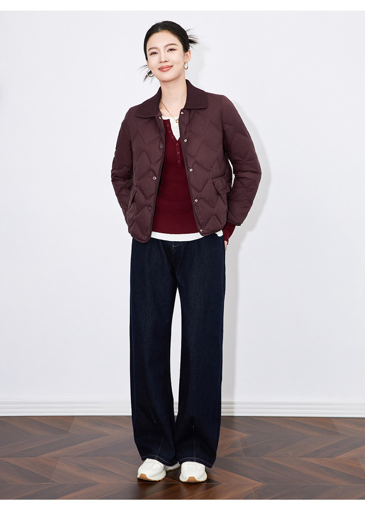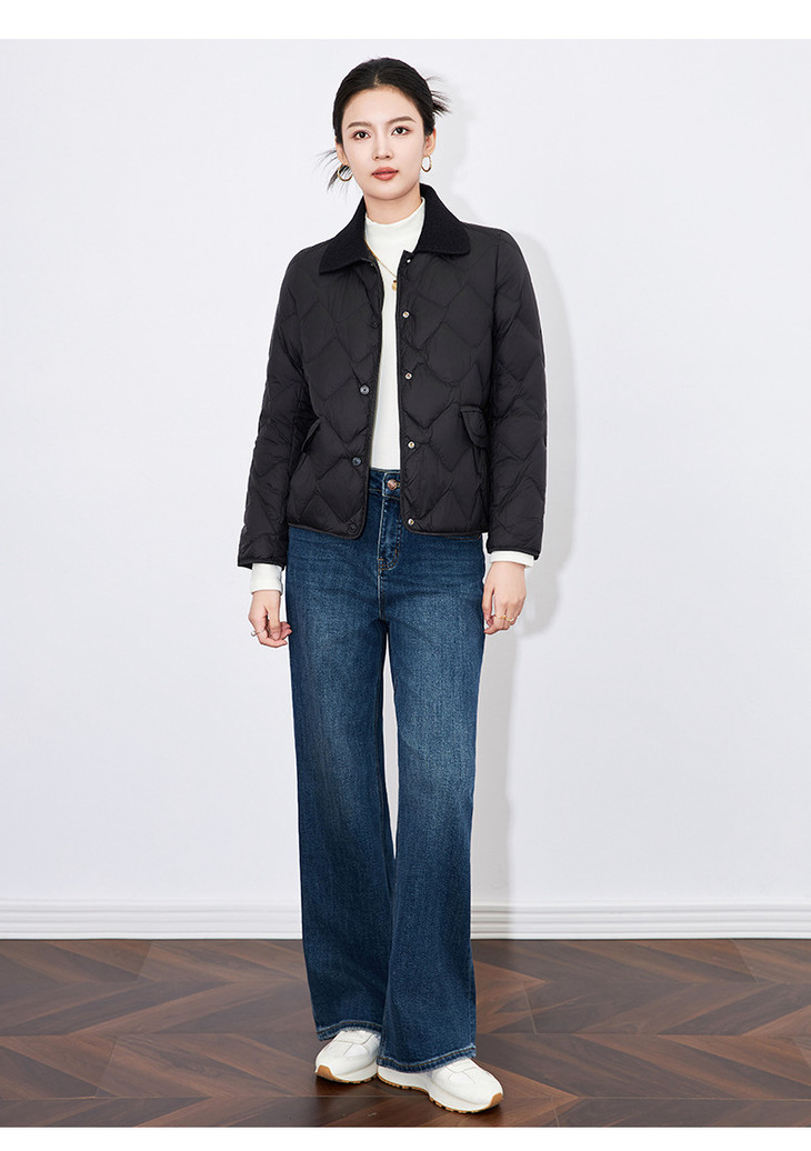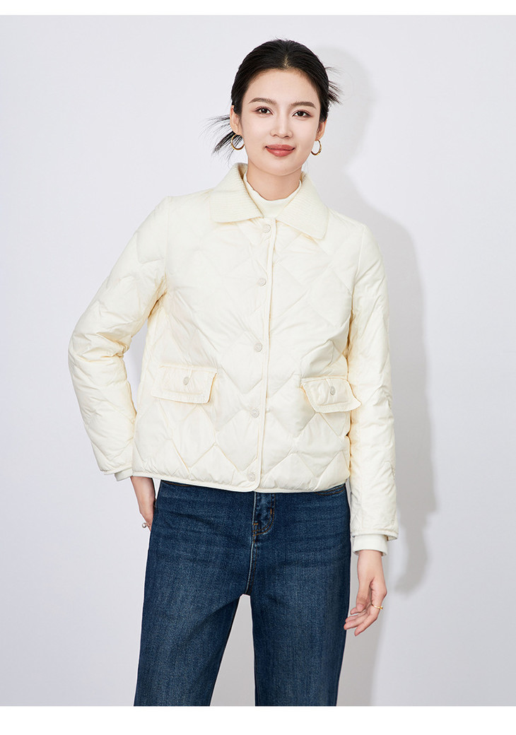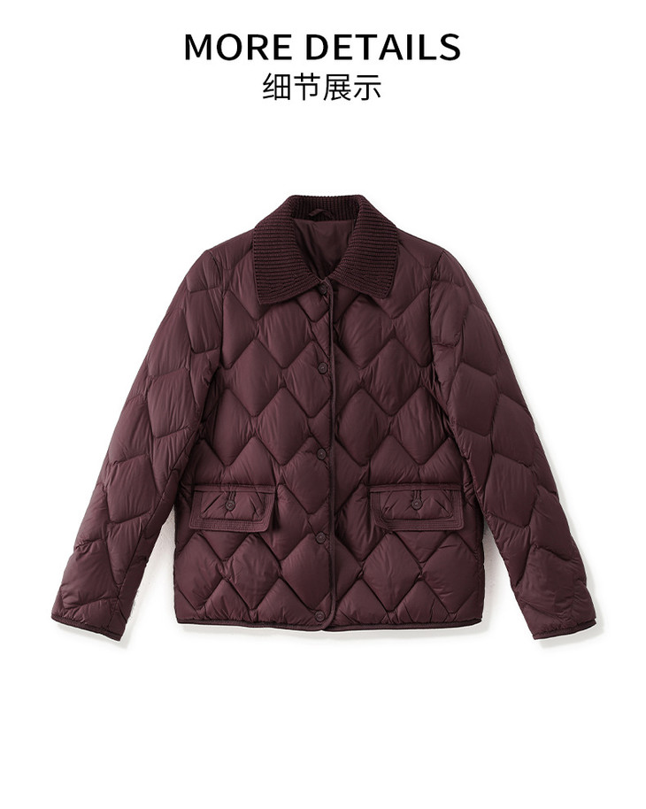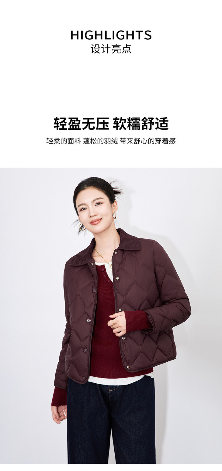 优雅淑女范翻领拼接轻薄羽绒服,鸭绒短款菱格外套WLZD2432304 商品图3