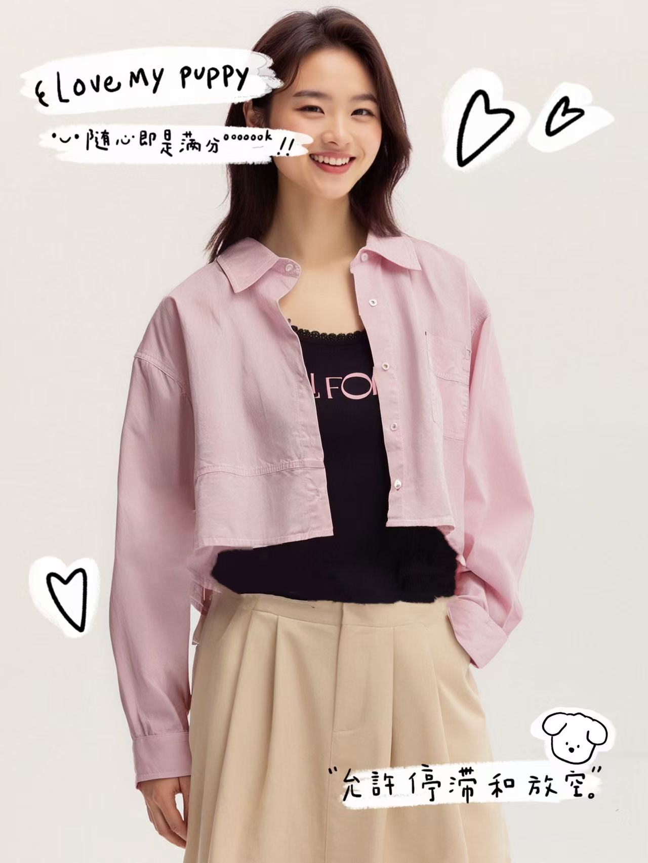 11.11直降到底!! 赠送吊带【时装系列】ME TOWN'S 10023 品质100%棉短款衬衫M1-4微微脏-喜出