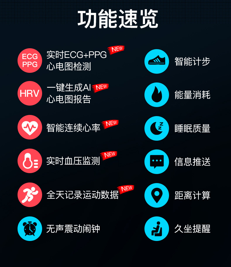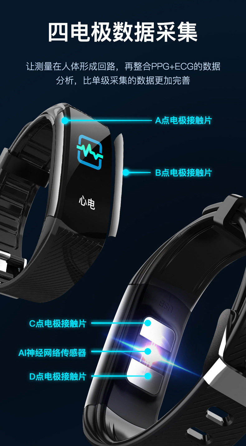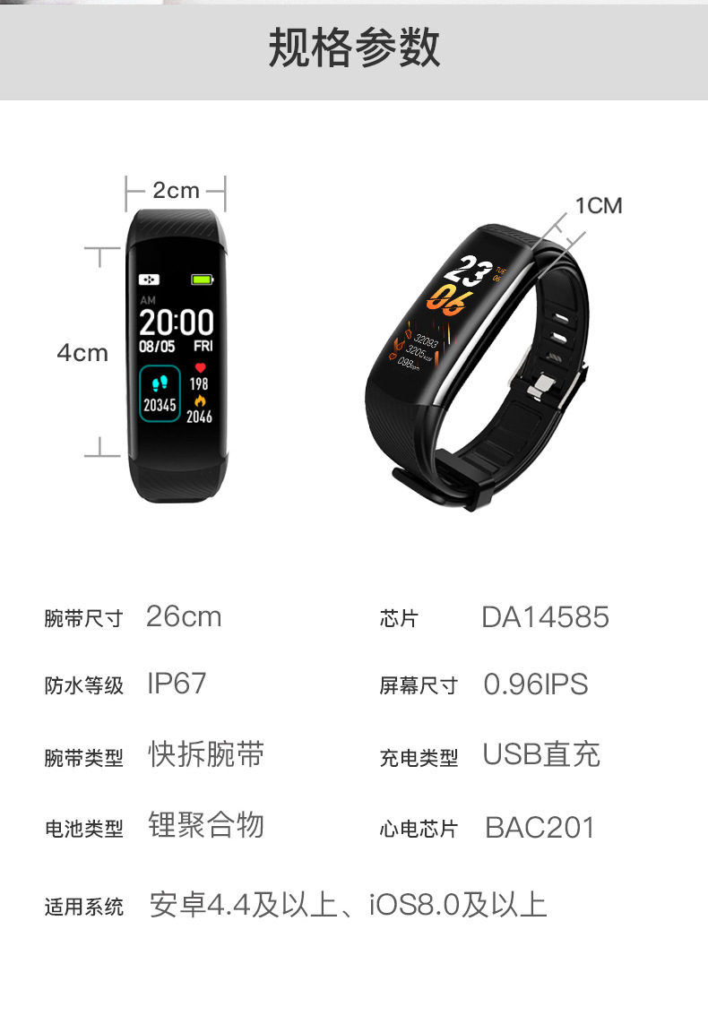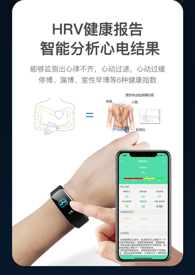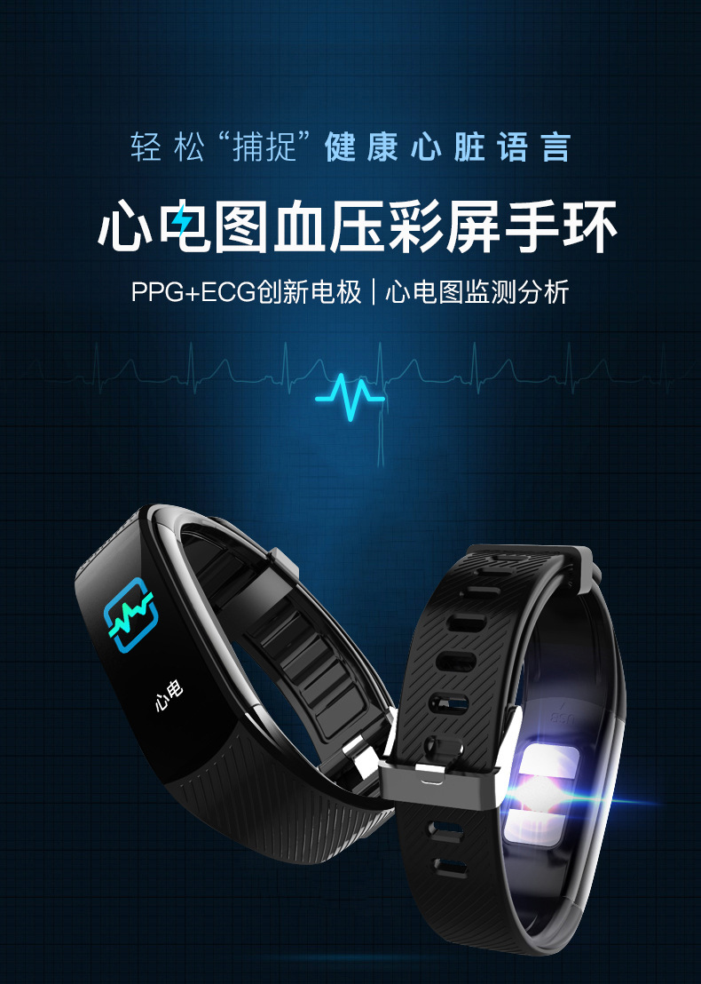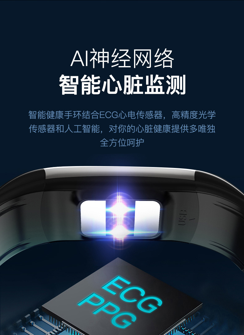优米智能C16智能手环心电图测血压心率血氧运动计步蓝牙手环