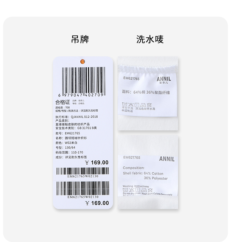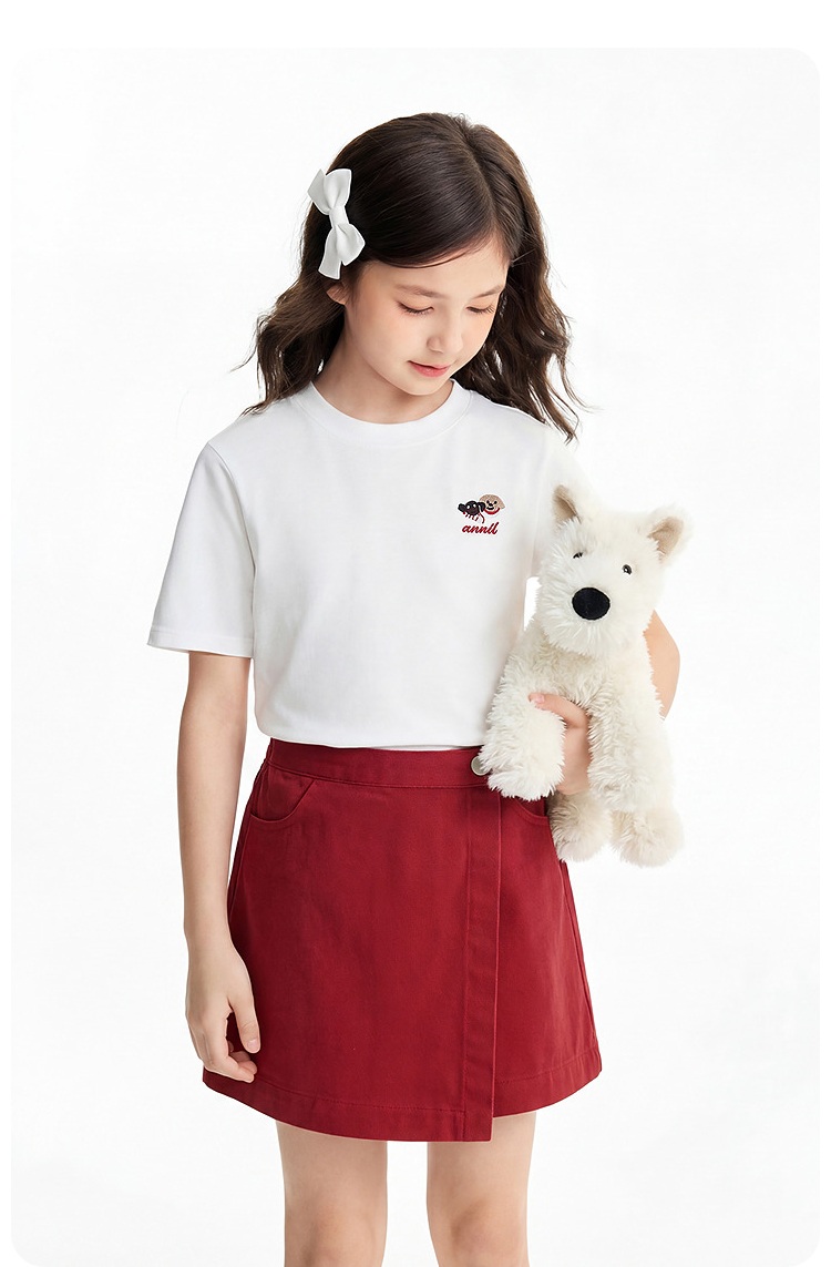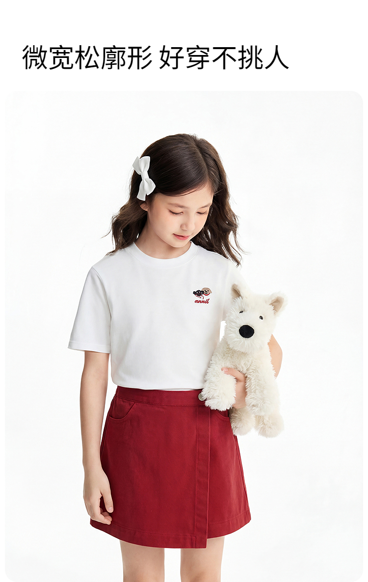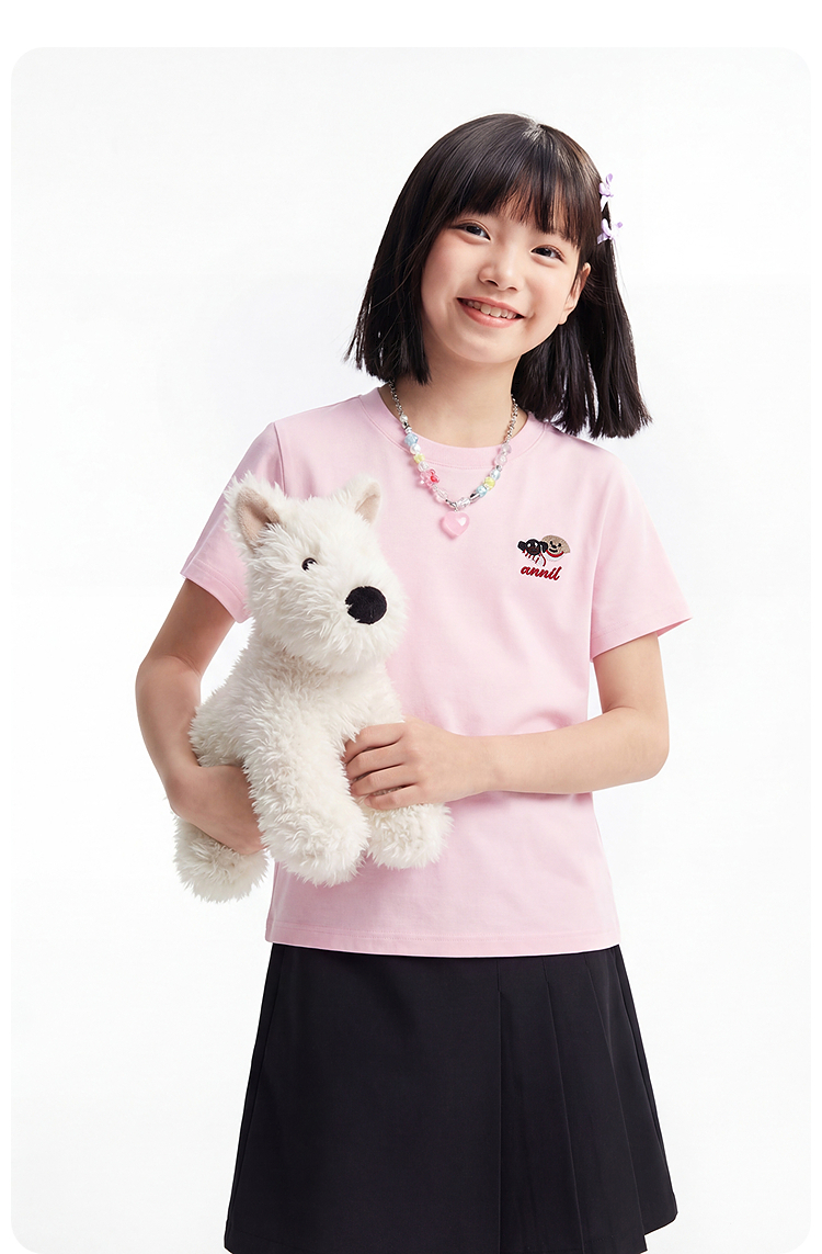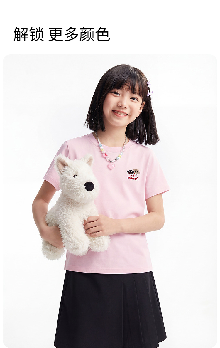 男女童圆领短袖针织衫夏季新款安奈儿童装EM621765