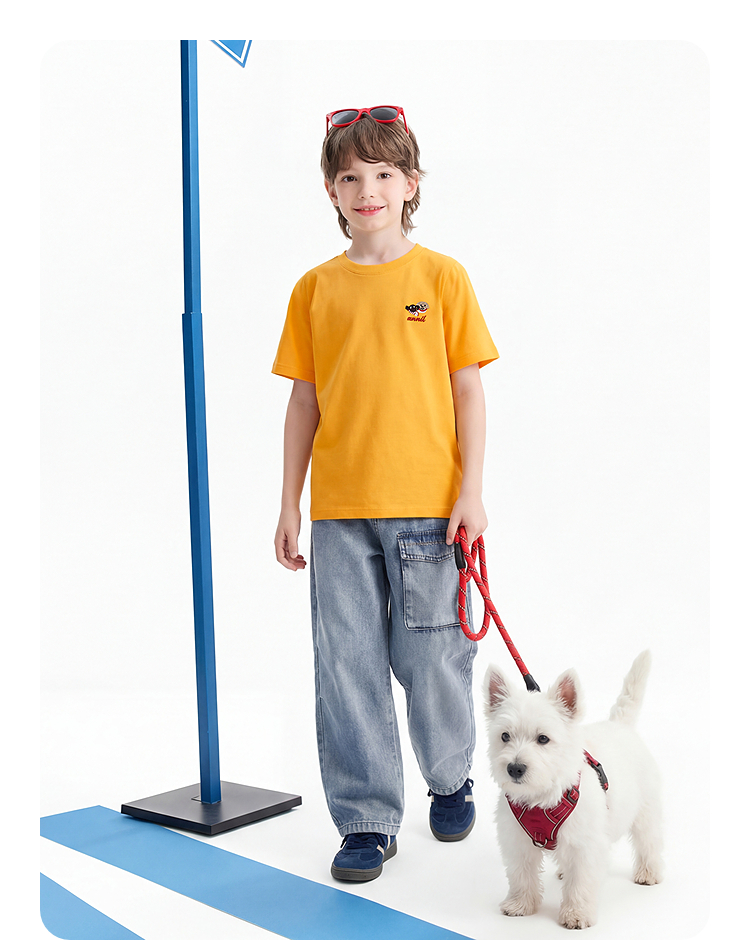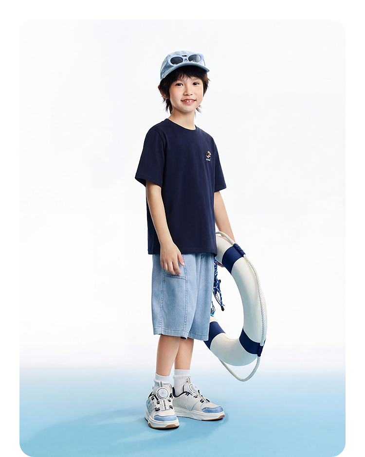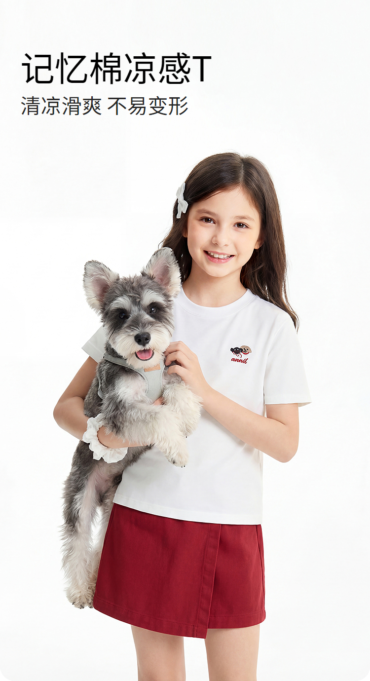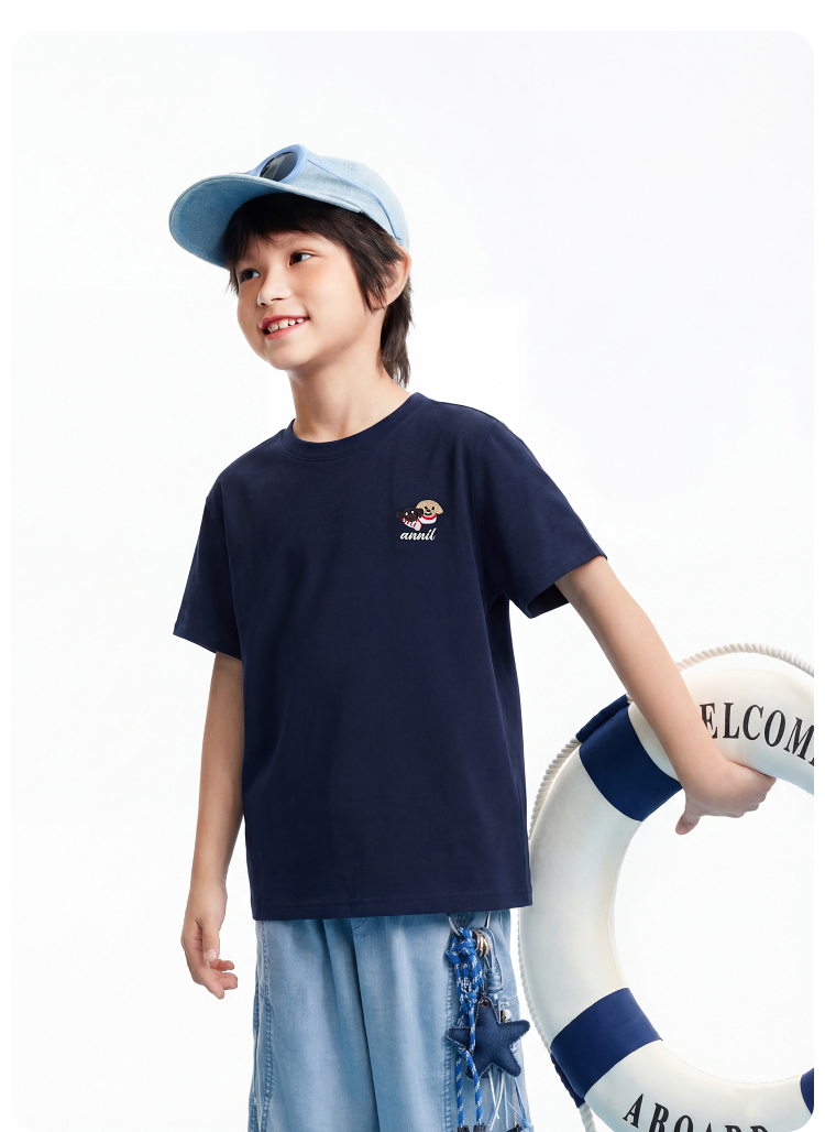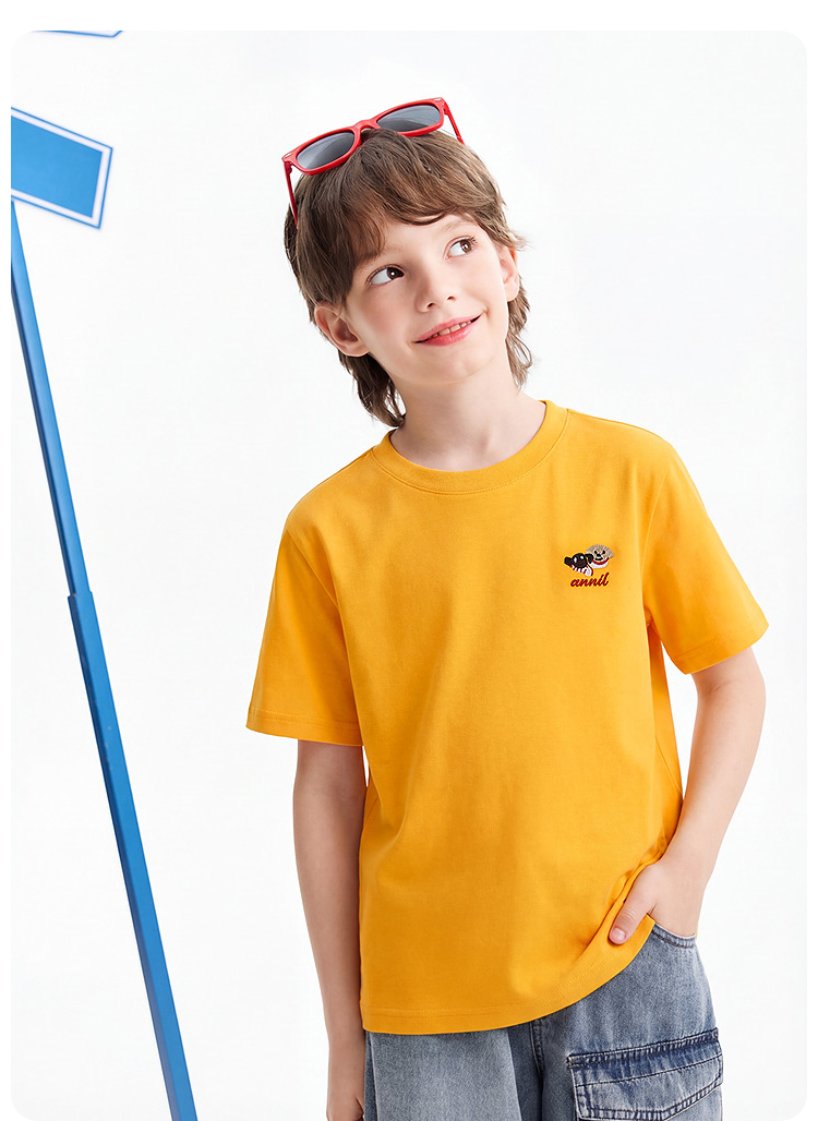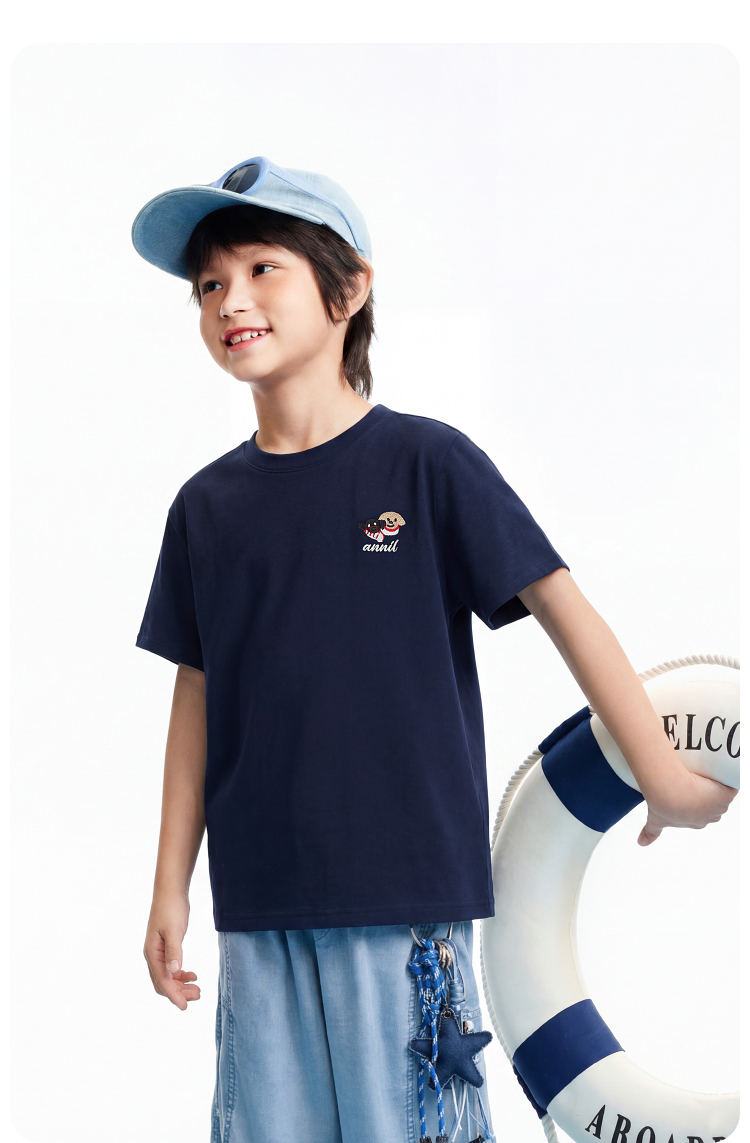 男女童圆领短袖针织衫夏季新款安奈儿童装EM621765