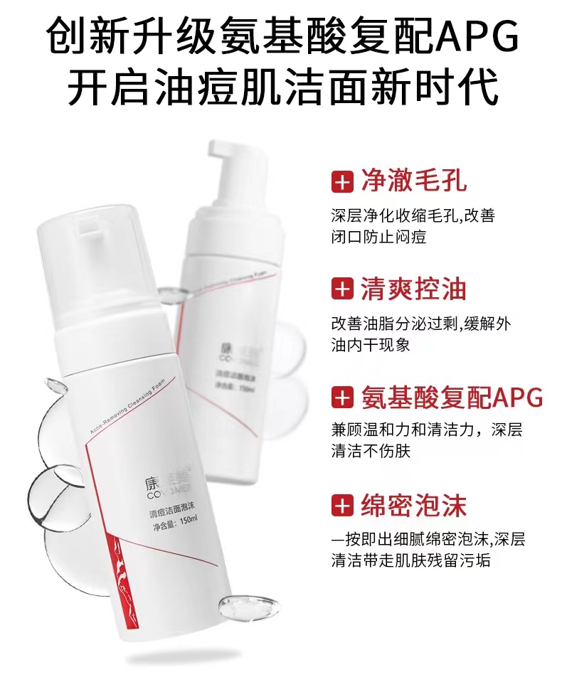 康芙美清痘系列组合:清痘洁面泡沫+清痘净颜爽肤水+特护乳80ml+清痘凝露