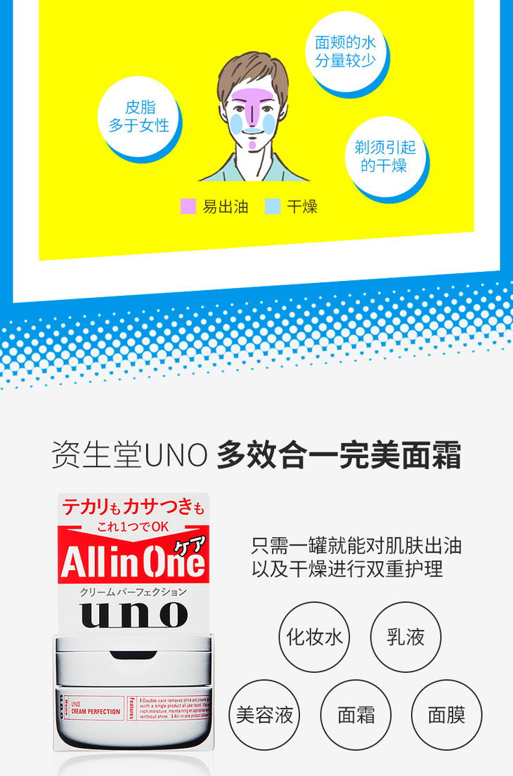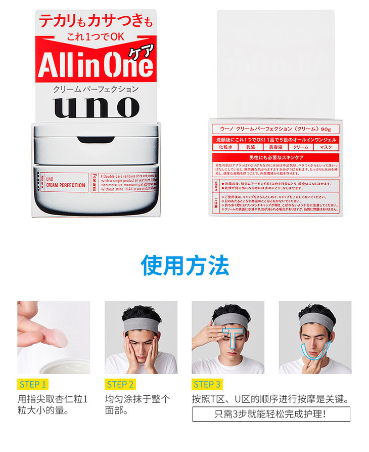 【门店直发】日本资生堂UNO吾诺男士保湿面霜清爽补水五合一护肤霜90g红瓶
