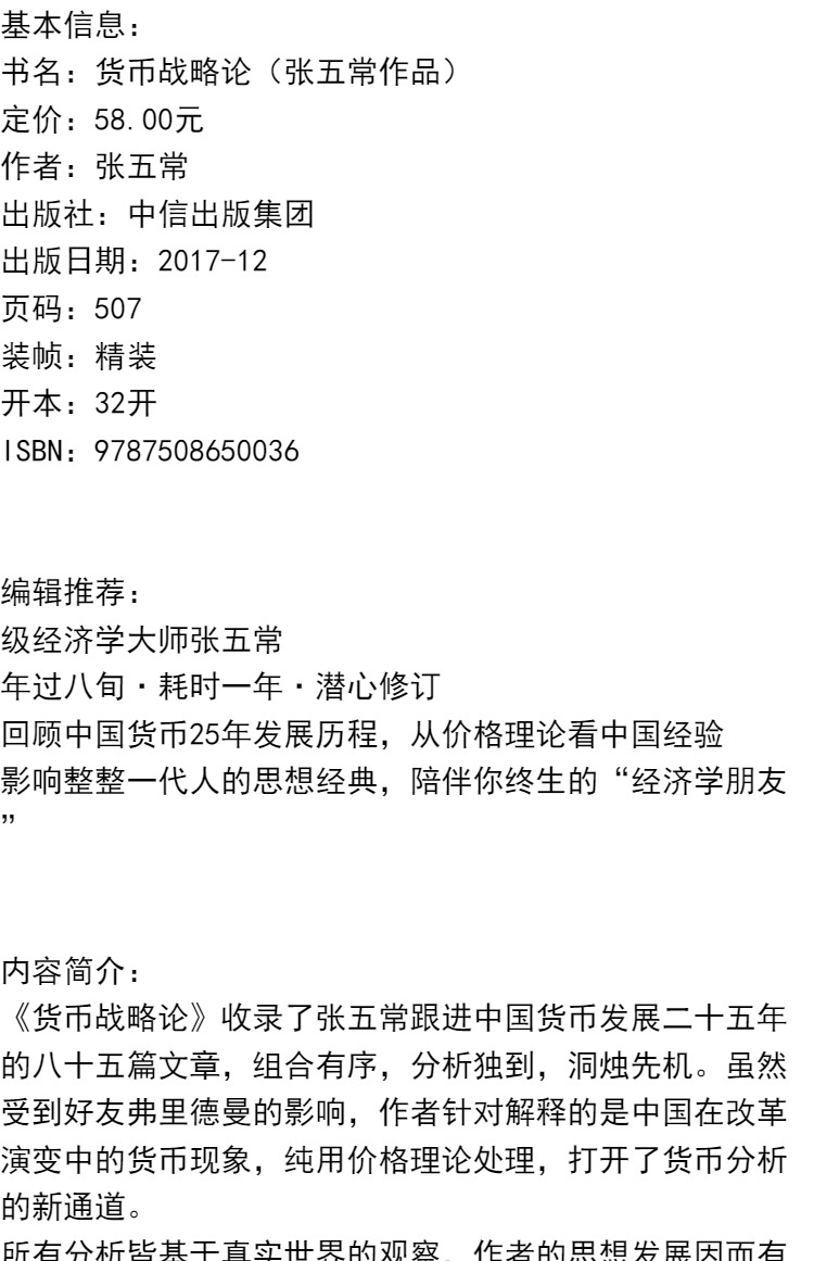 货币战略论 张五常 著 经济学书 经济学原理微观计量经济学入门 中信出版社图书 畅销书 正版书籍