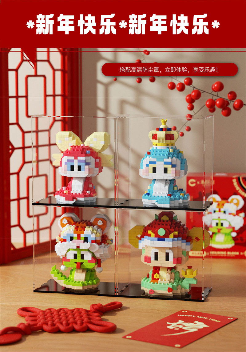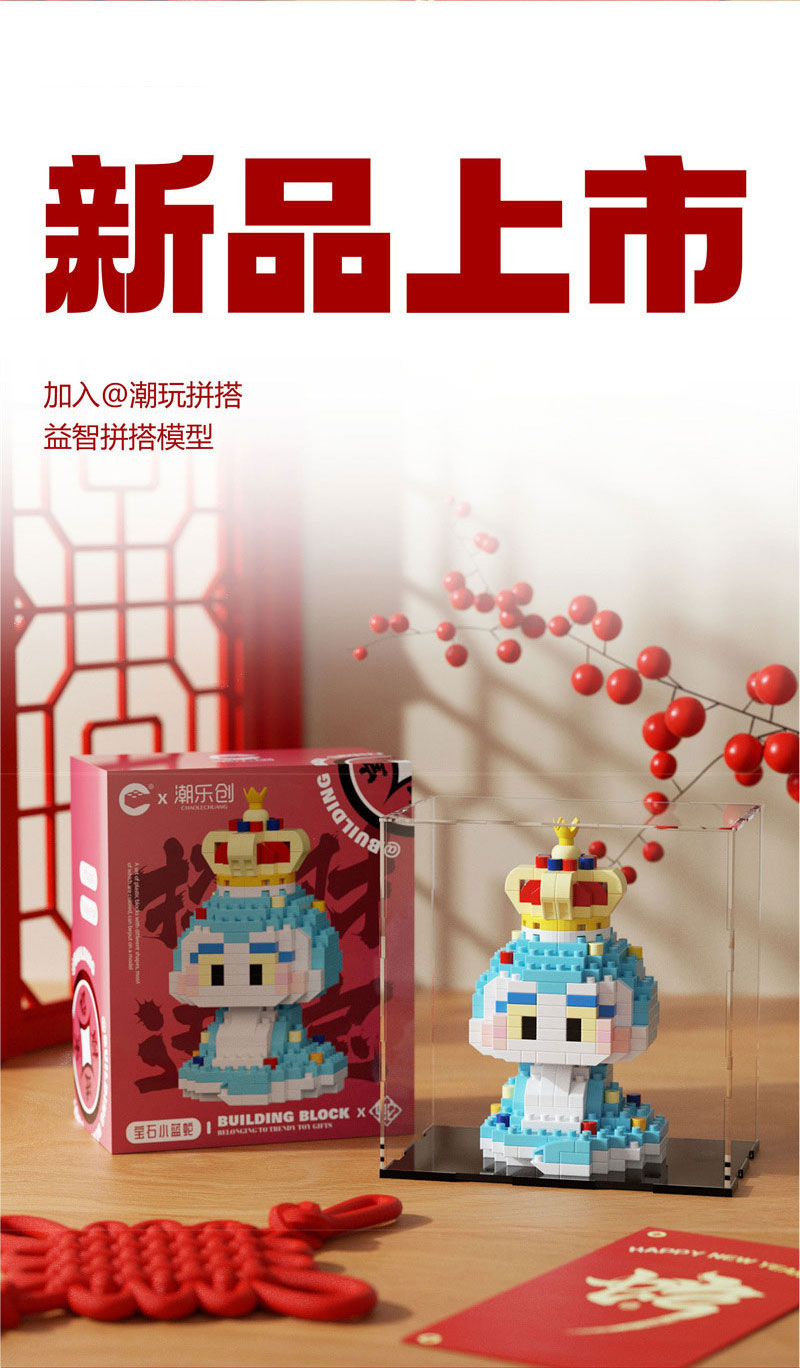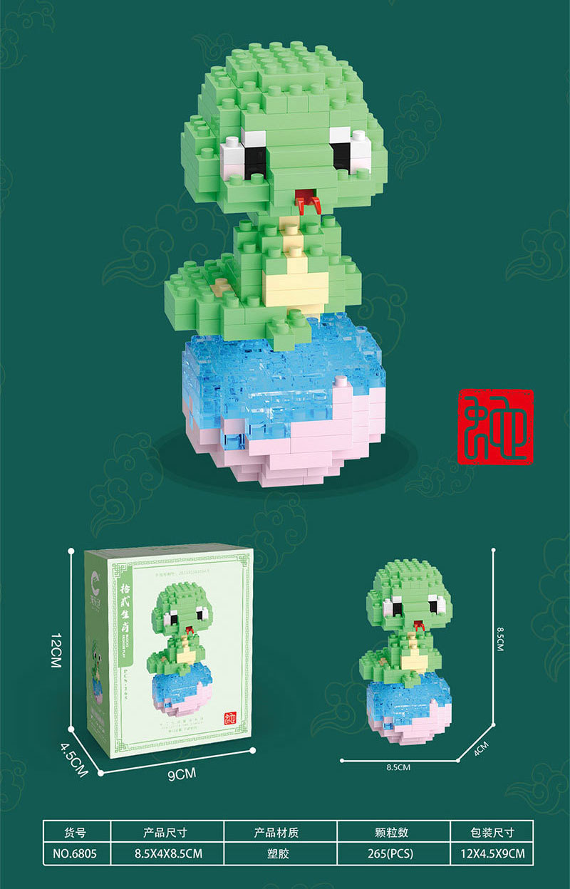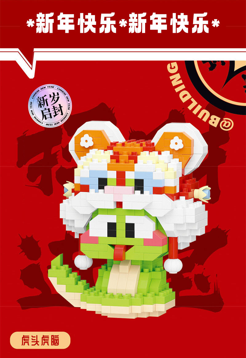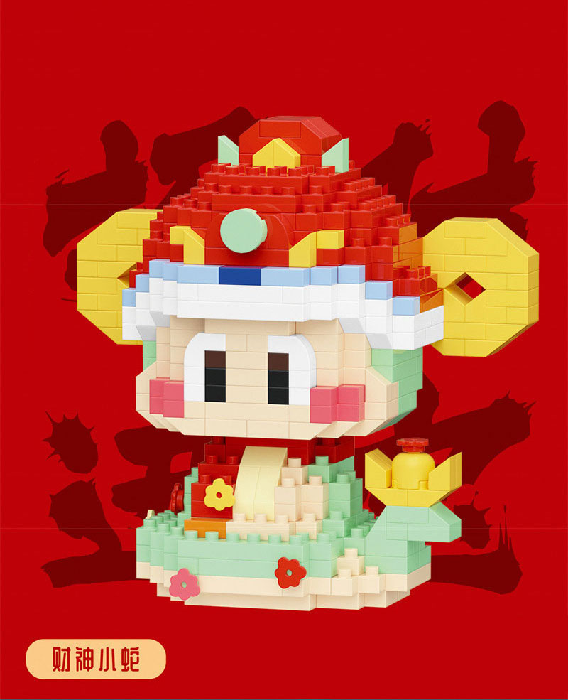 儿童新年蛇年吉祥物十二生肖积木 年货新年礼物财神醒狮拼装积木儿童玩具摆件