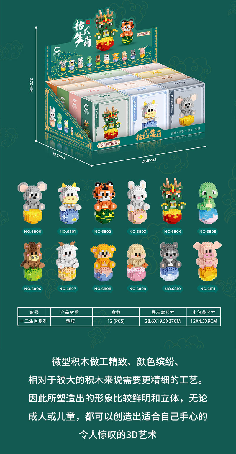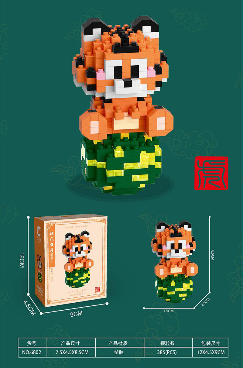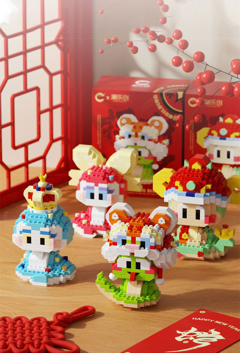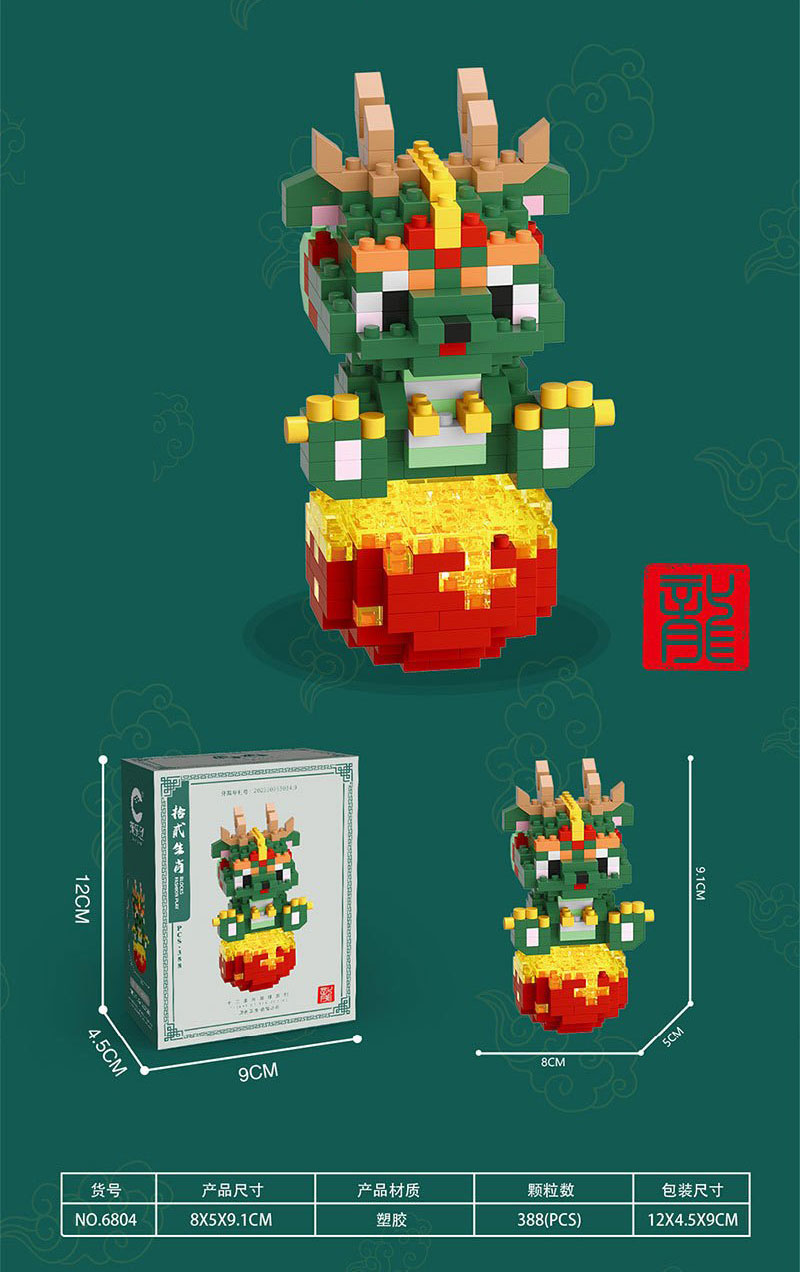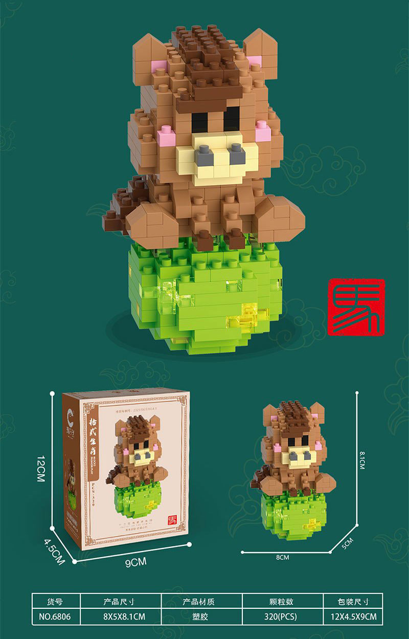 儿童新年蛇年吉祥物十二生肖积木 年货新年礼物财神醒狮拼装积木儿童玩具摆件
