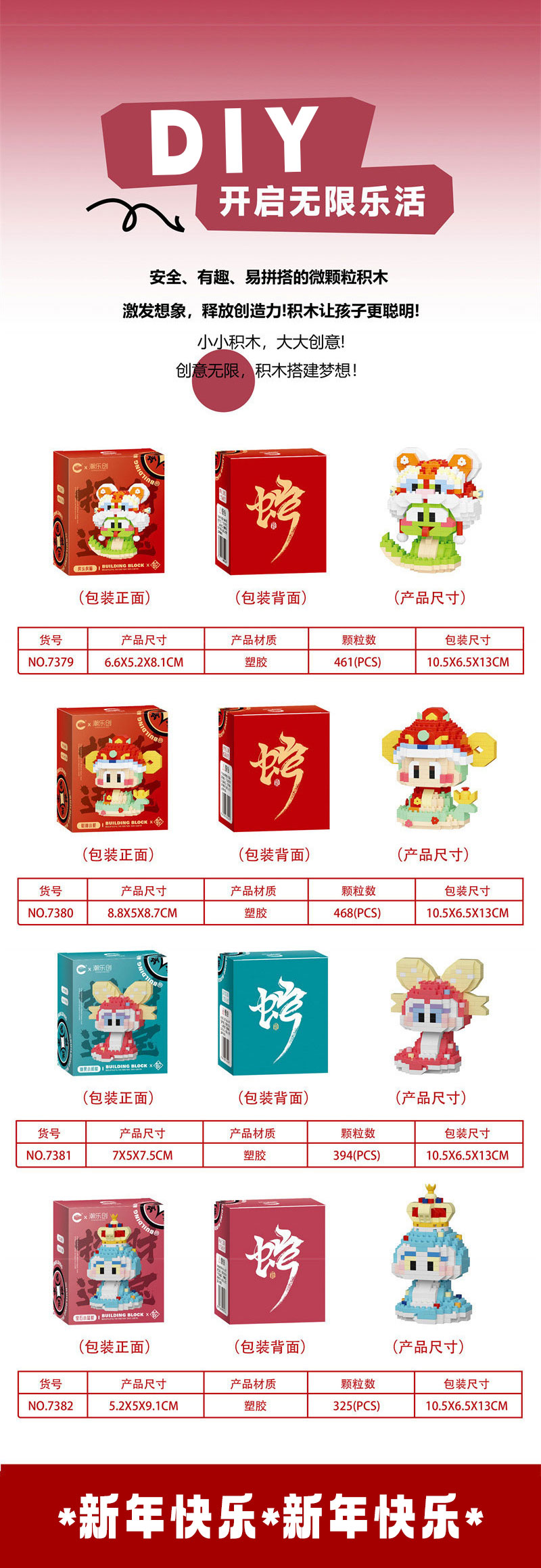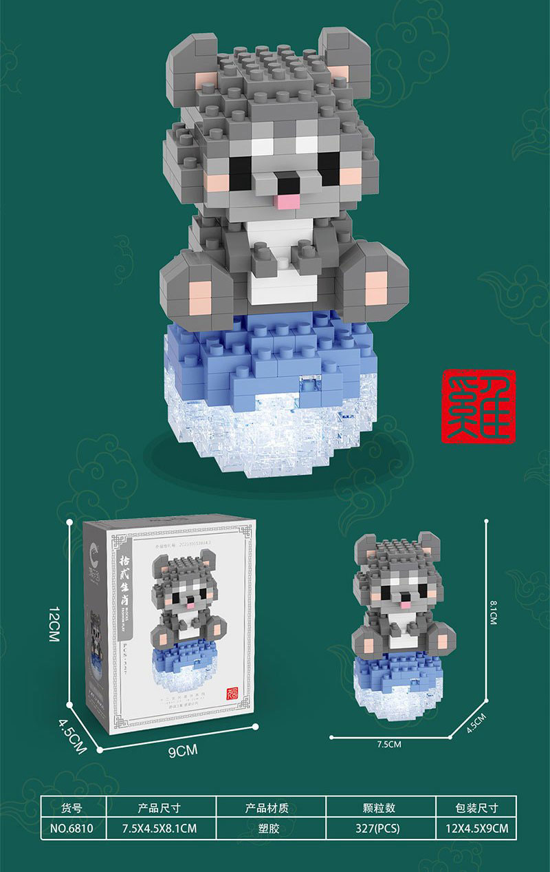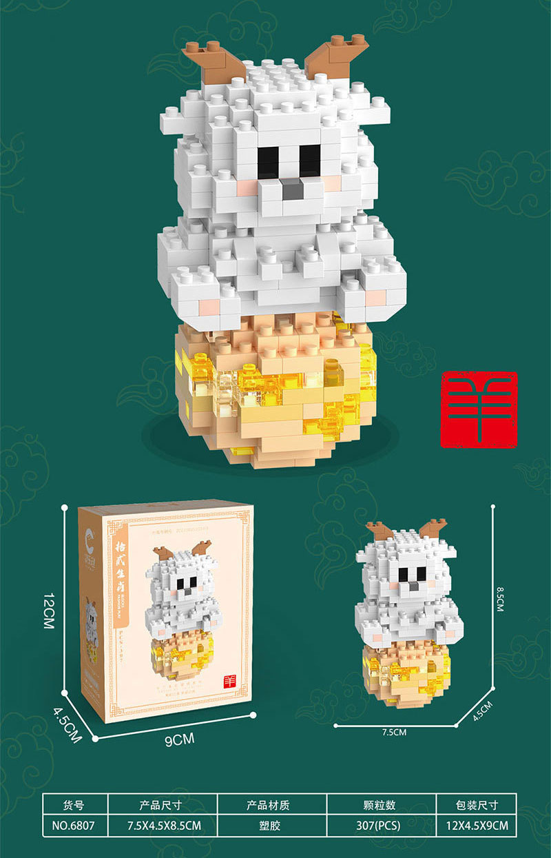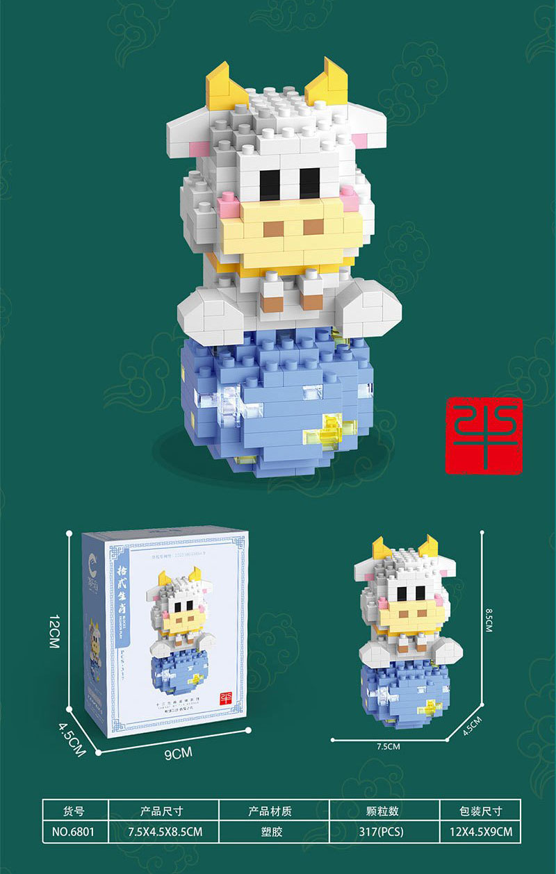 儿童新年蛇年吉祥物十二生肖积木 年货新年礼物财神醒狮拼装积木儿童玩具摆件