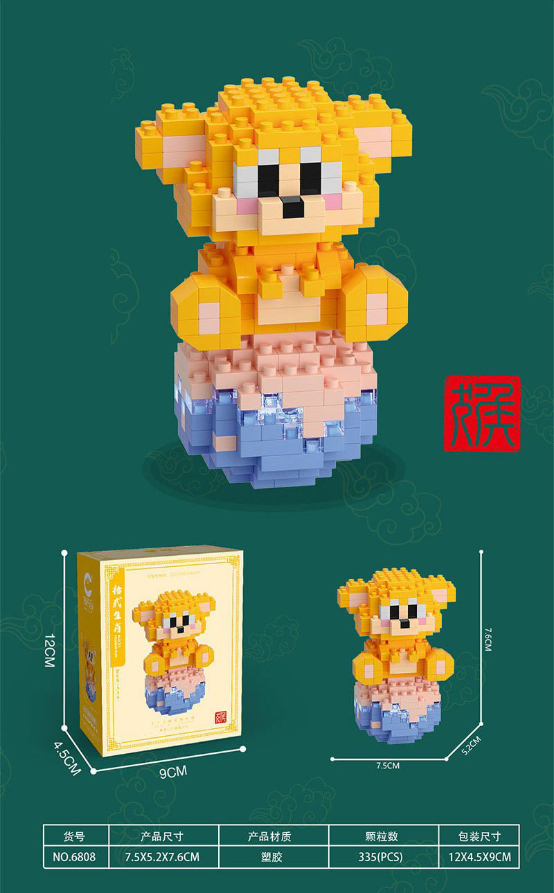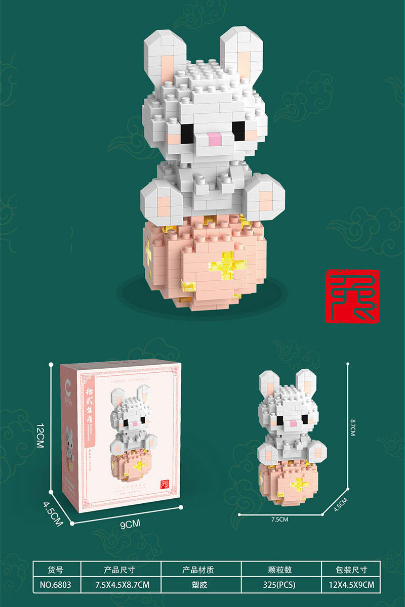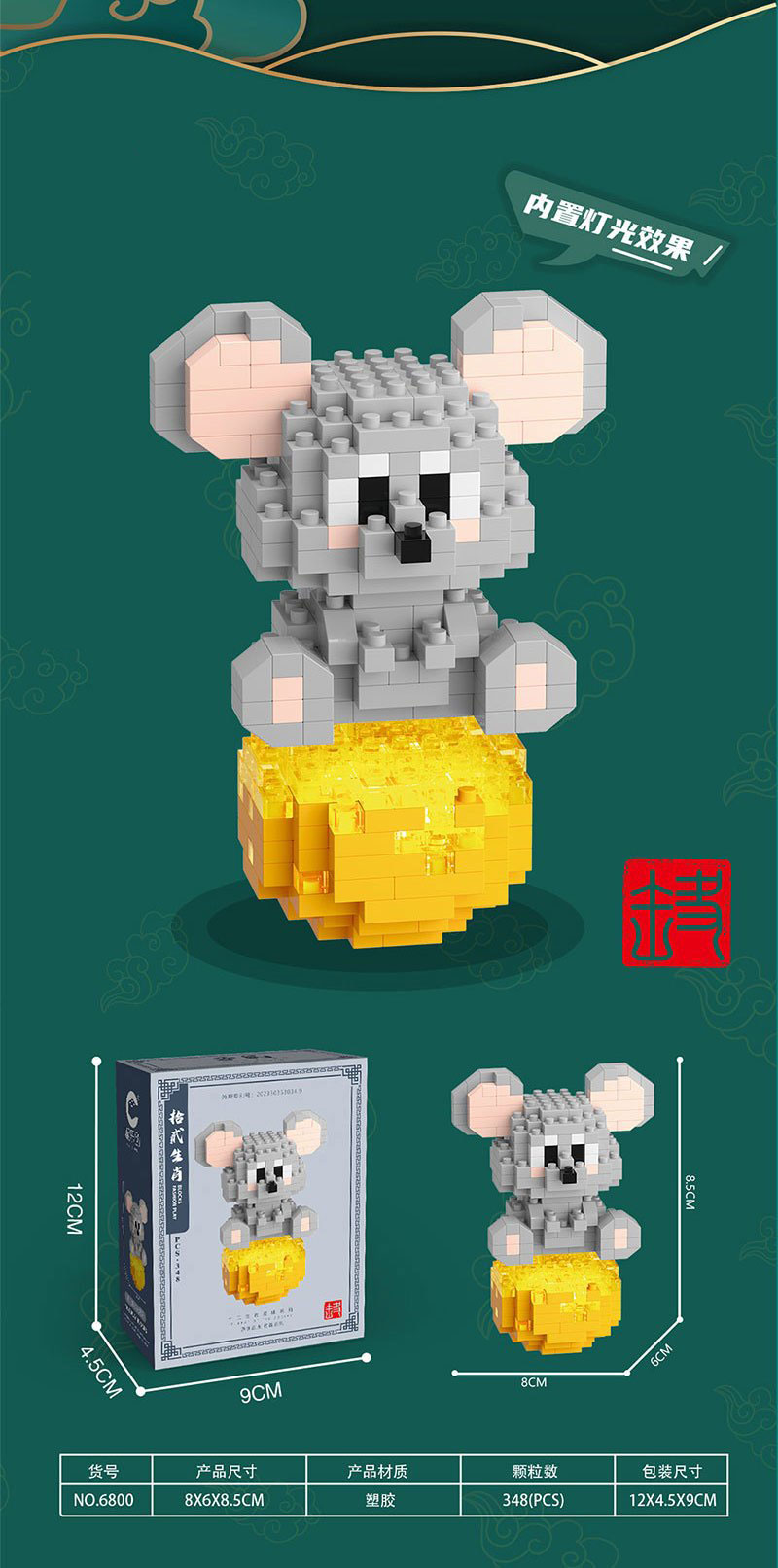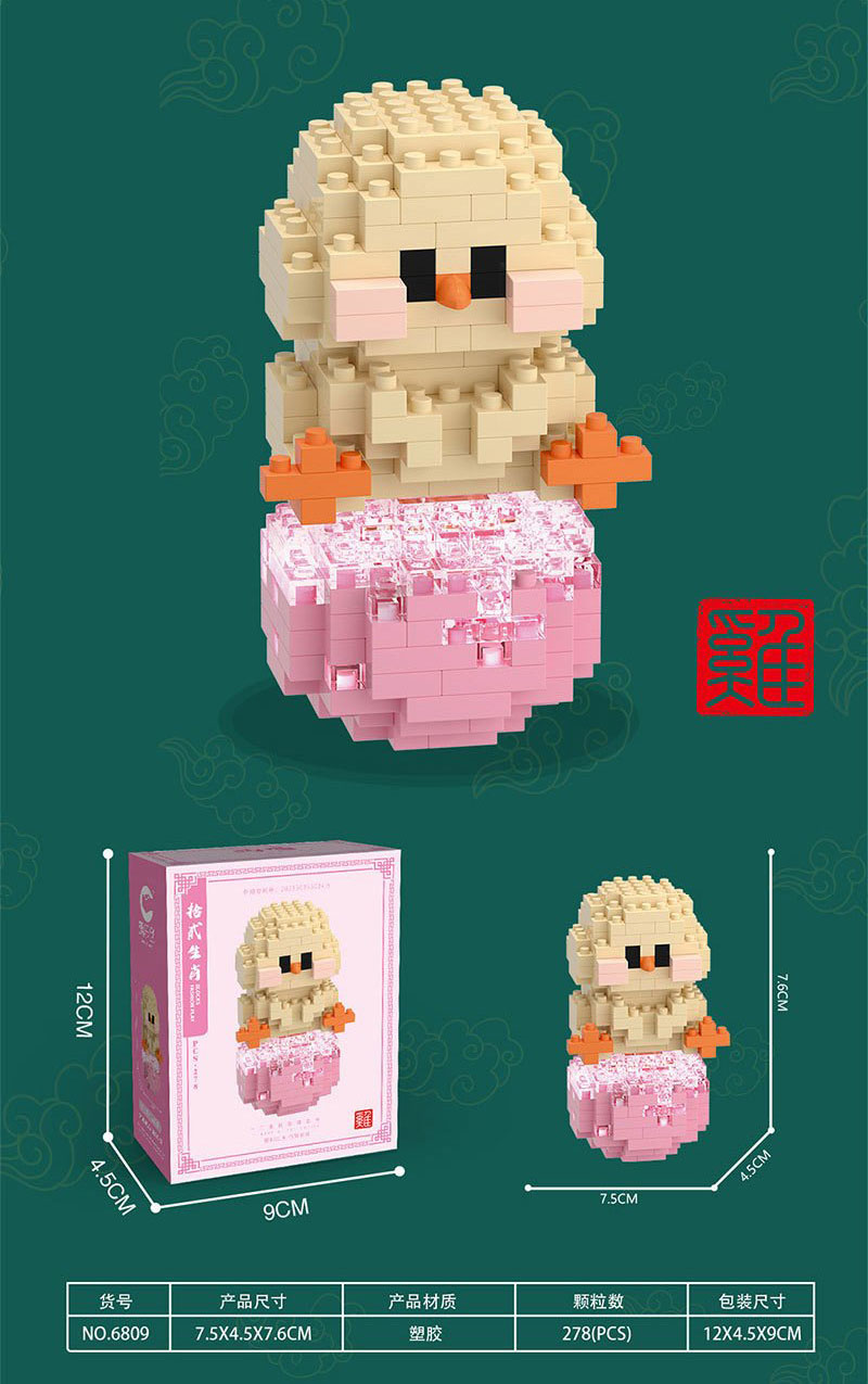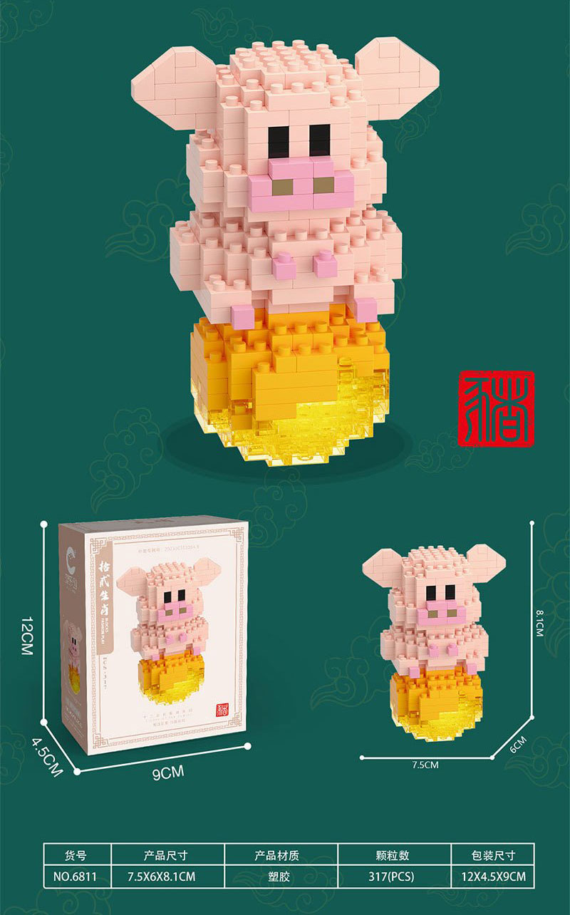 儿童新年蛇年吉祥物十二生肖积木 年货新年礼物财神醒狮拼装积木儿童玩具摆件