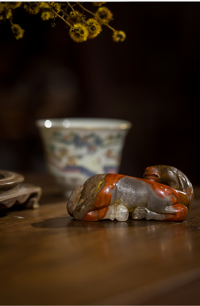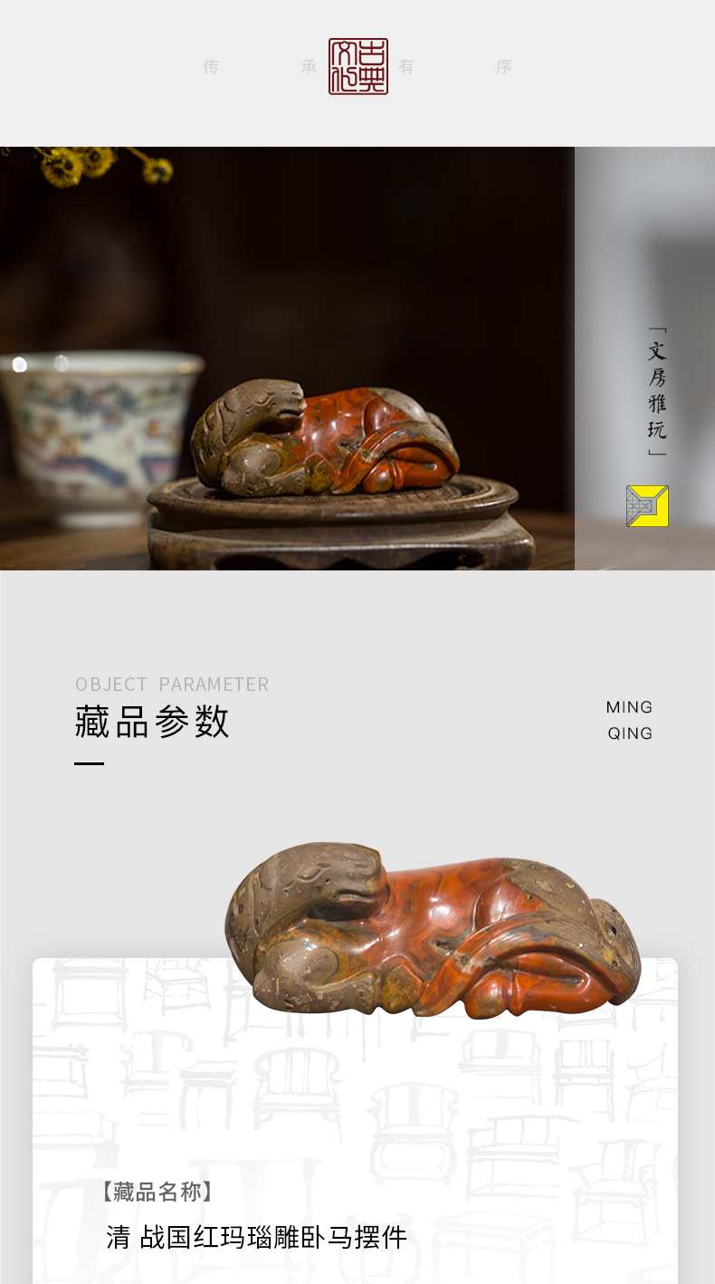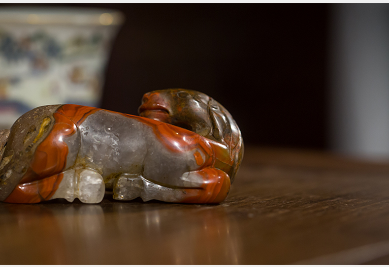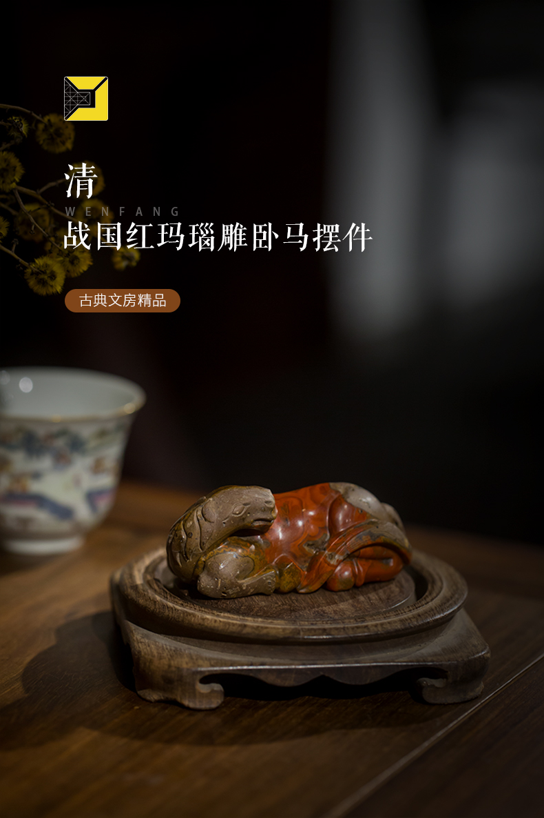 清代 战国红玛瑙雕卧马摆件
