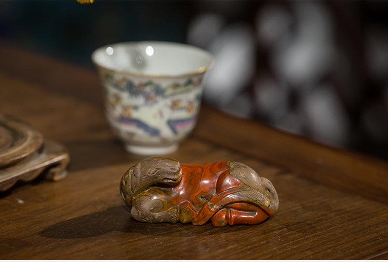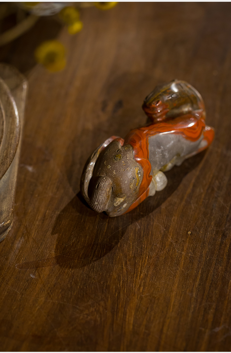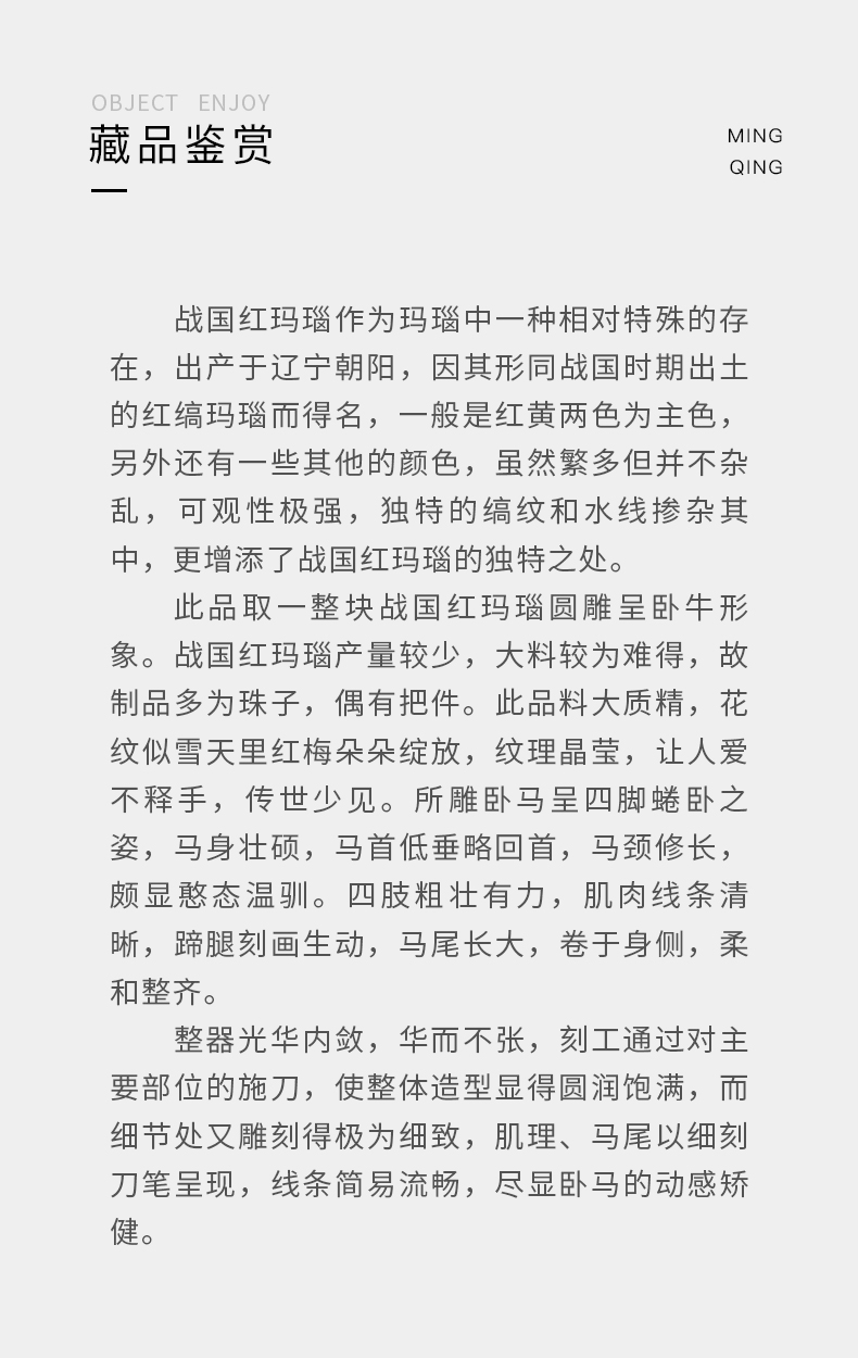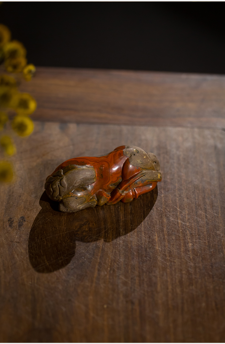 清代 战国红玛瑙雕卧马摆件