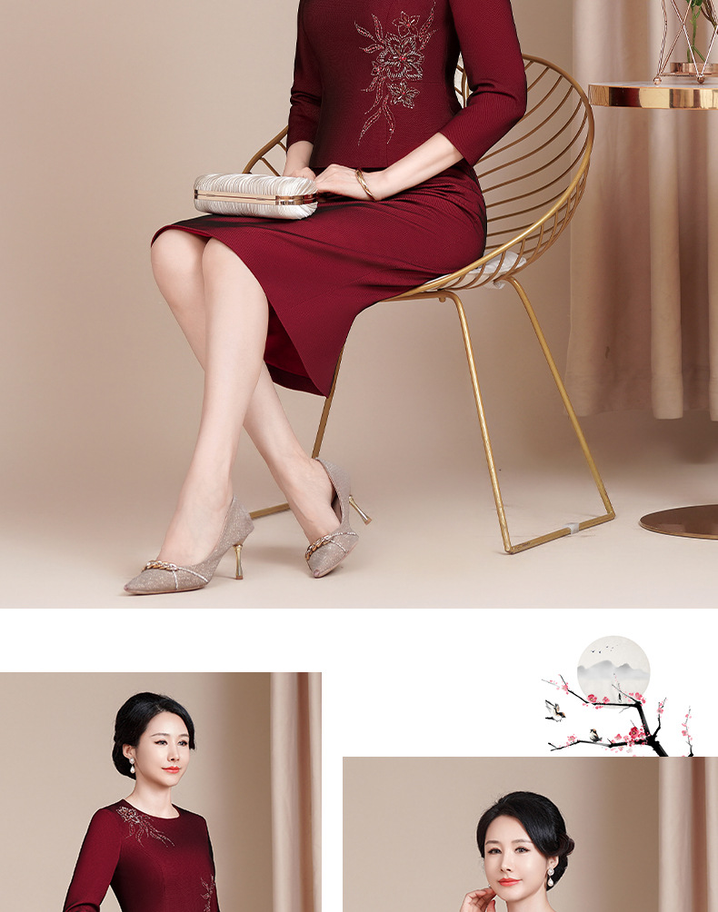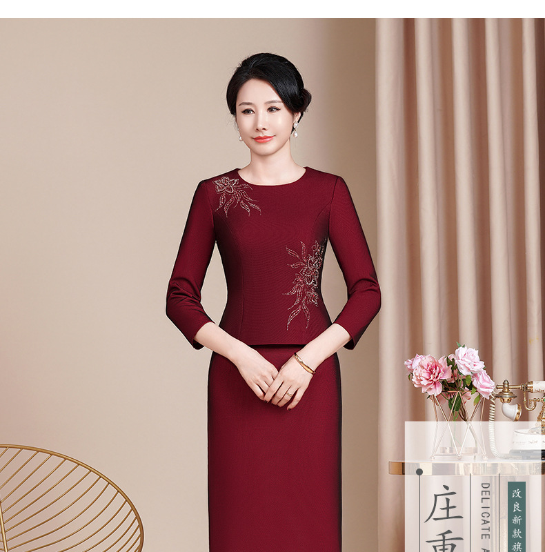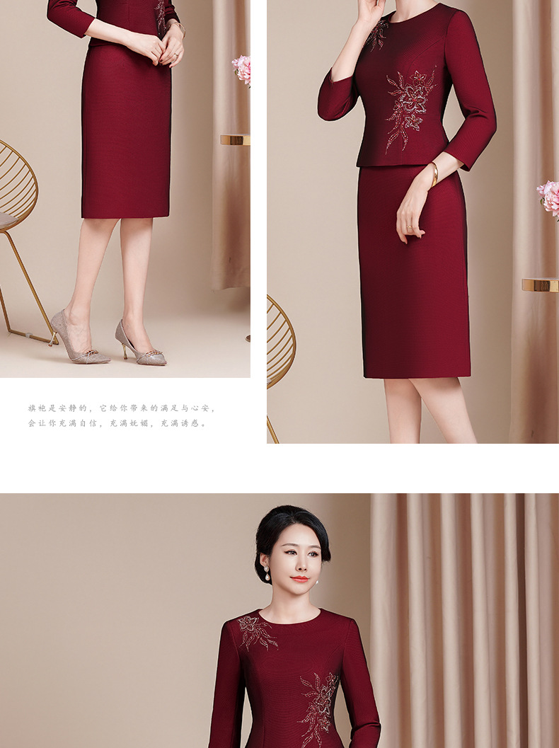 HYX国风旗袍套装两件套改良版钉珠时尚敬酒服长袖日常装