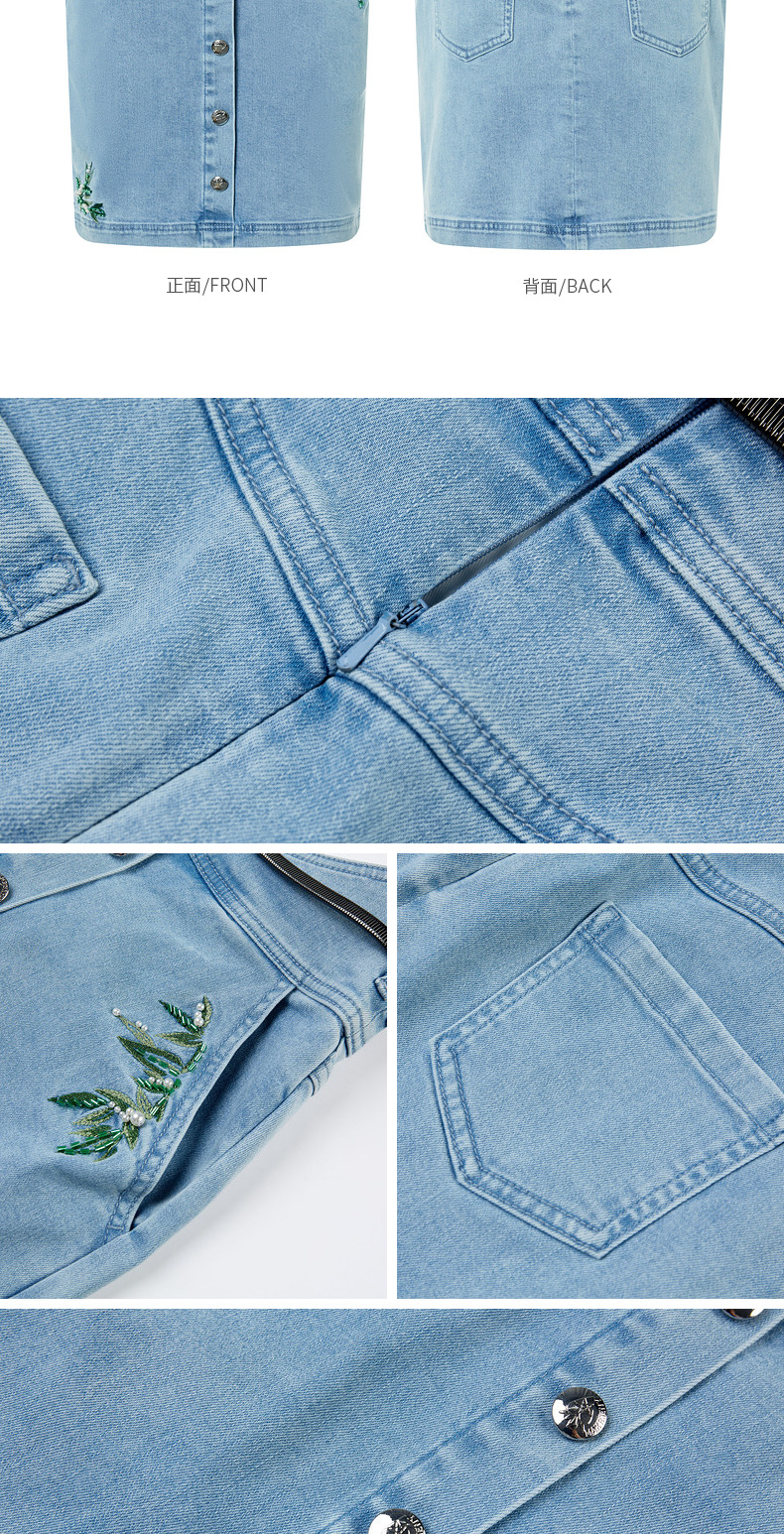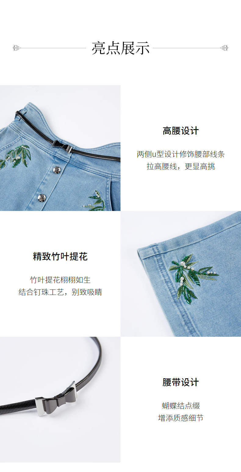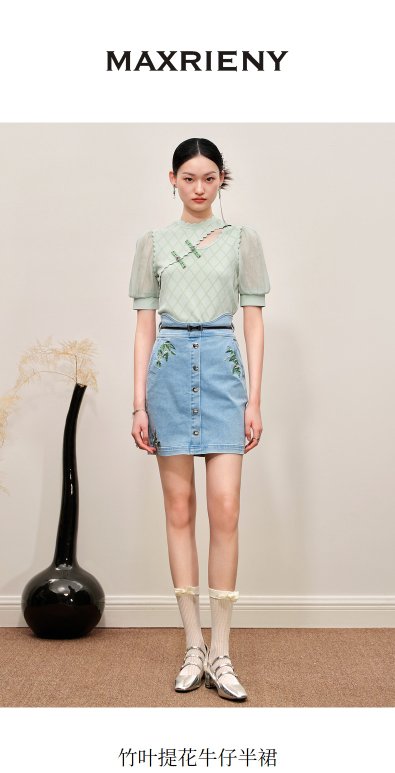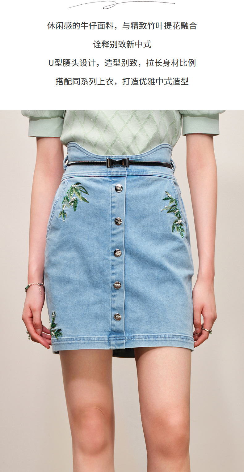 MAXRIENY竹叶提花牛仔半裙修身裙子(货号:MC88SK502)