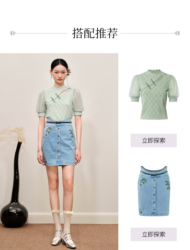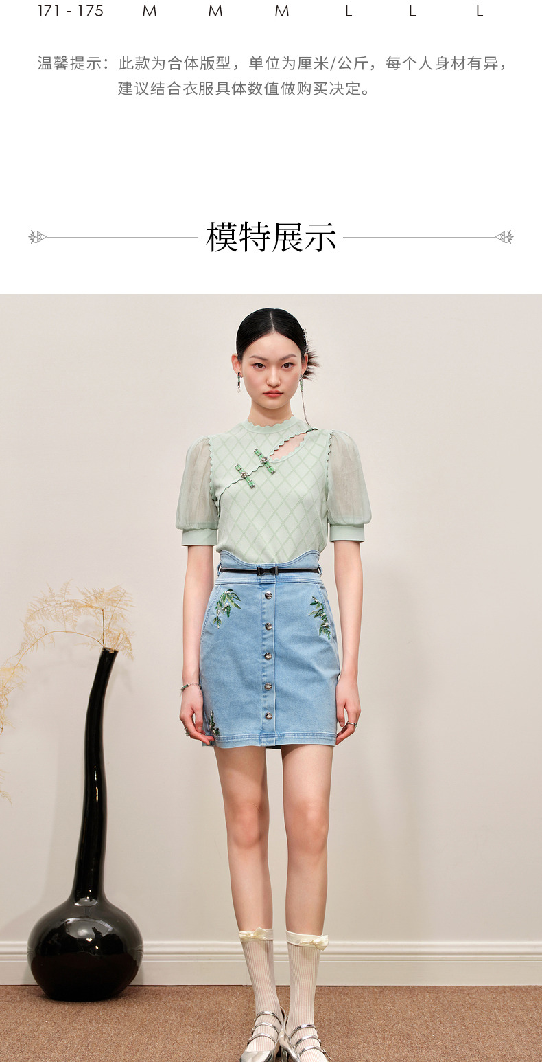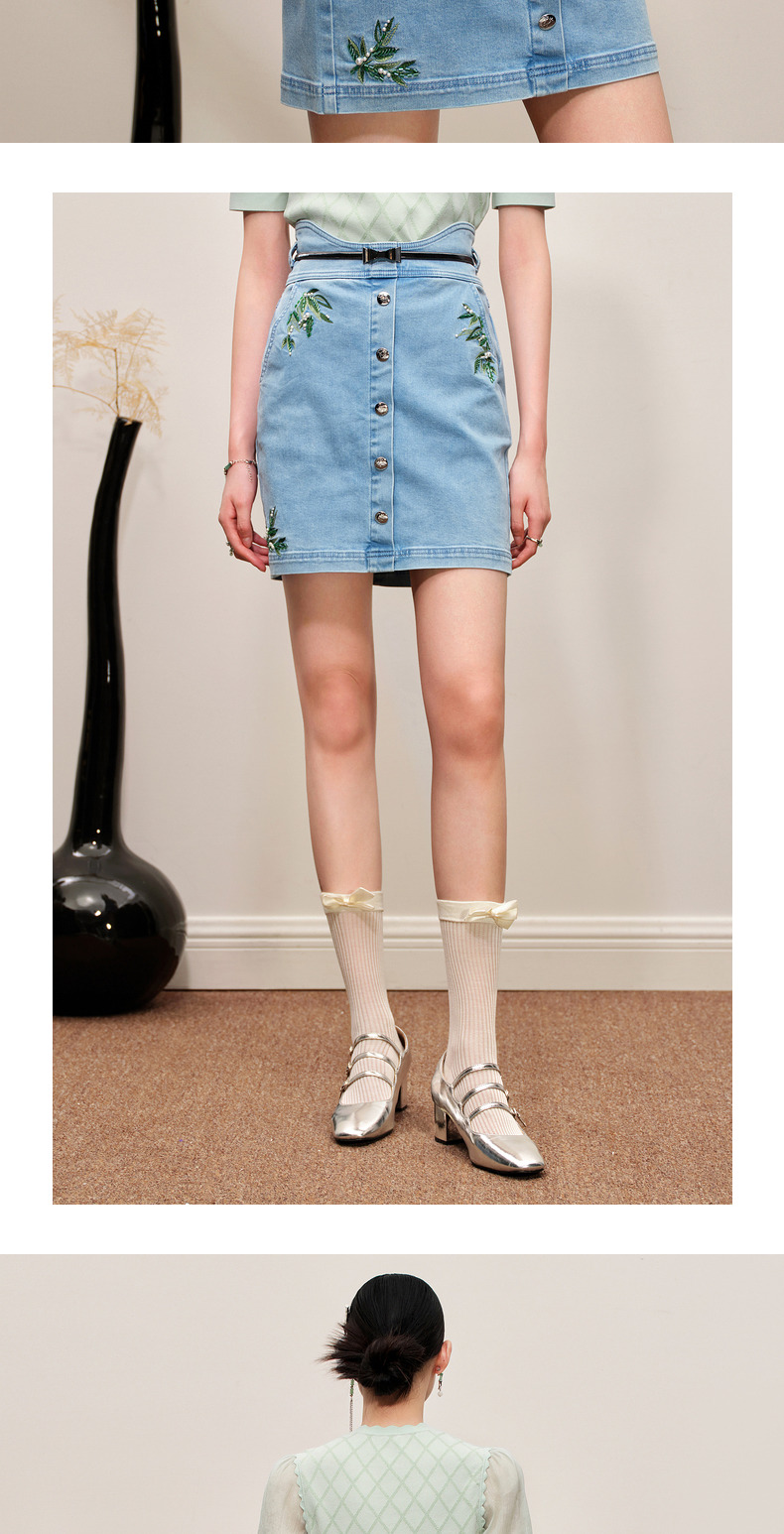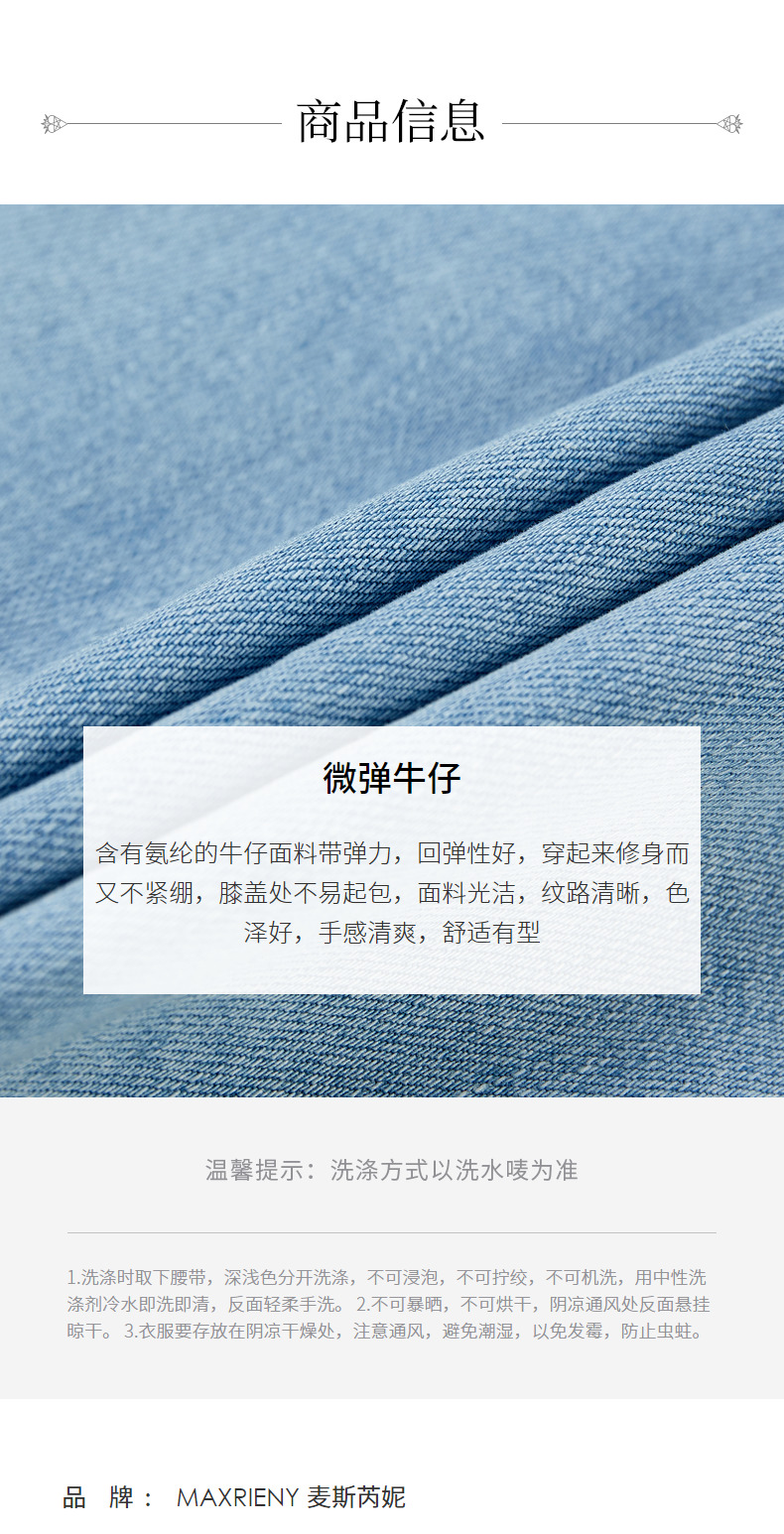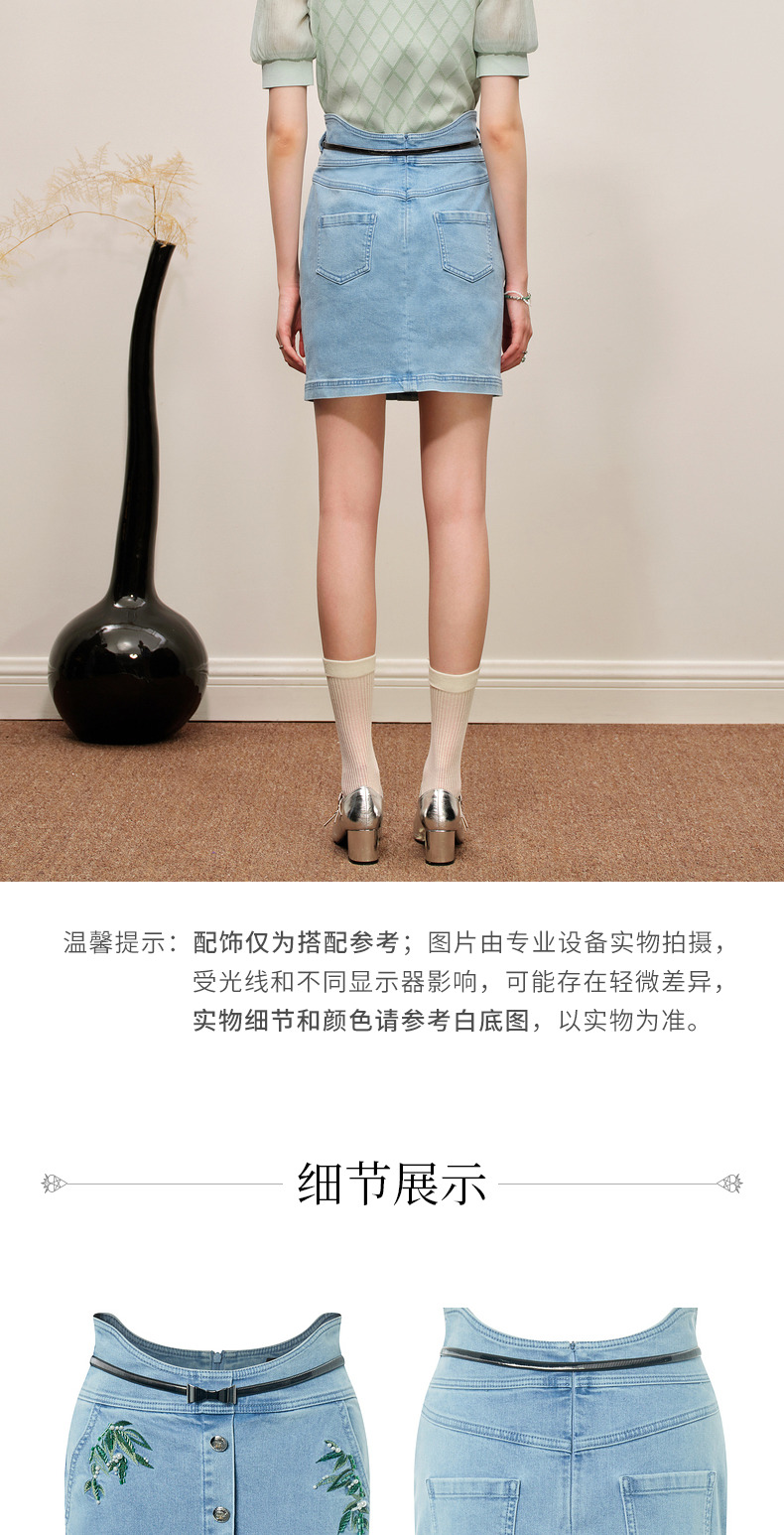 MAXRIENY竹叶提花牛仔半裙修身裙子(货号:MC88SK502)