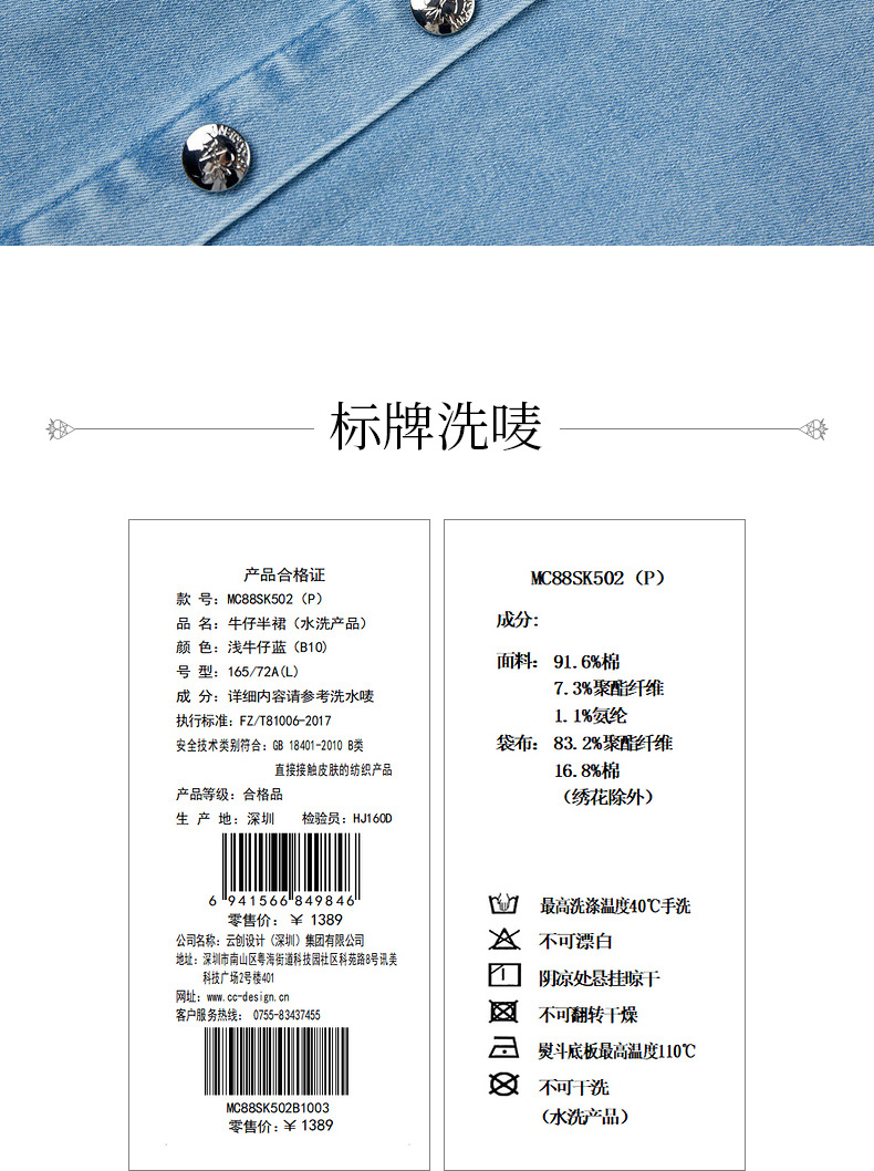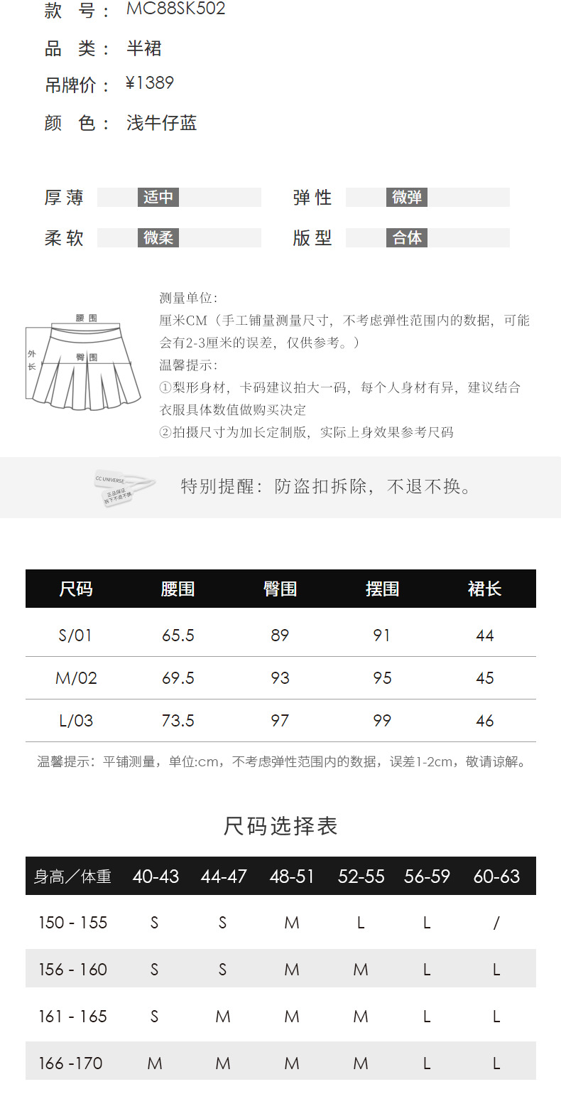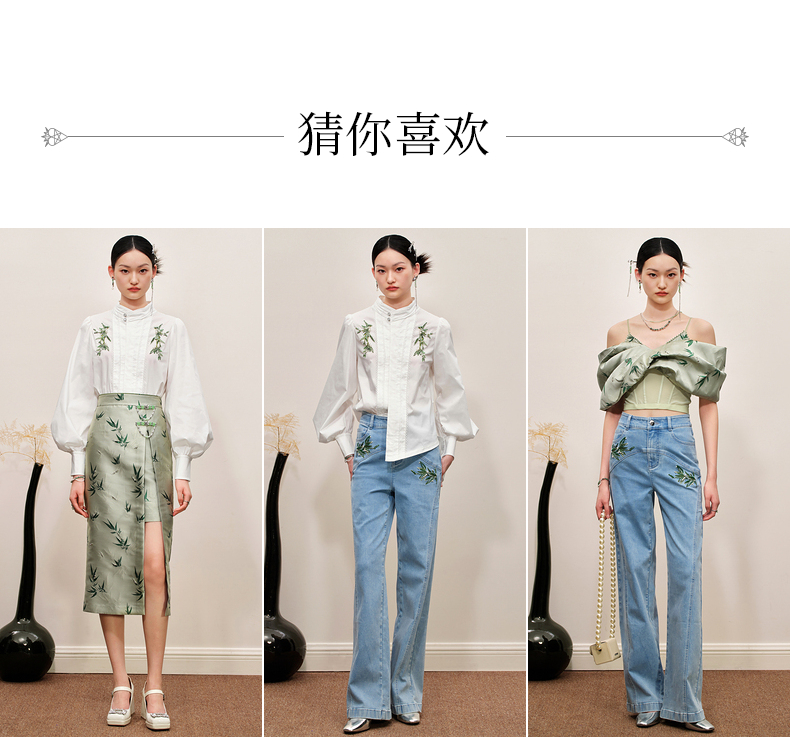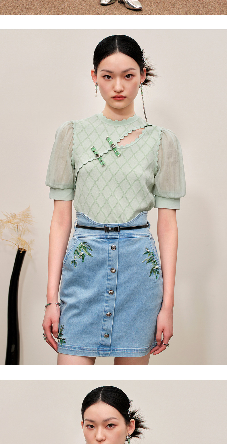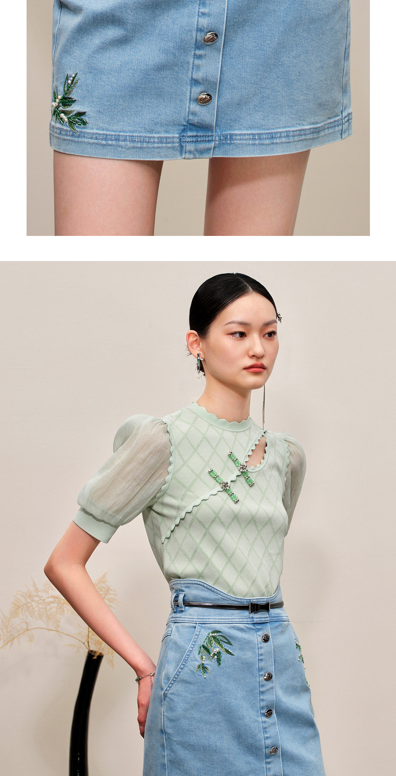 MAXRIENY竹叶提花牛仔半裙修身裙子(货号:MC88SK502)