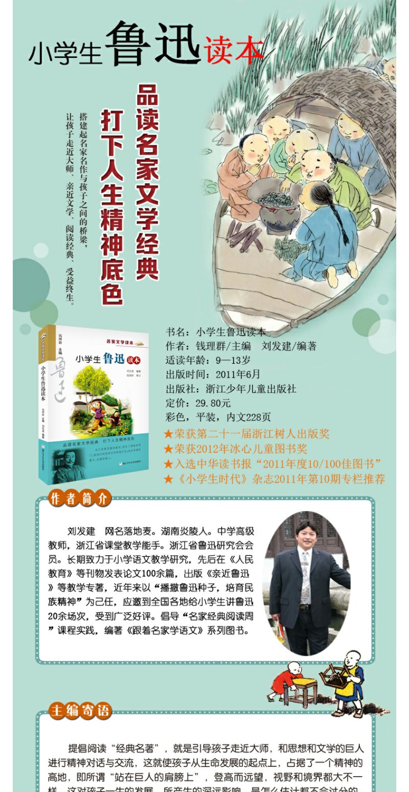 小学生鲁迅读本 6年级正版现货速发|名师推荐|小学生课外阅读六年级