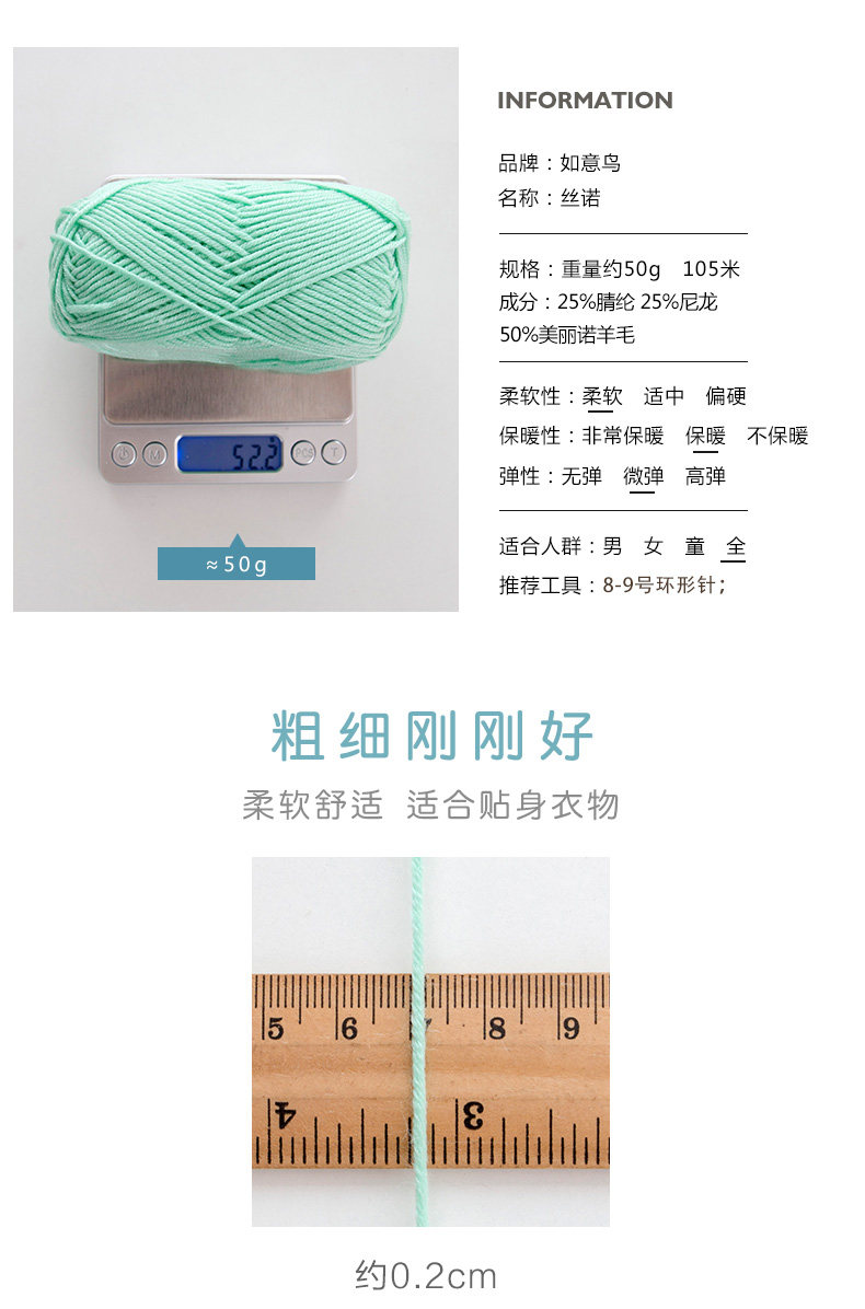 如意鸟 手编中粗羊毛线美丽诺羊毛线宝宝毛线围巾毛衣外套线