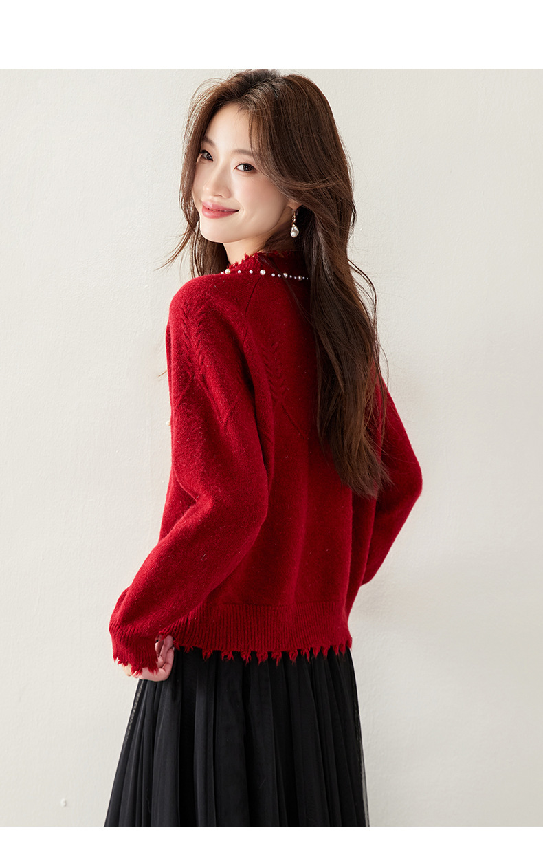 百媚生 蚕丝羊毛蕾丝假两件针织开衫外套V领上衣NS-6010A-70