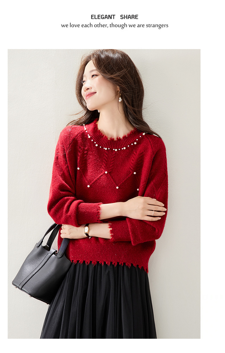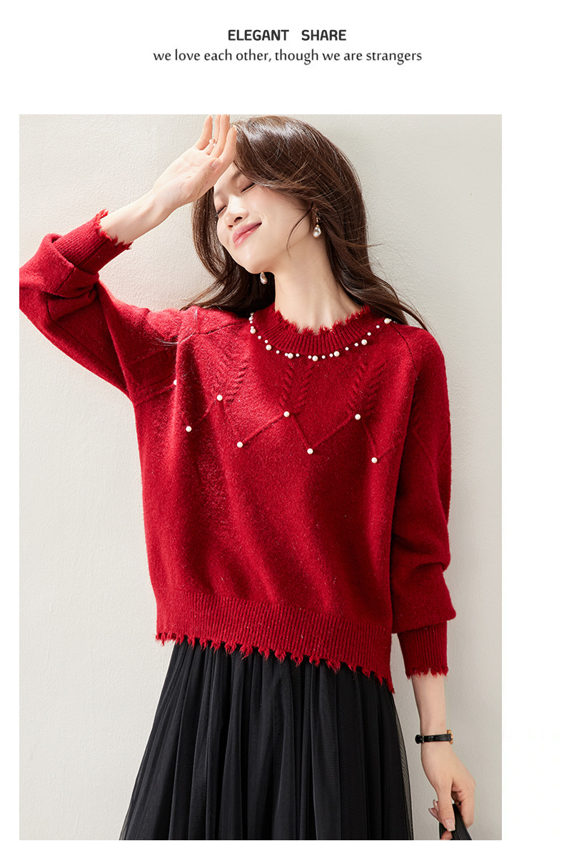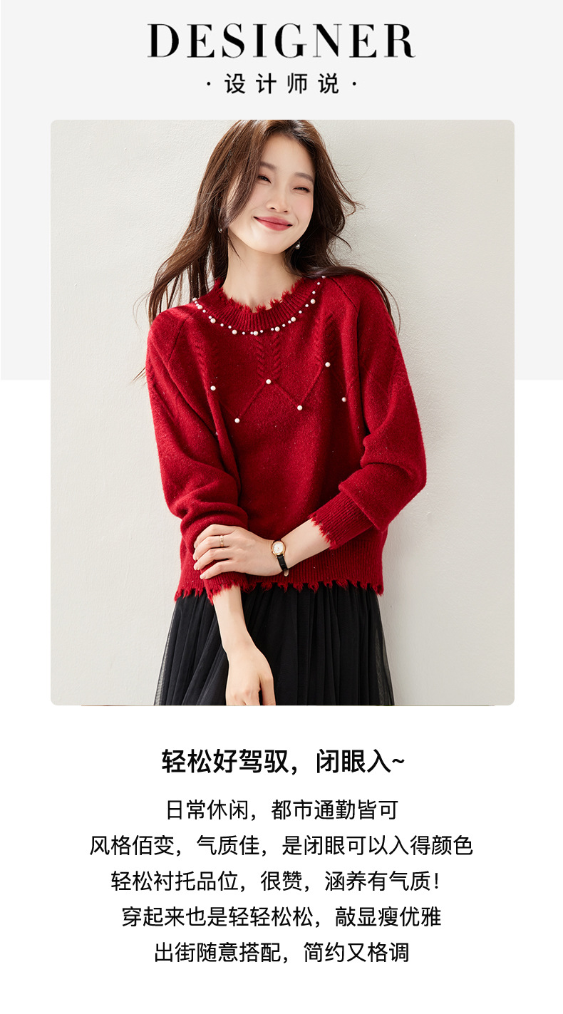 丁摩 慵懒风圆领毛衣女秋冬针织打底衫ML-2162
