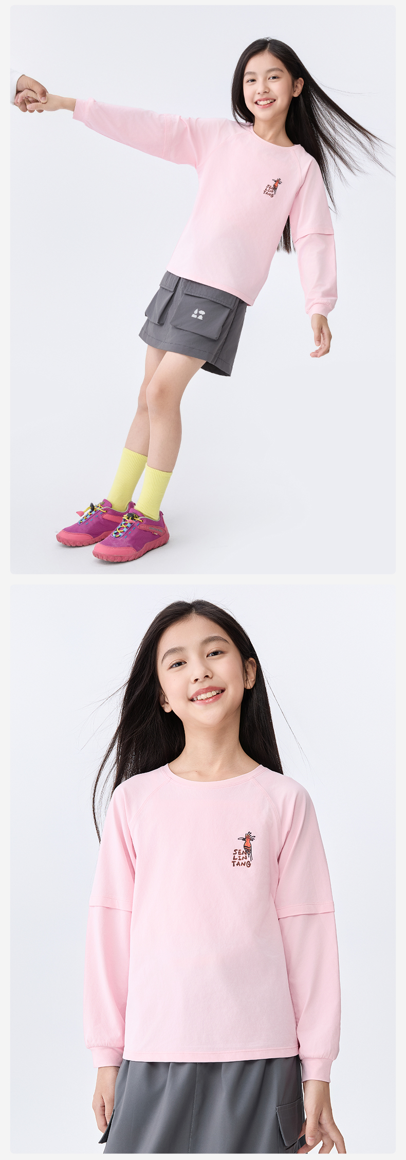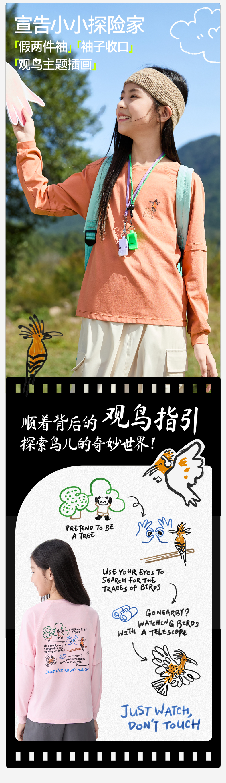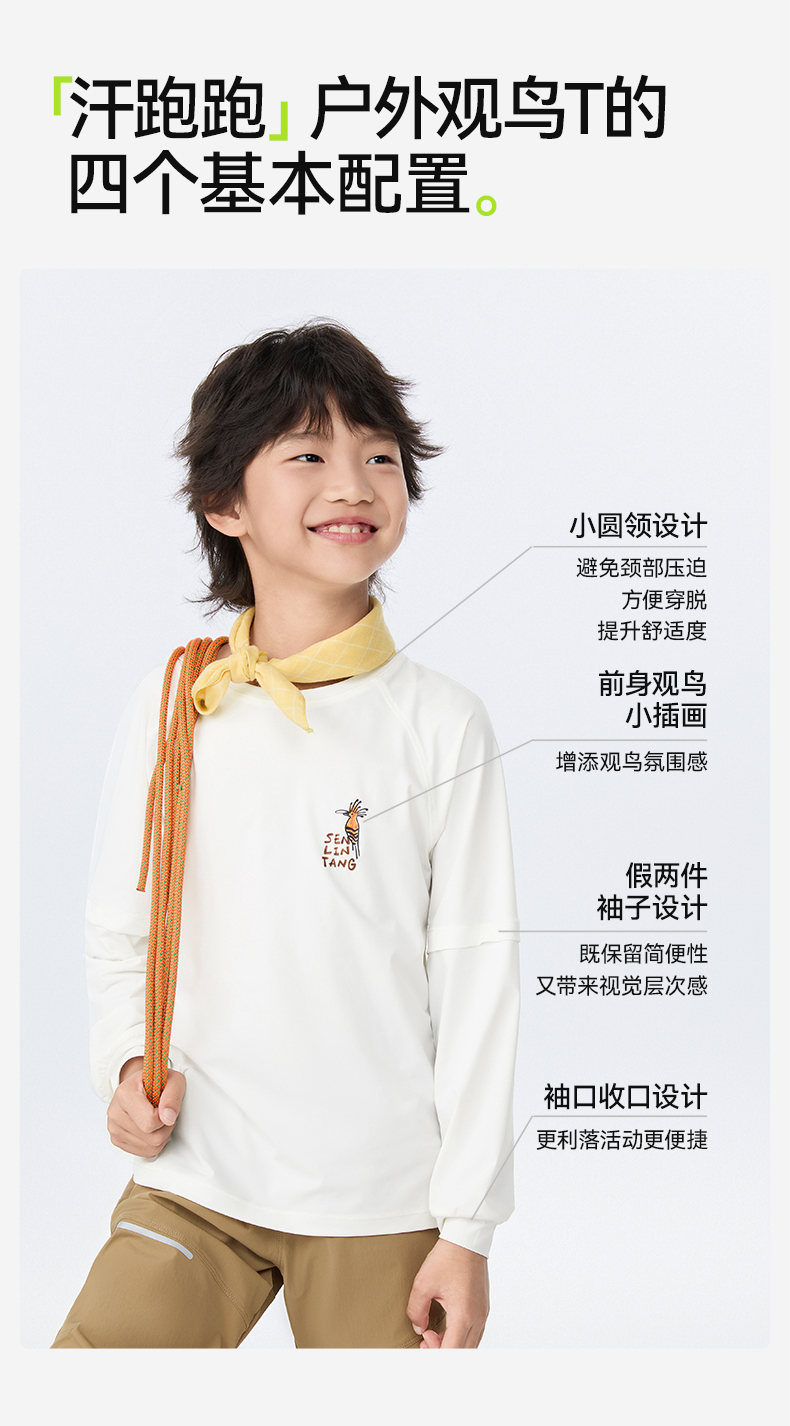 【汗跑跑户外观鸟T恤】森林棠25春款儿童假两件袖户外运动长袖T恤20342504