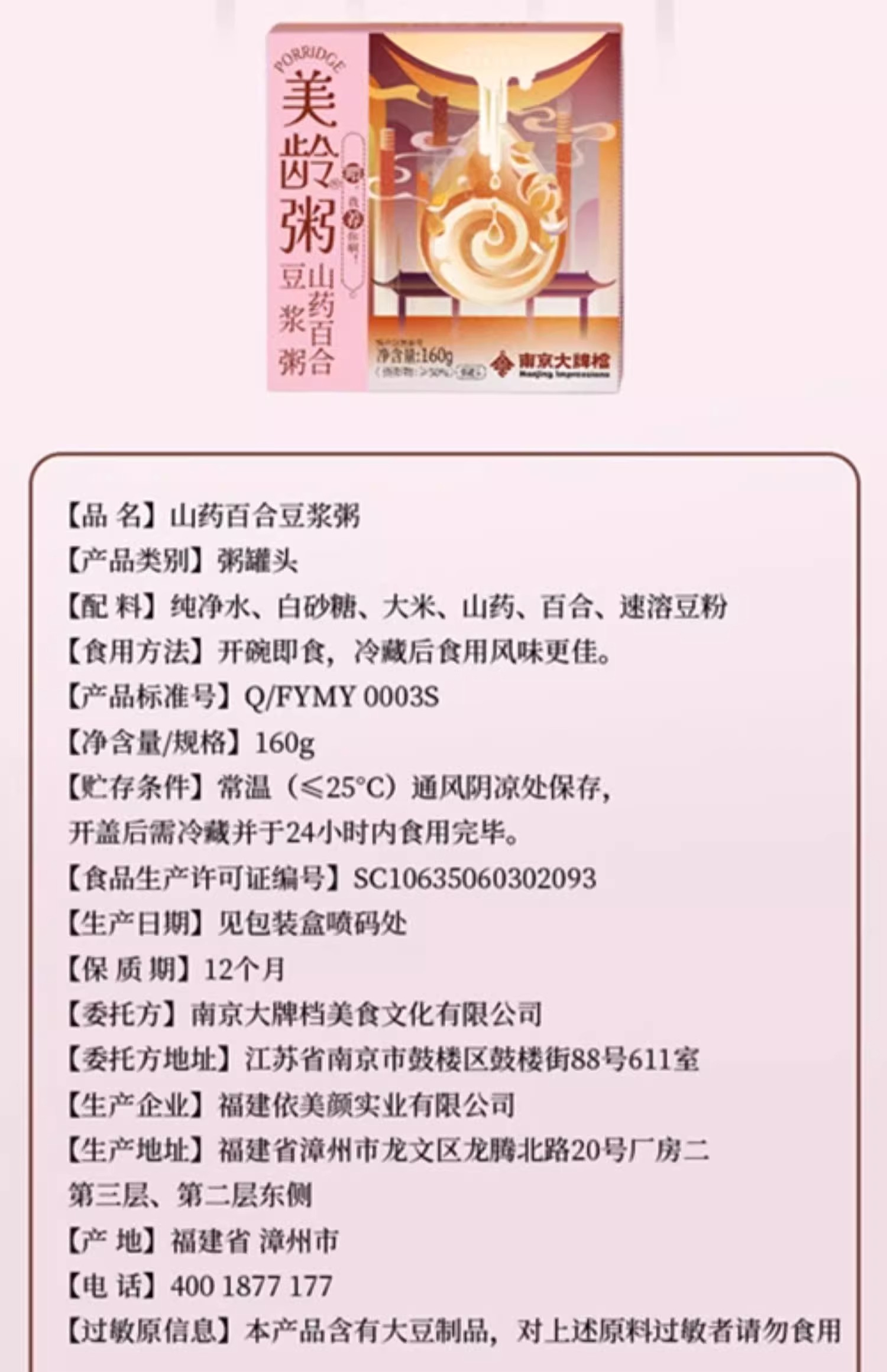 它的配料表巨巨巨巨干净!完全没有科技与狠活,只有纯净水山药百合大米!减脂期也可以放心炫无负担!干净营养同时拿捏!!开盖即食,吃起来好丝滑!