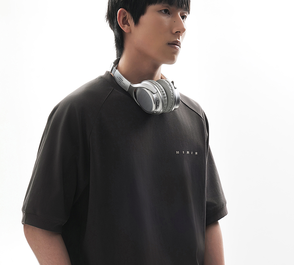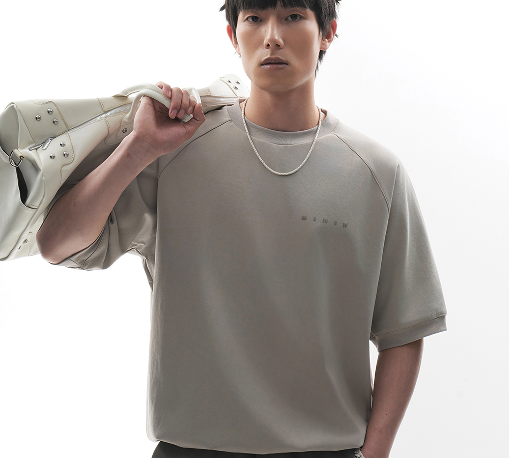 HIM漢崇 潮流简约字母烧花舒适插肩休闲宽松短袖卫衣 2026夏季