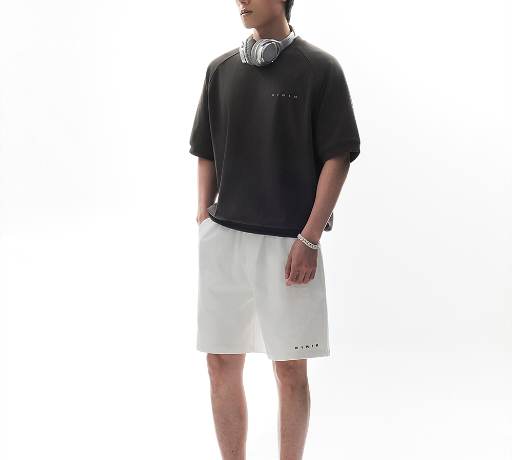 HIM漢崇 简约压印休闲短裤男士舒适透气直筒运动五分裤 2026夏季