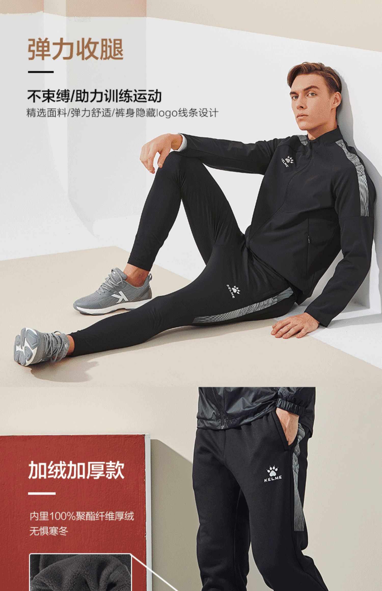 卡尔美足球训练裤男修身弹力针织运动长裤加绒健身收小腿裤