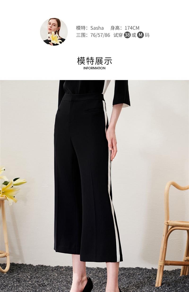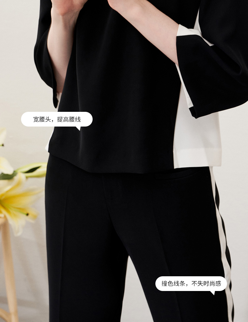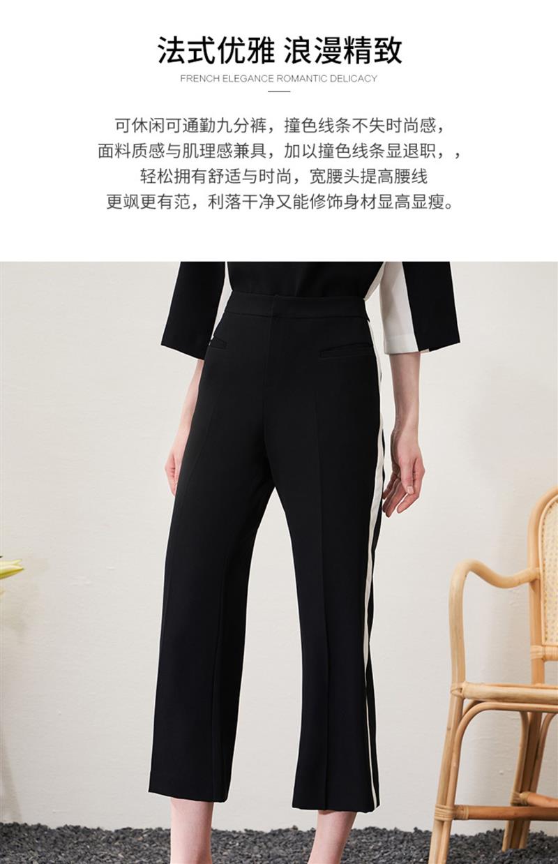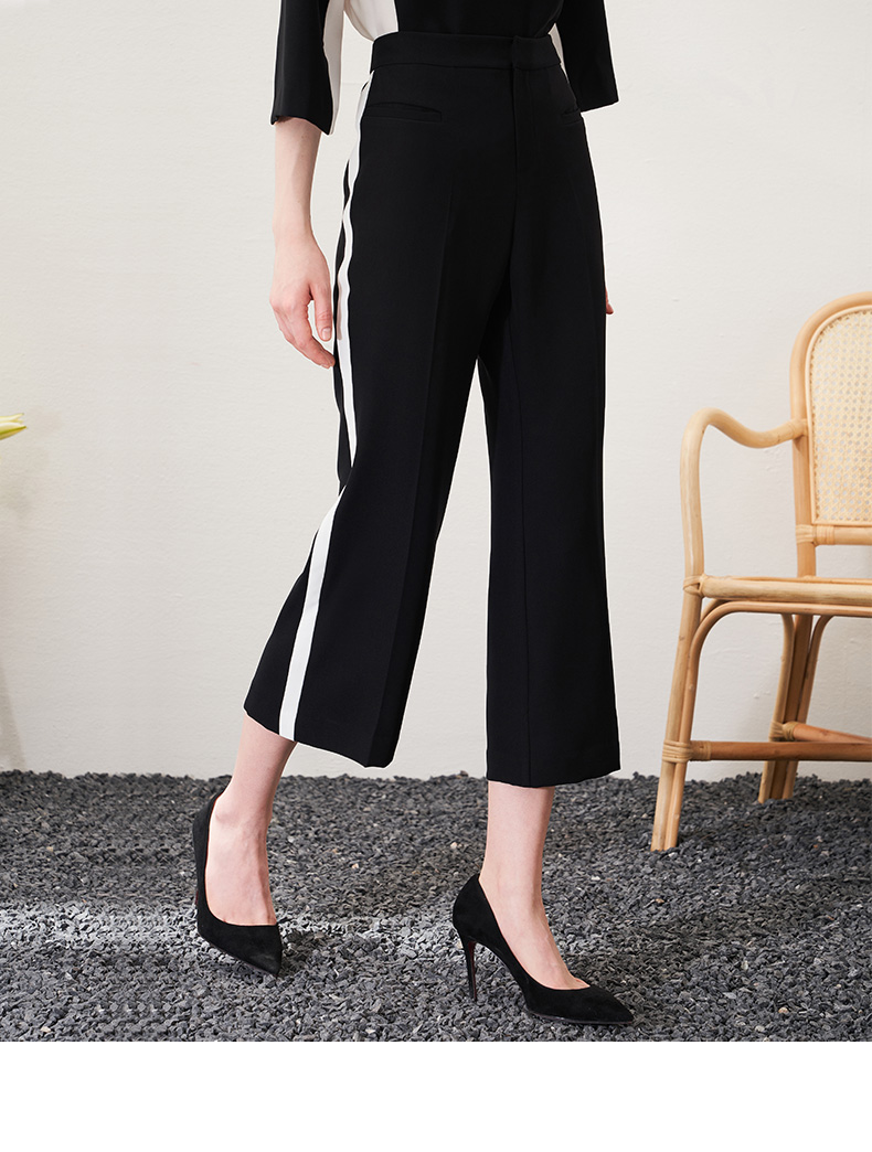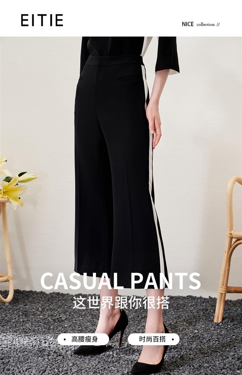 EITIE爱特爱春季新款显瘦通勤撞色微喇阔腿百搭九分休闲裤A2305109