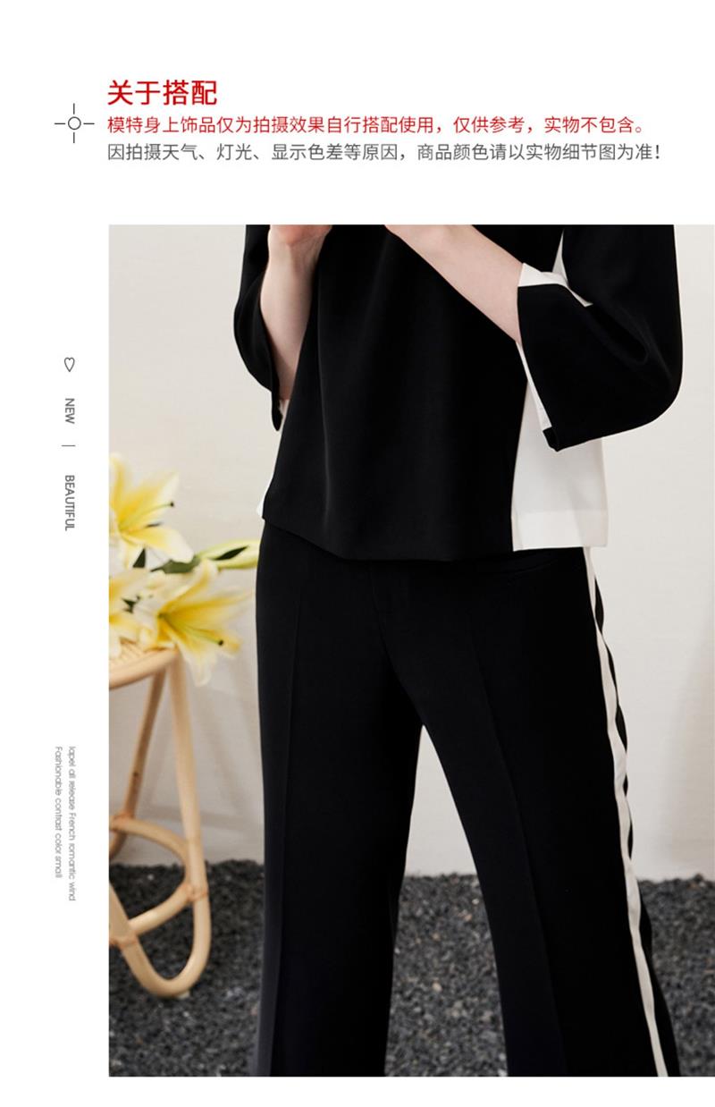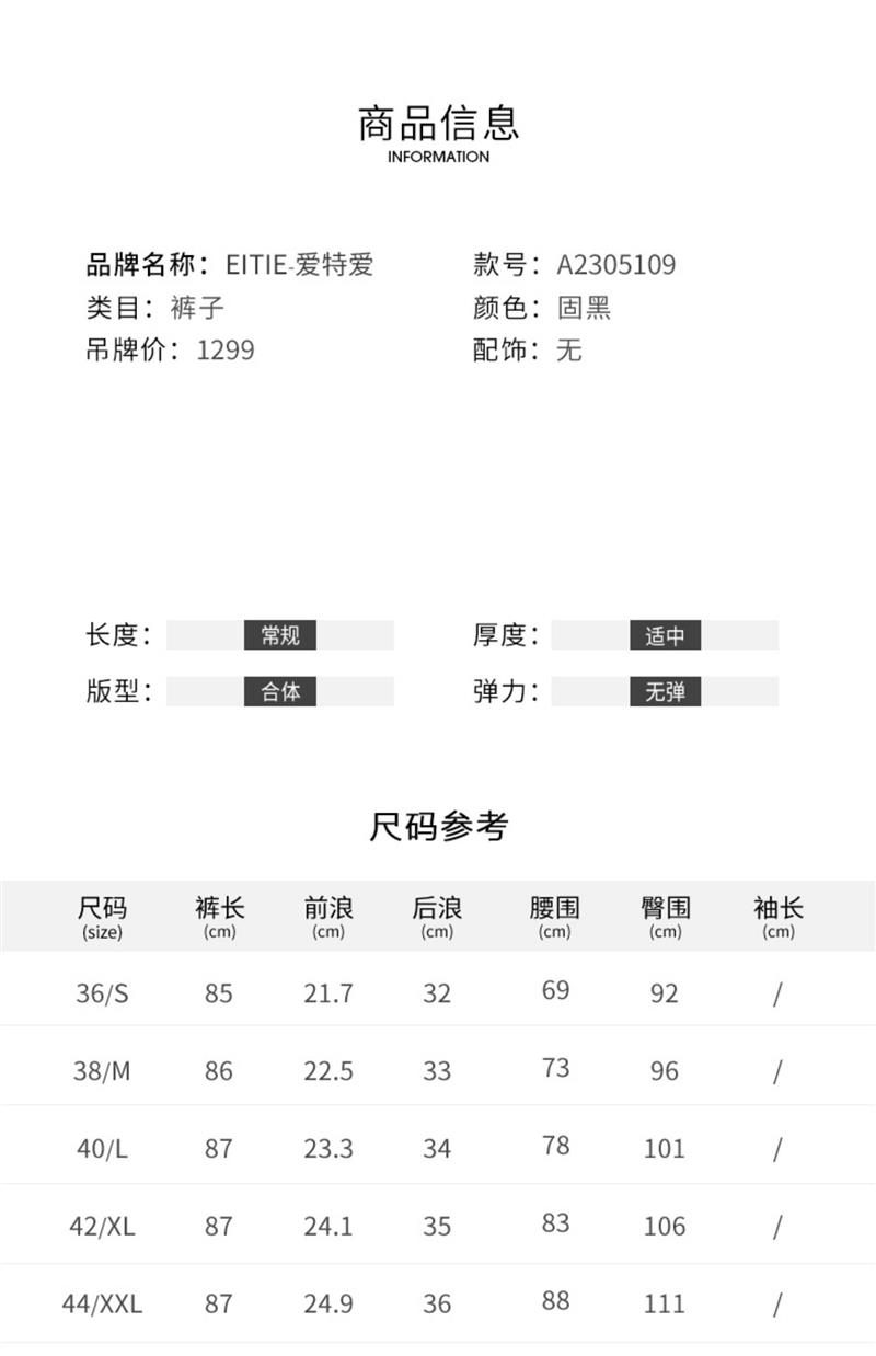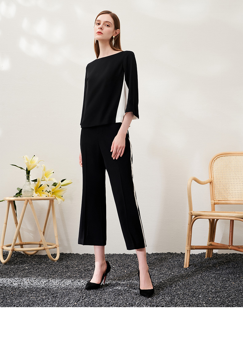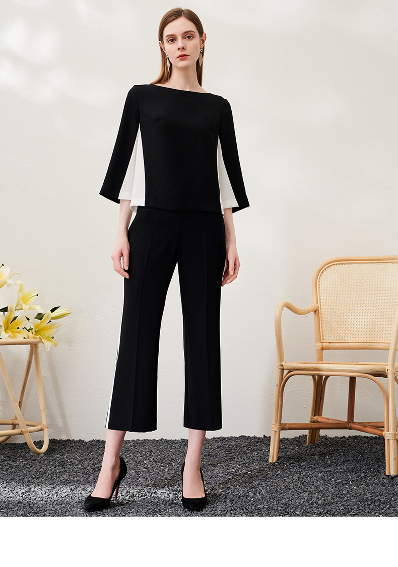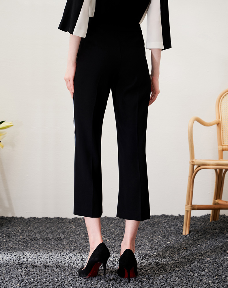 EITIE爱特爱春季新款显瘦通勤撞色微喇阔腿百搭九分休闲裤A2305109
