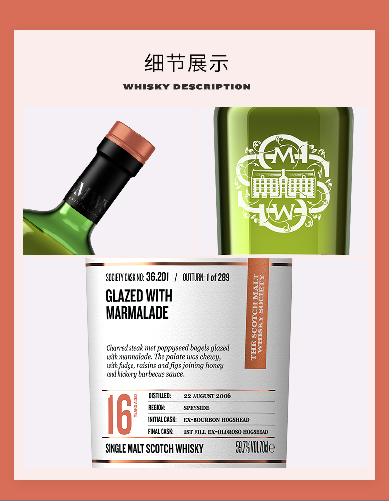 【SMWS】 36.201 涂抹橘子酱 16年 单一麦芽 威士忌 雪莉桶 洋酒