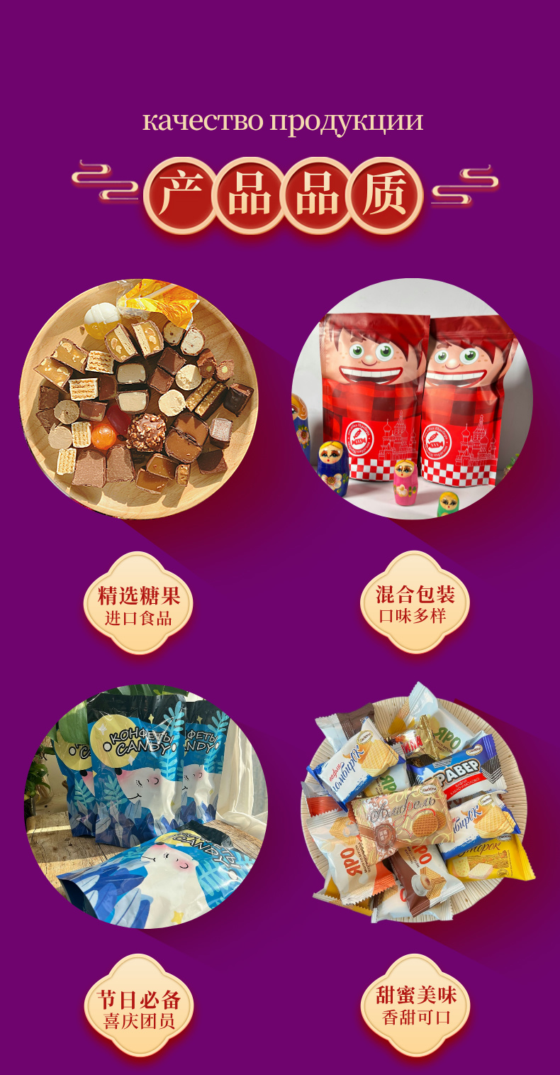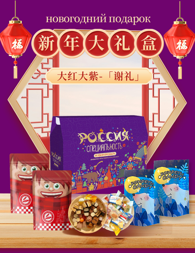 【俄罗斯新年糖果礼盒】春节好礼 谢礼 3斤(混糖500g*2袋+混威化250g*2袋)