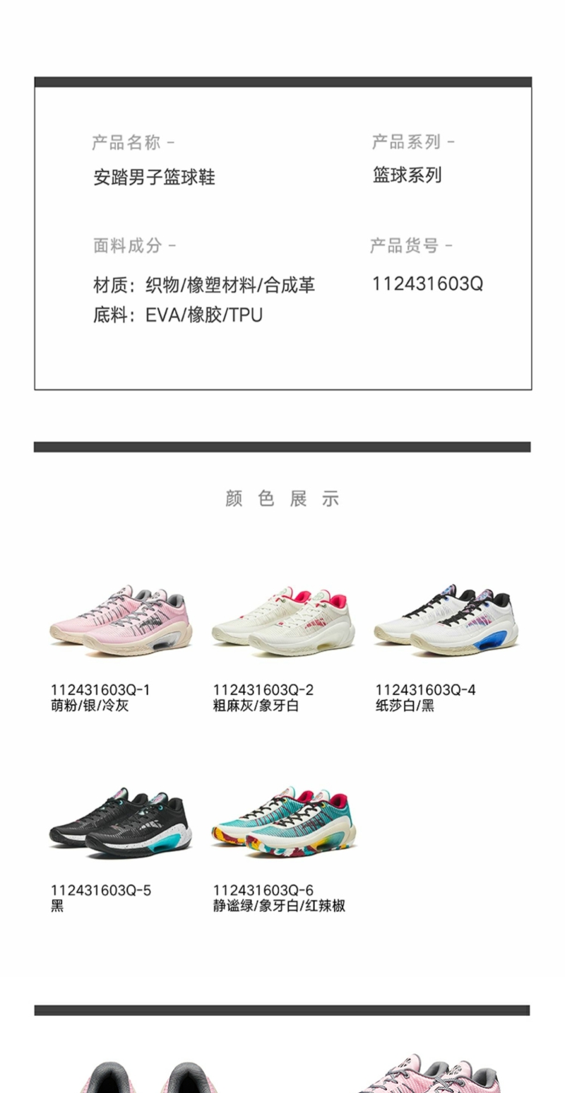 安踏速决6丨篮球鞋男耐磨防滑透气稳定支撑专业实战运动篮球鞋112431603Q