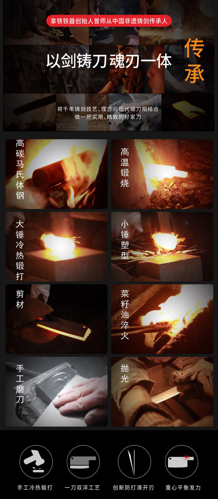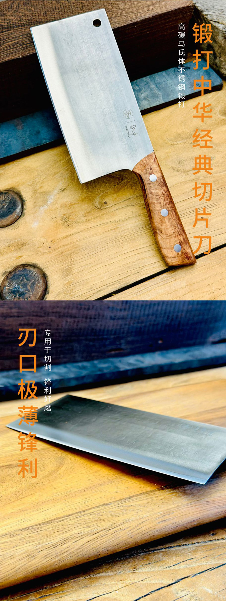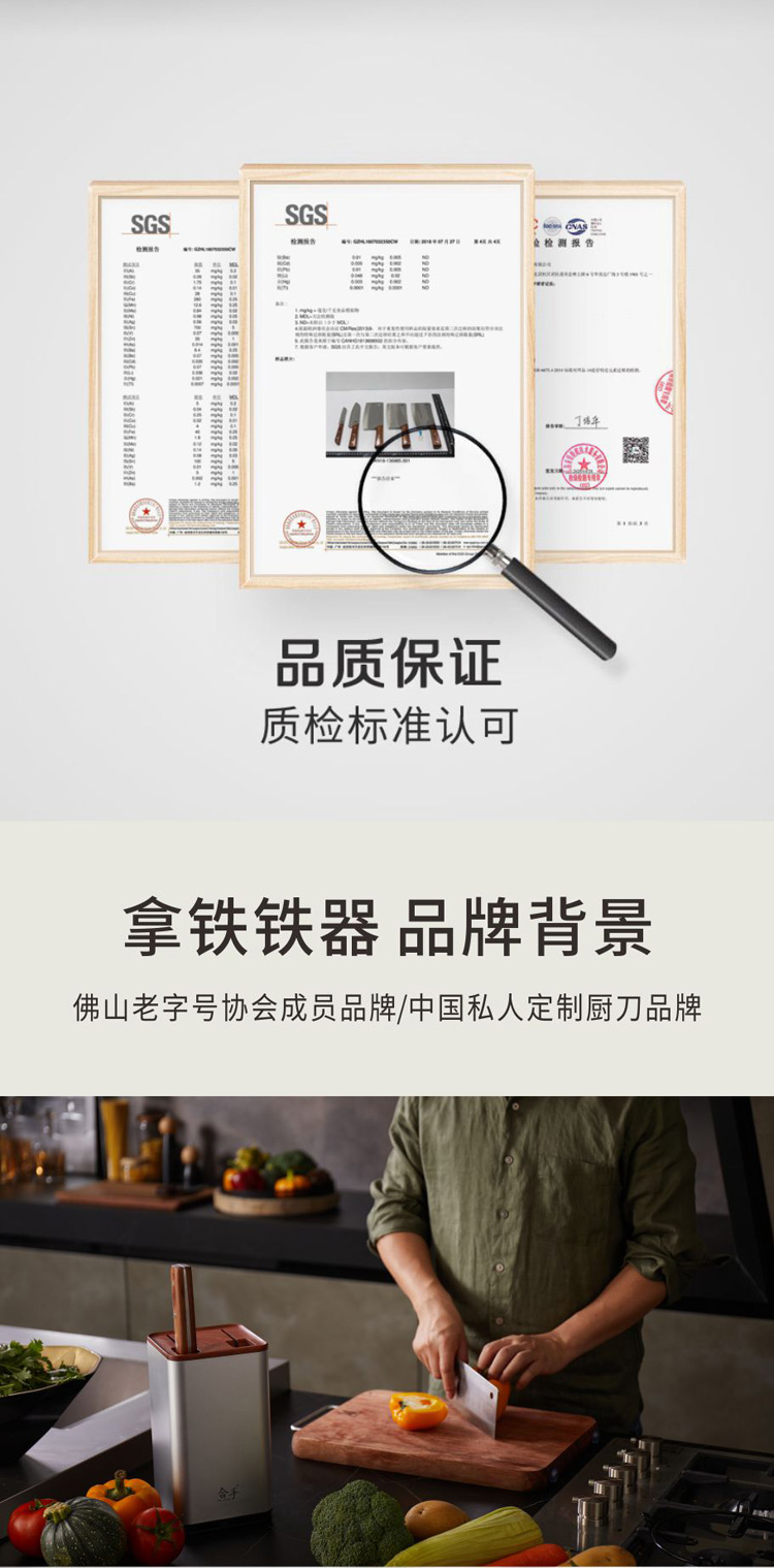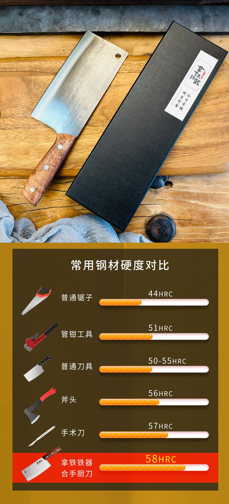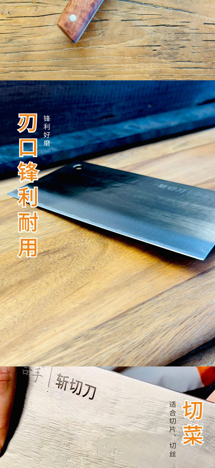 【送磨刀石、围裙】拿铁铁器·合手斩切刀/切片刀,手工锻打菜刀,持久锋利,可斩骨/切片/拍蒜/剁肉,一刀搞定家庭各种用刀需求
